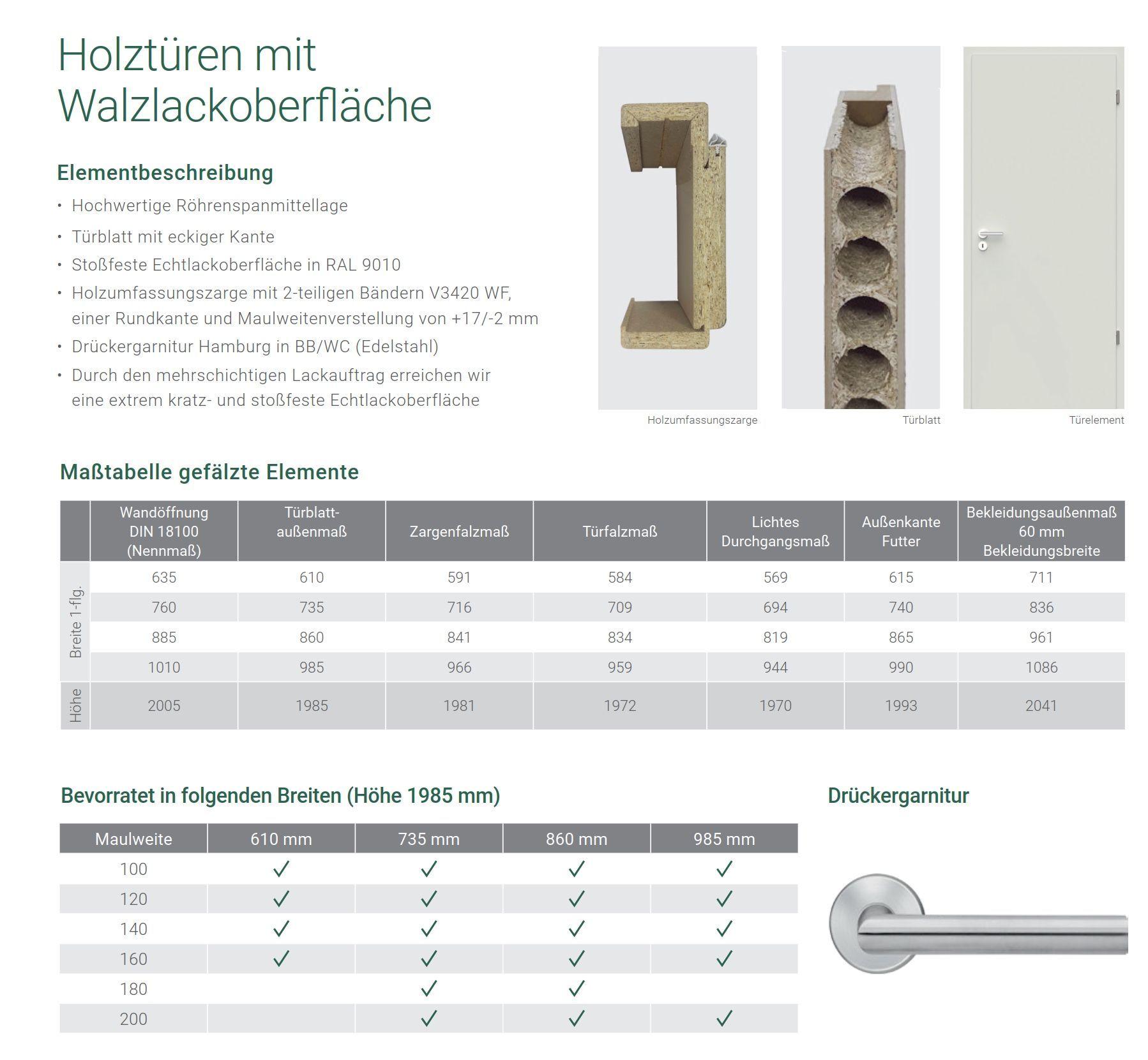 Hochwertige Zimmertür - Komplettpaket (Zarge + Griff) - Innentür - Walzlackoberfläche