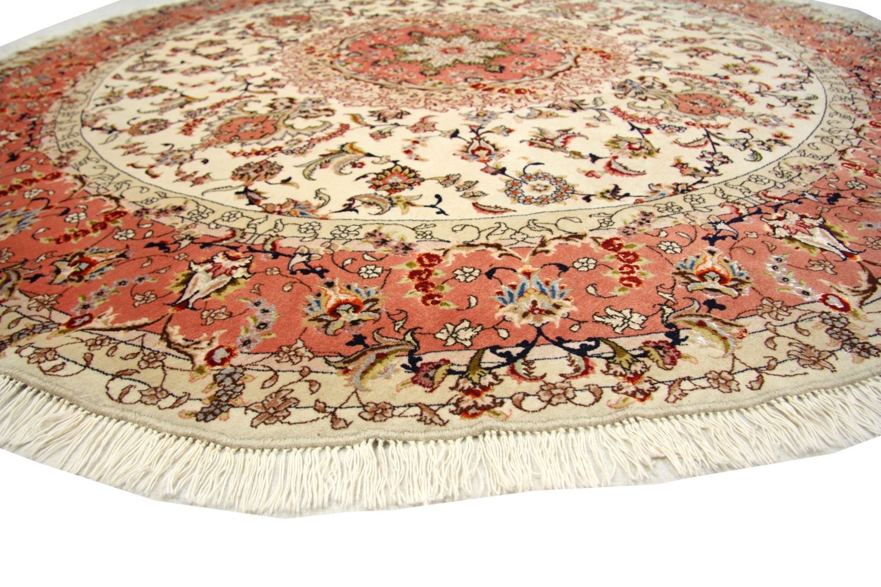 Hochwertiger Handgeknüpfter Runder Teppich, Täbriz mit Seide Durchmesser: 2,30 m