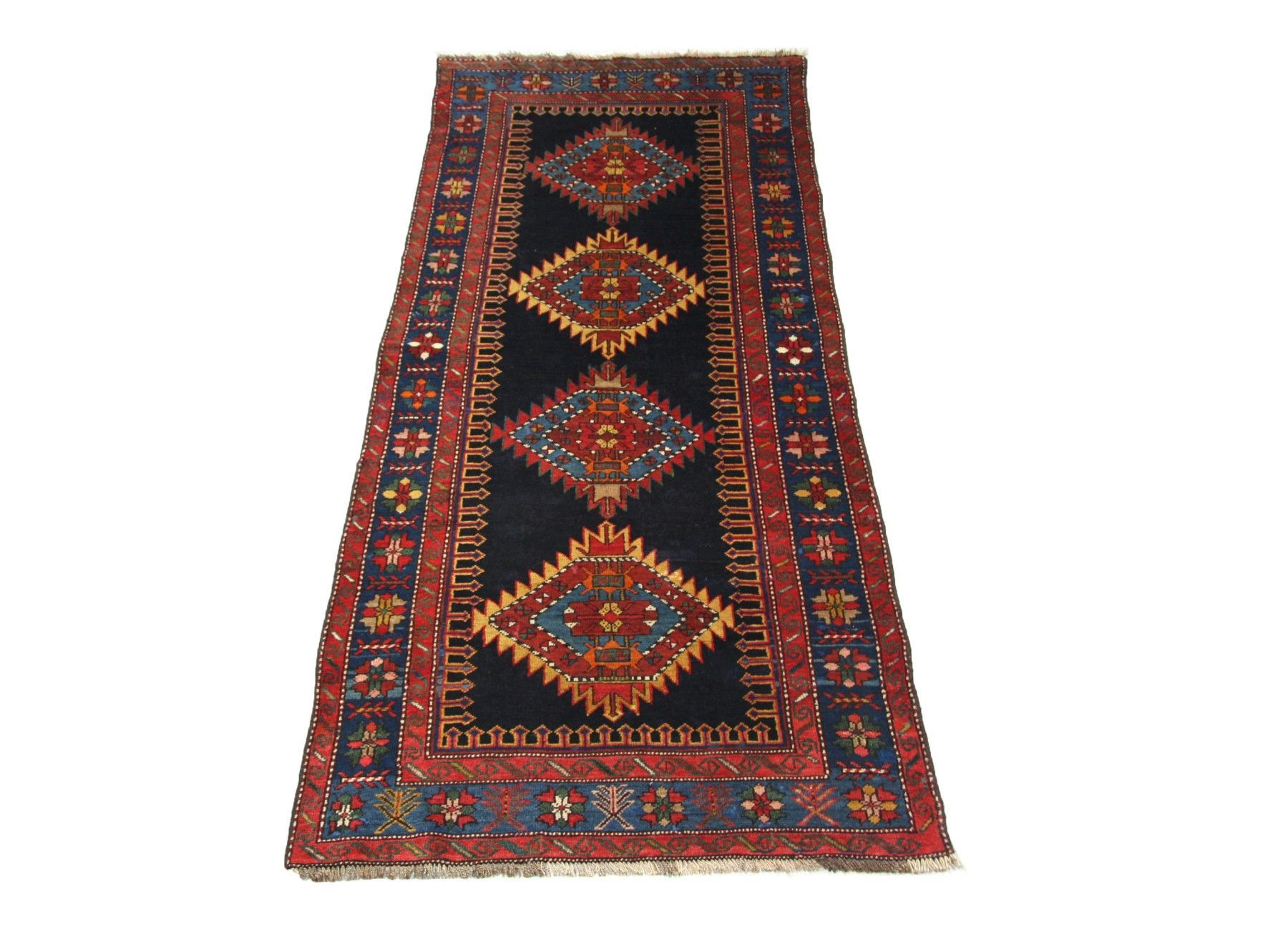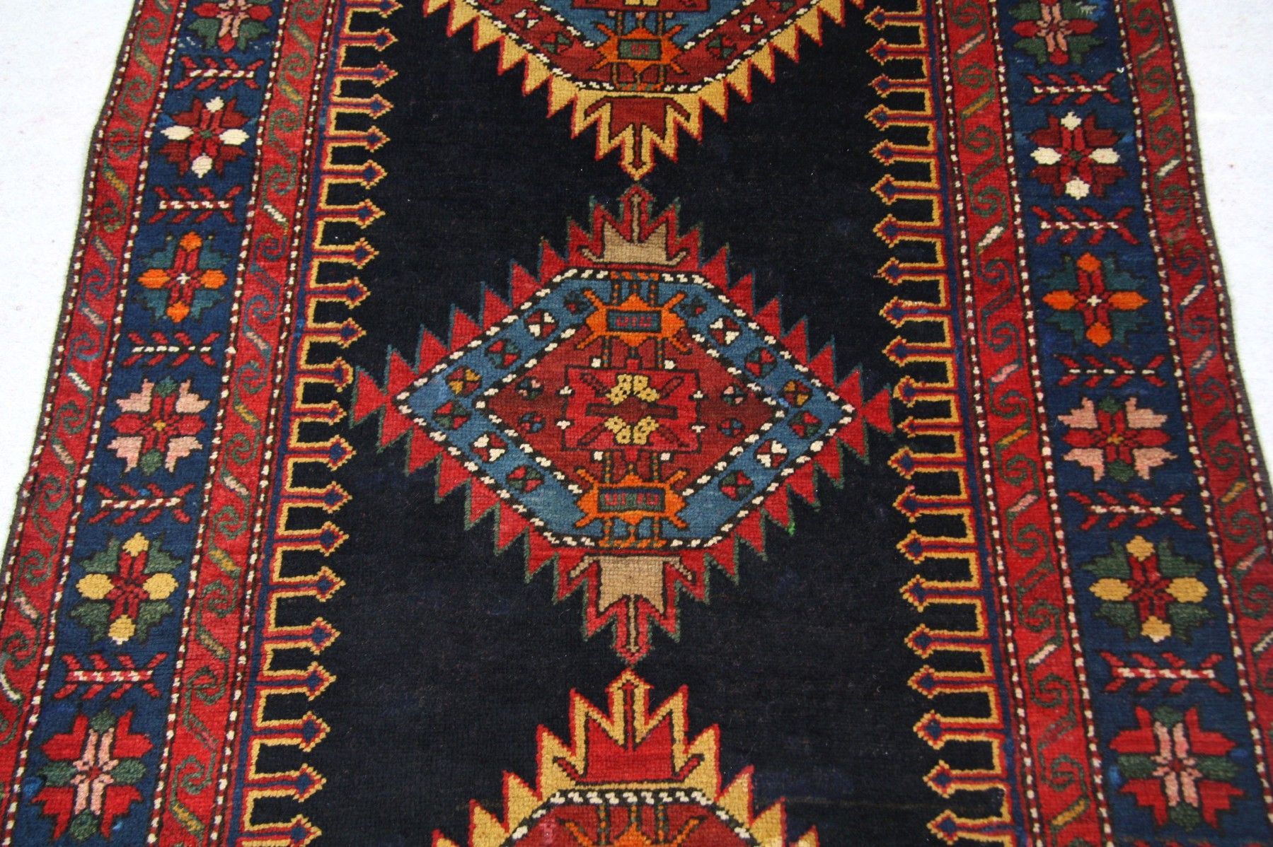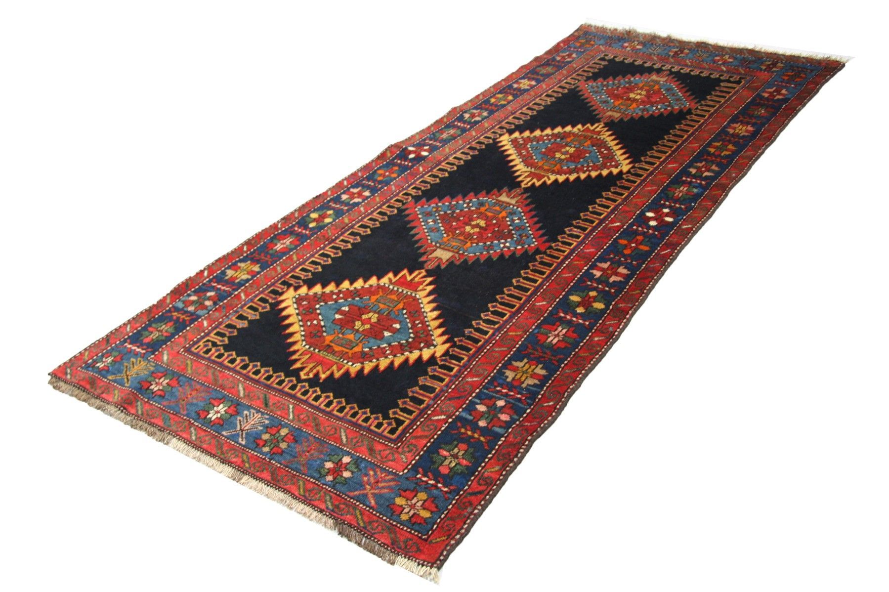 Hochwertiger handgeknüpfter russischer Antik -Teppich Maß: 2,68x1,10, aus feiner Schurwolle auf Baumwolle mit pflanzlichen Farben.
