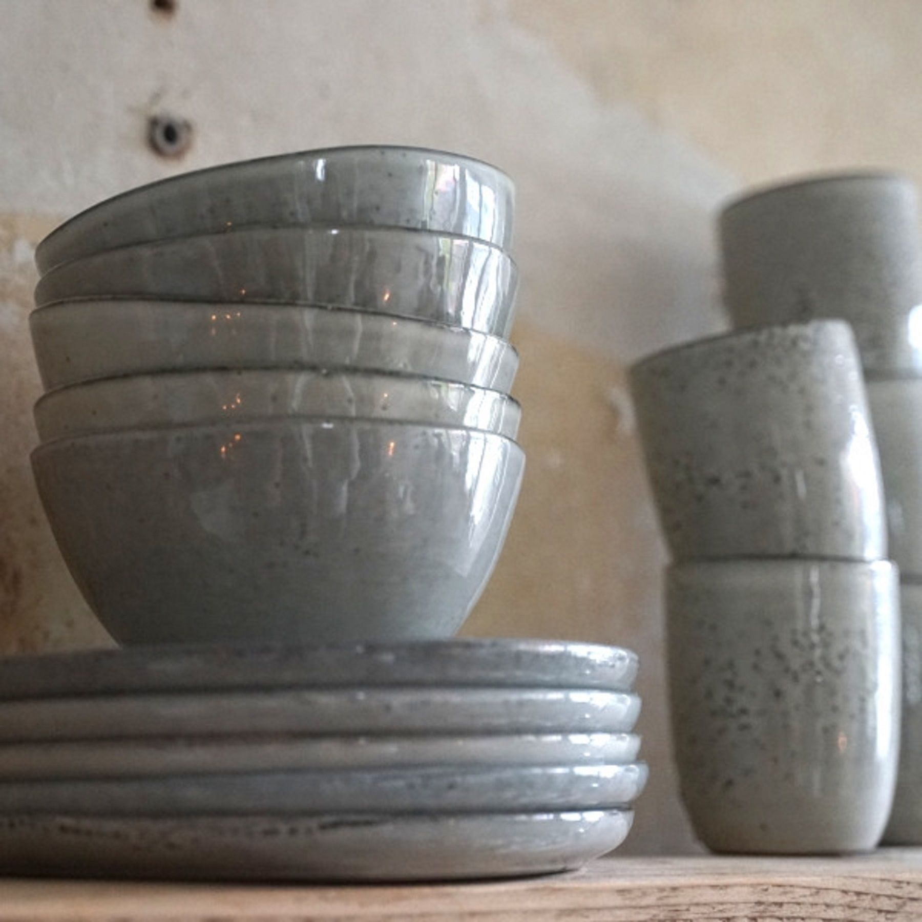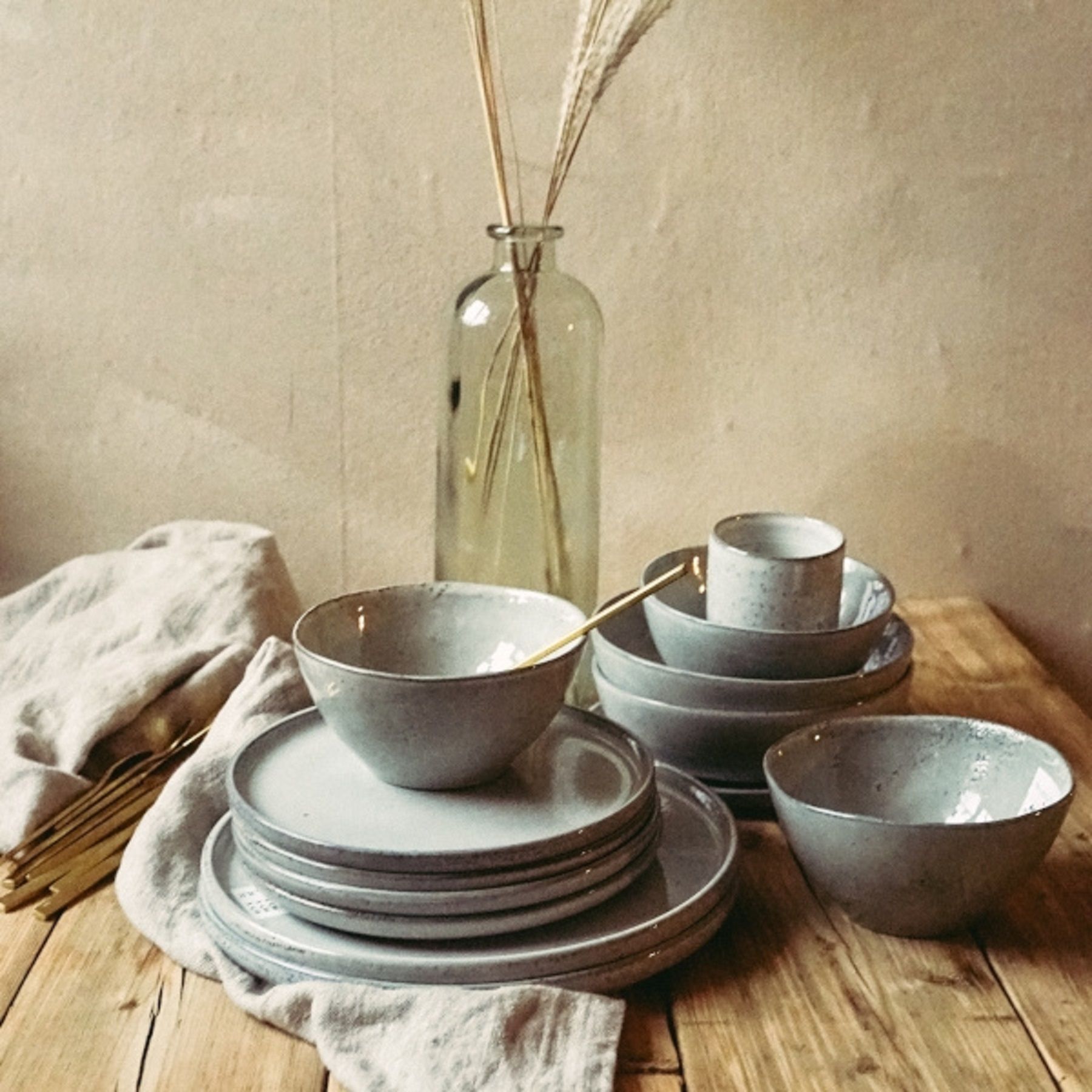 Hochwertiger tiefer Speiseteller Steingut 20 cm – Grau, handgefertigte Optik