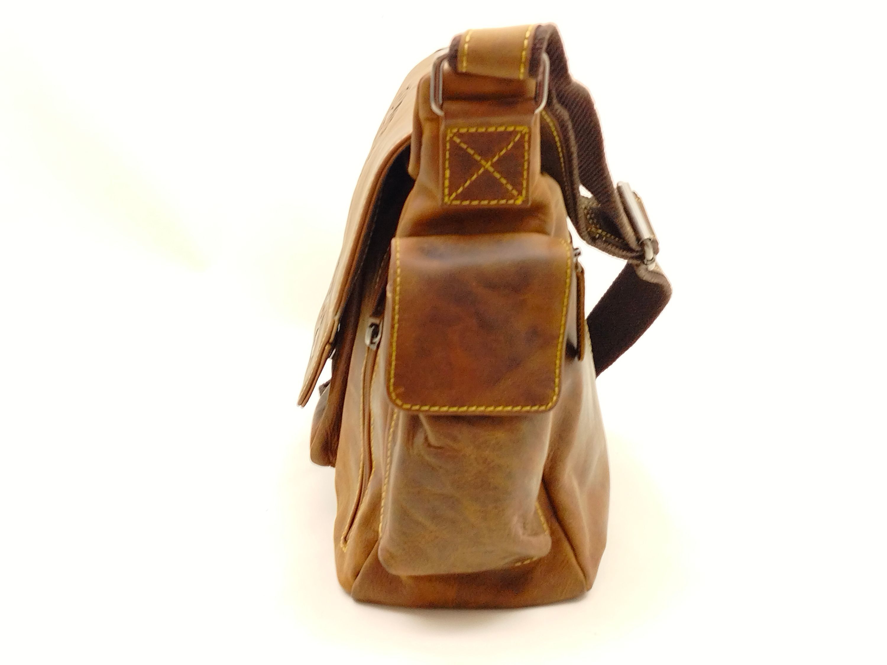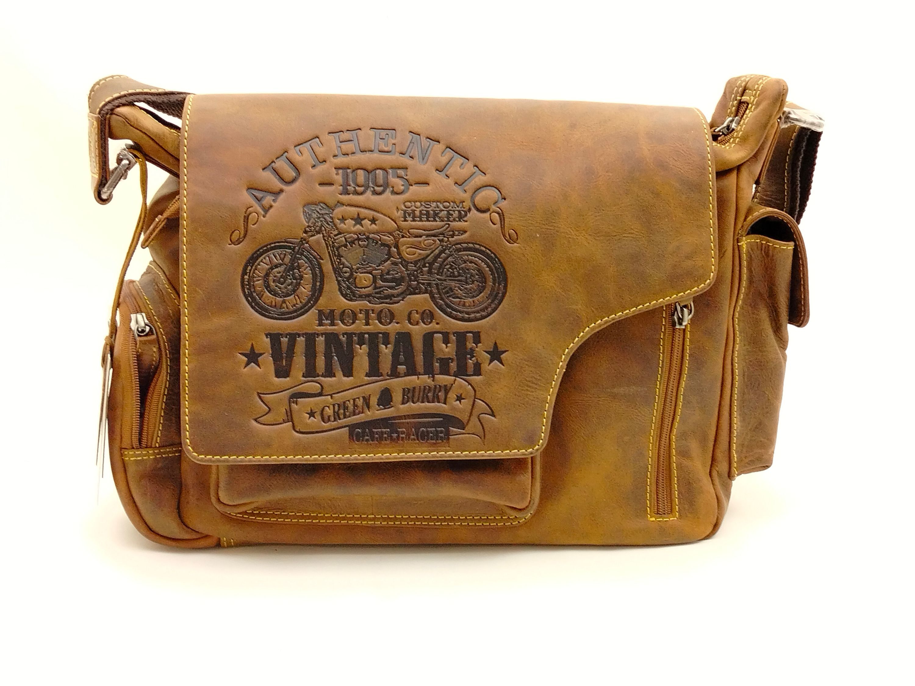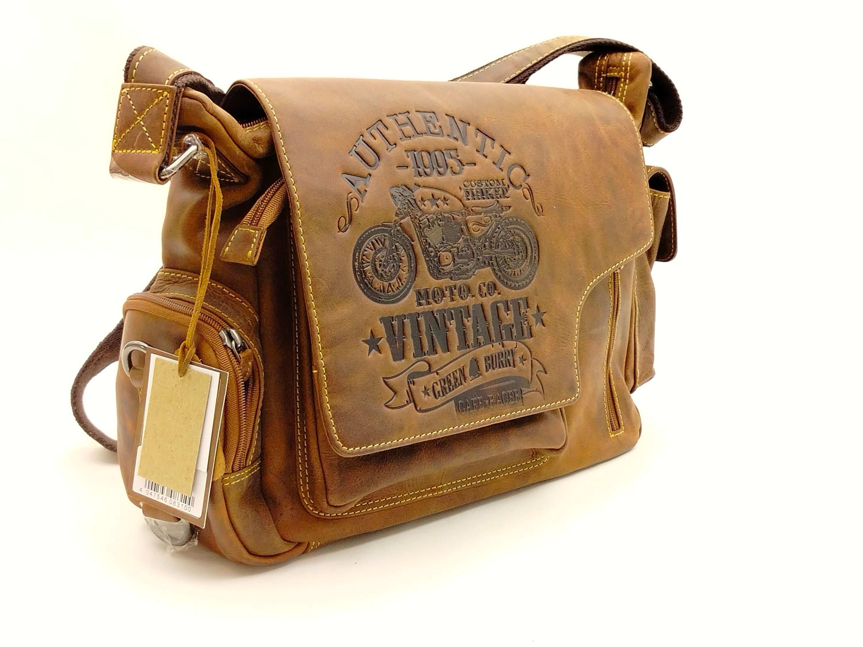 Greenburry Hochwertiger Vintage Motorrad Umhängetasche aus echtem Leder - Braun