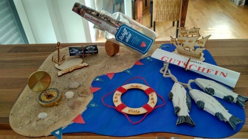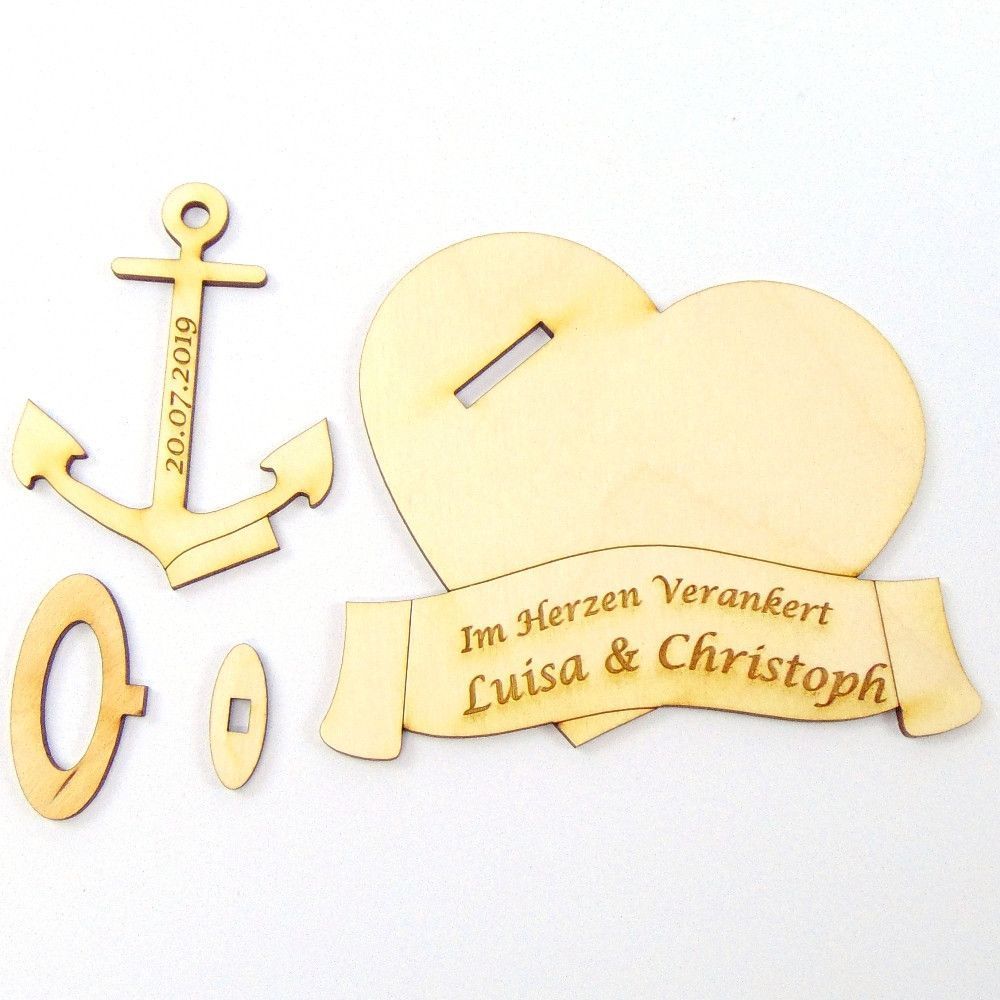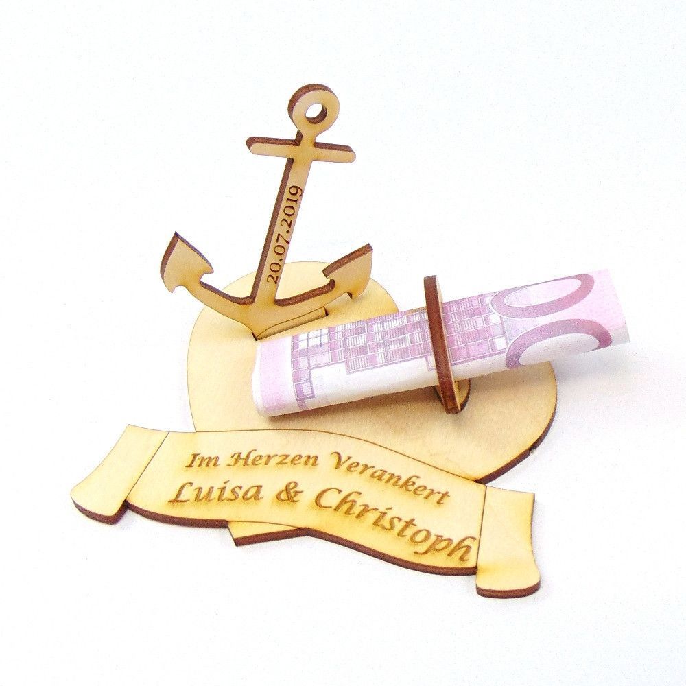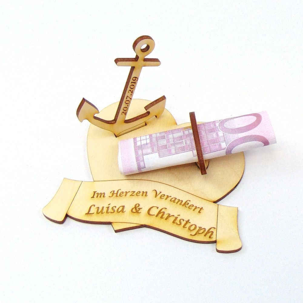 Hochzeitsgeschenk Geldgeschenk " Im Herzen Verankert" mit Namensgravur, Holz