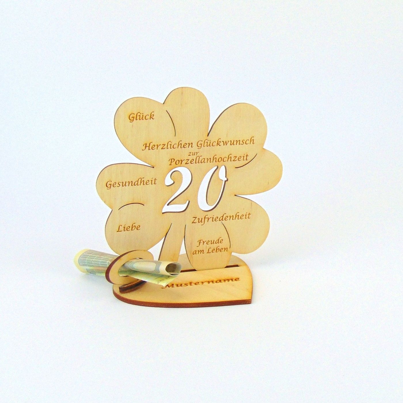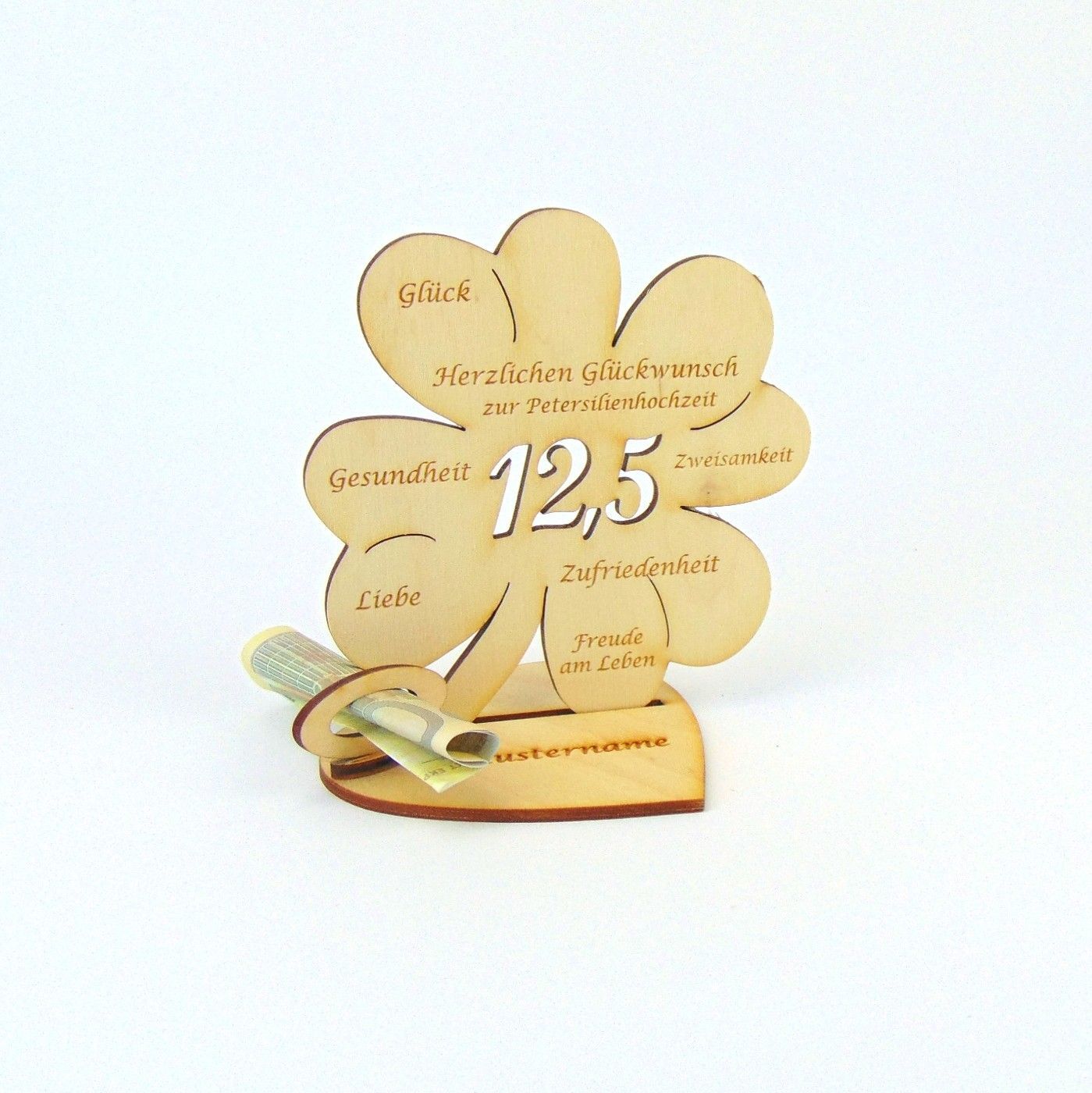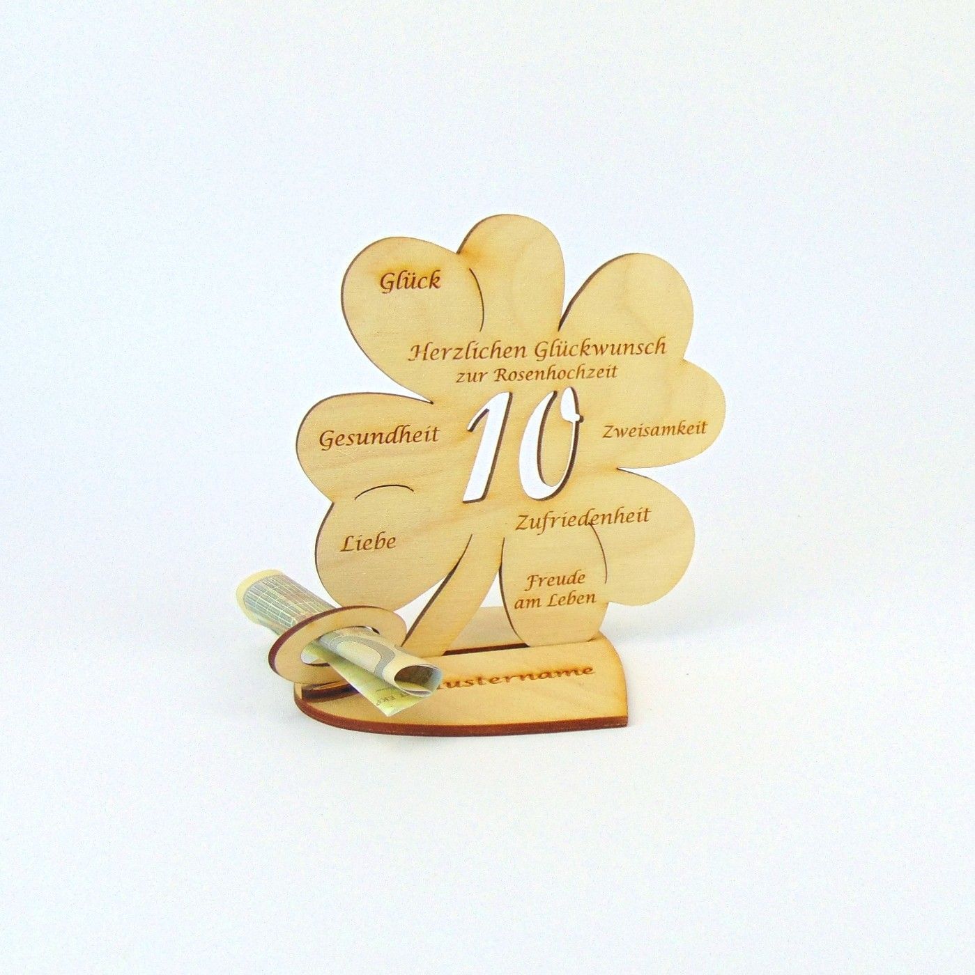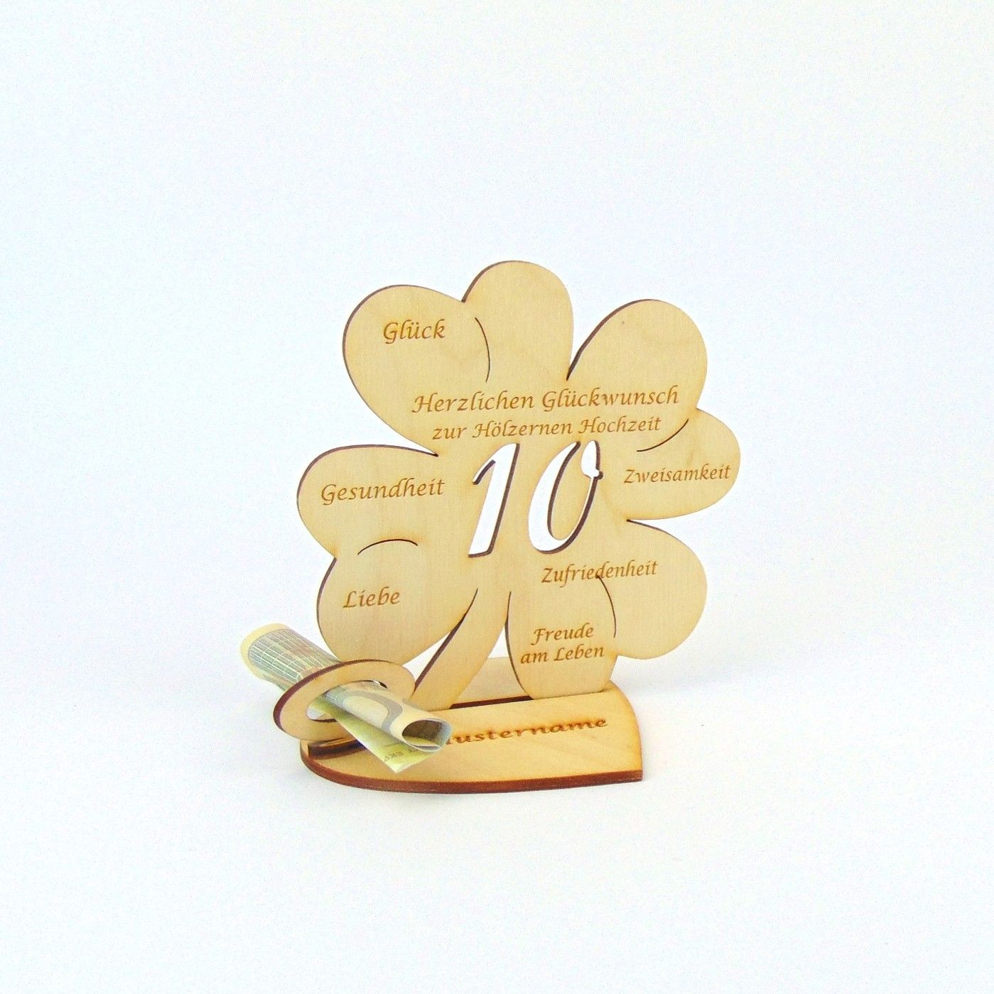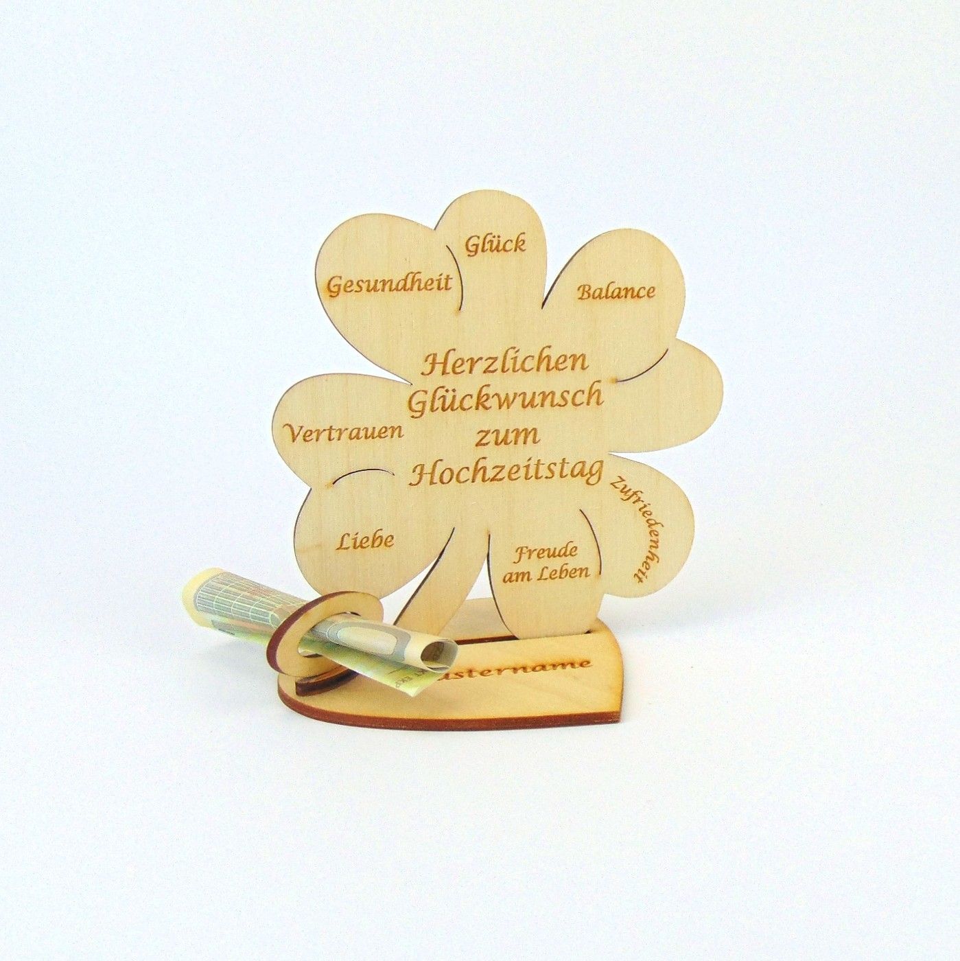 Hochzeitstag 10 25 50 Kleeblatt 11 cm Herzplatte Geldgeschenk Personalisiert