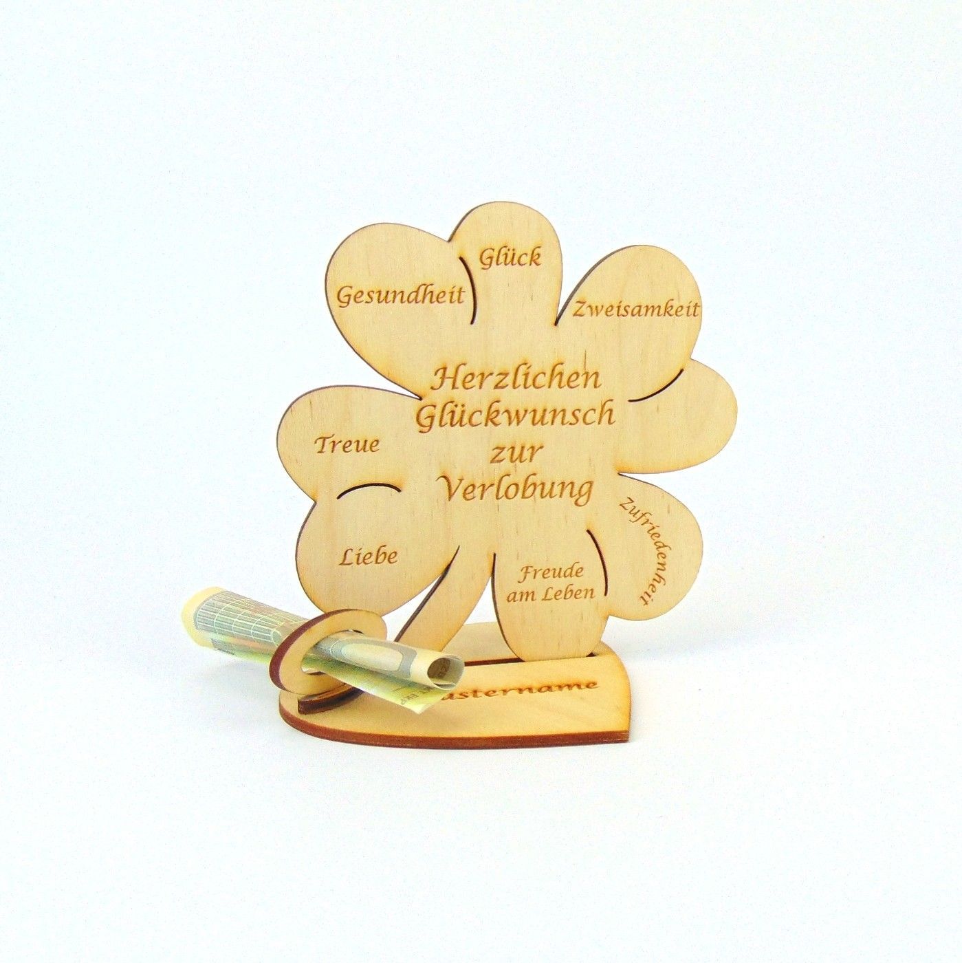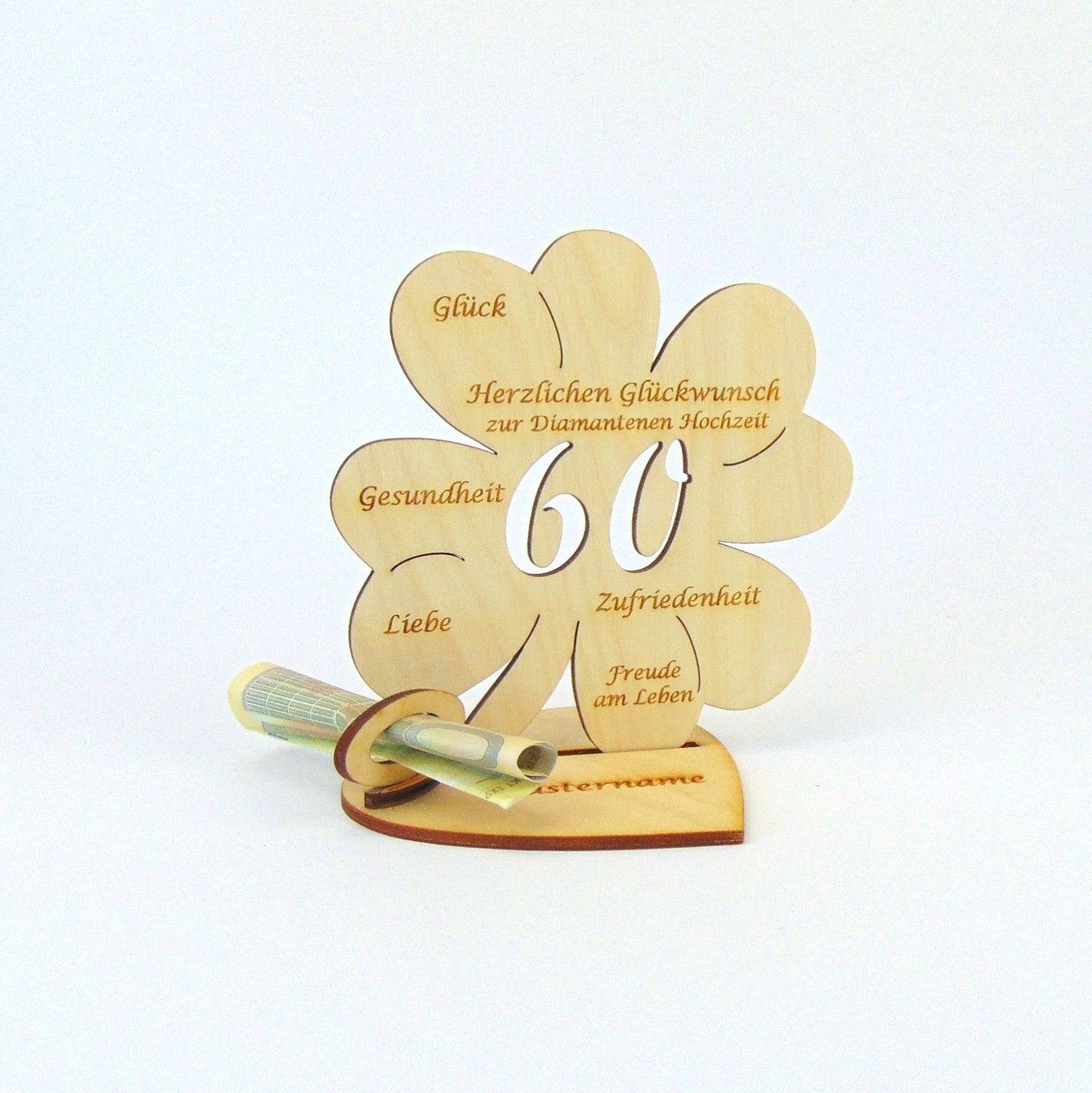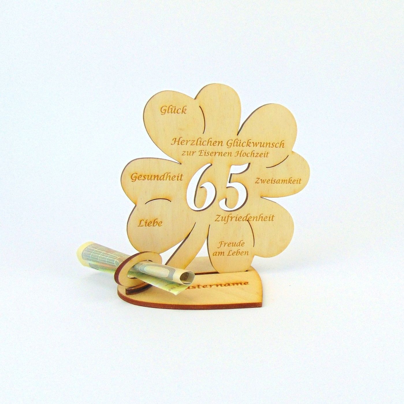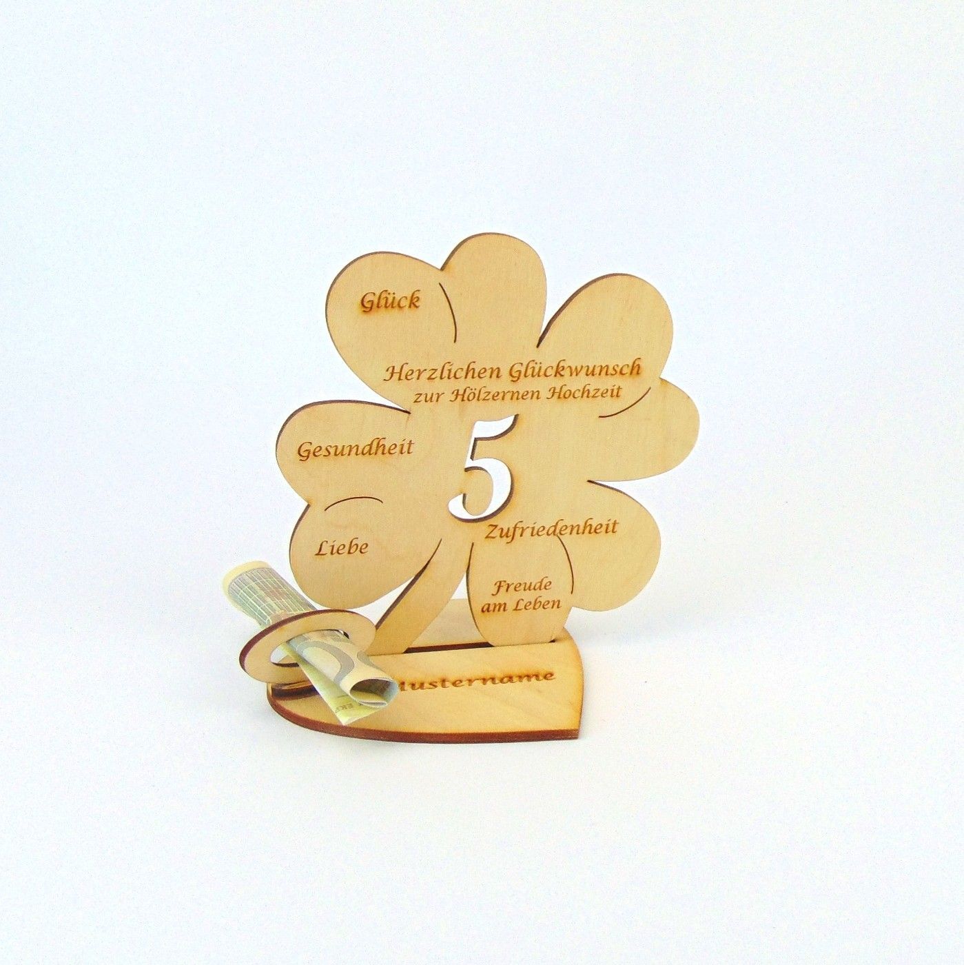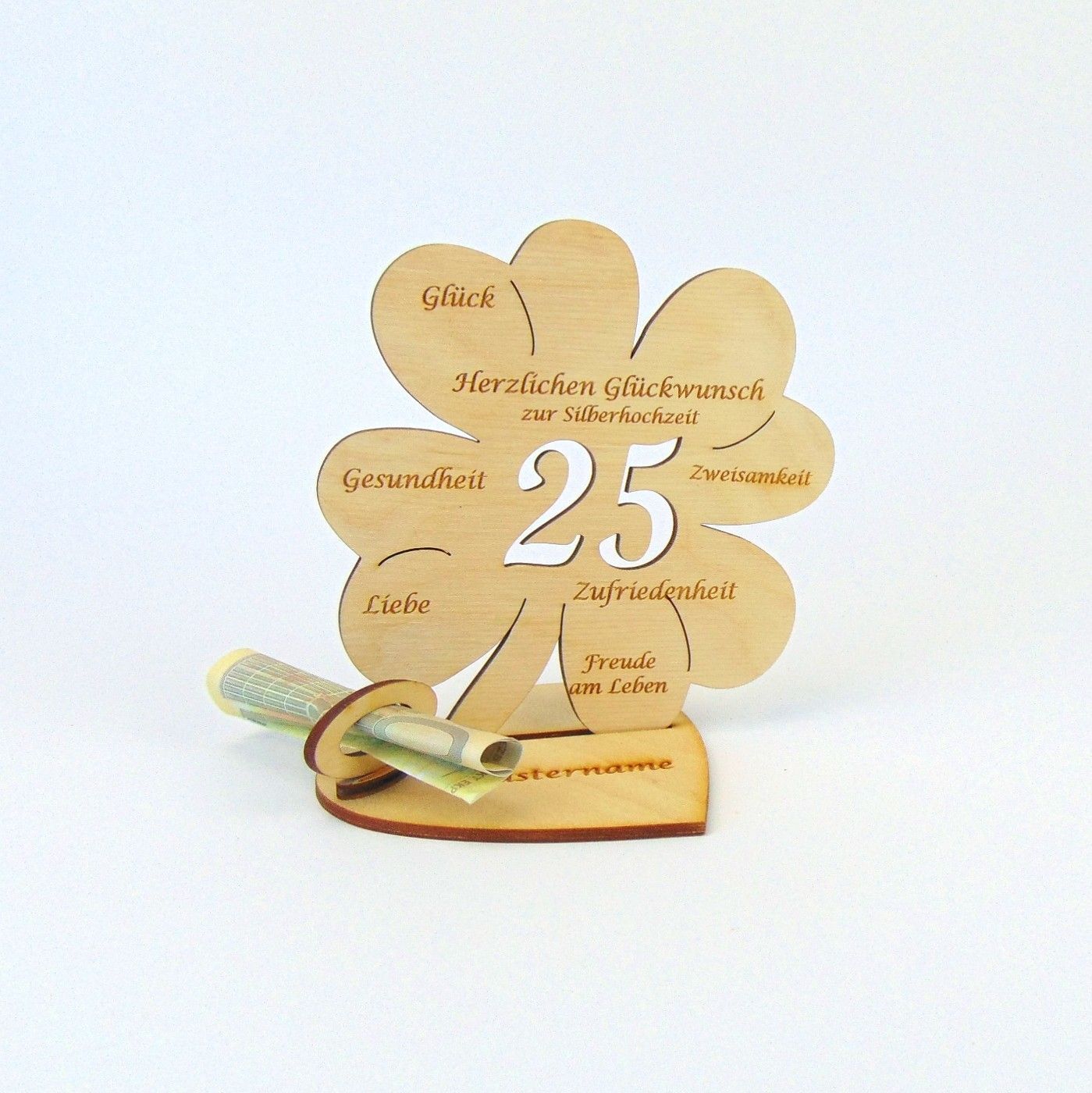 Hochzeitstag 10 25 50 Kleeblatt 11 cm Herzplatte Geldgeschenk Personalisiert