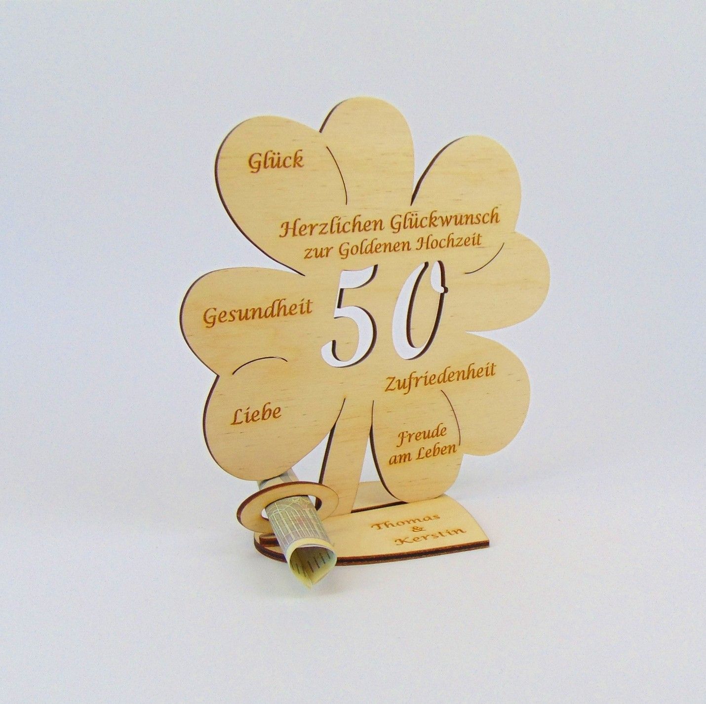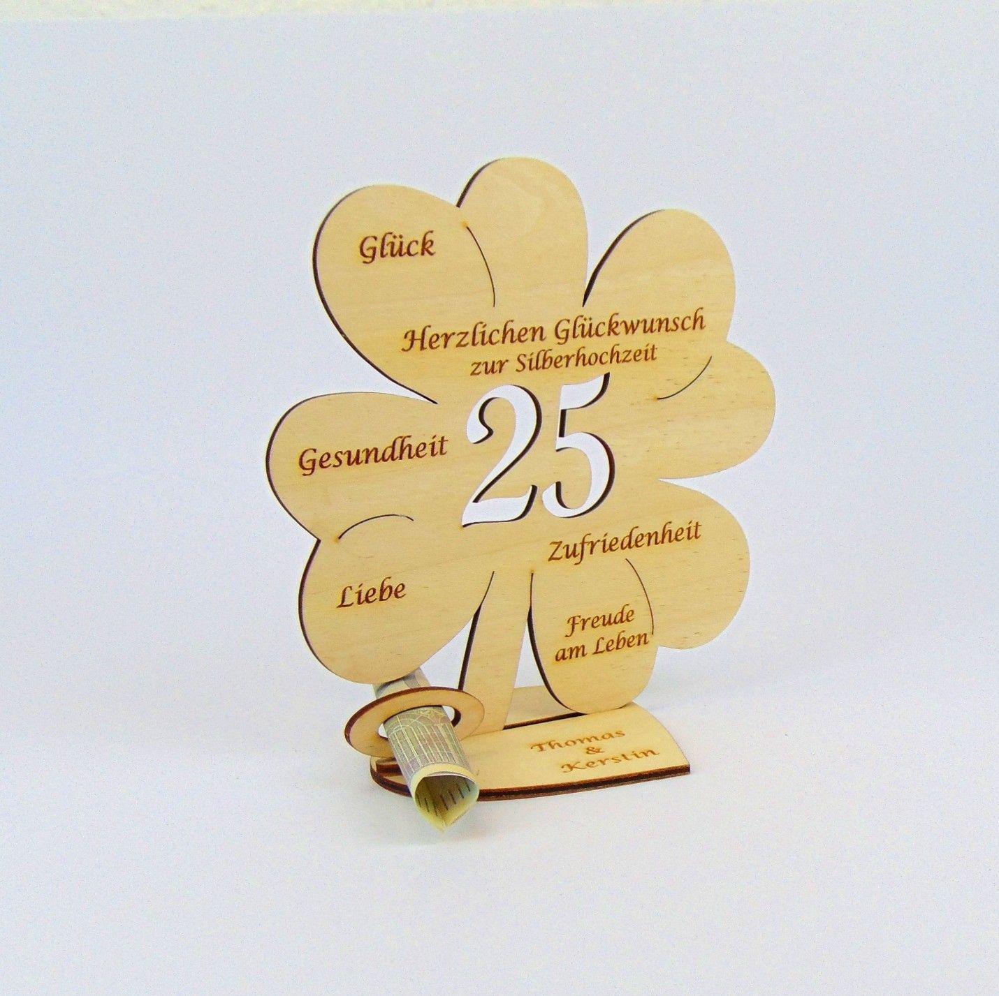 Hochzeitstag 10 25 50 Kleeblatt 16 cm Zackenplatte Geldgeschenk Personalisiert
