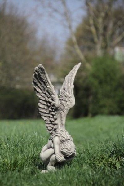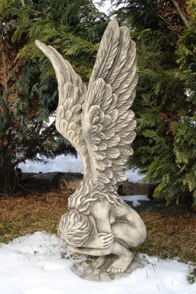Hockende Engelfrau Rachel H70cm Engel Skulptur Steinfigur Steinguss Vidroflor