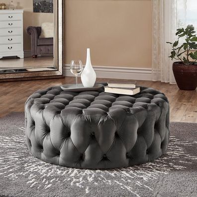 Designer Chesterfield Grauer Hocker Luxuriöser Polsterpouf