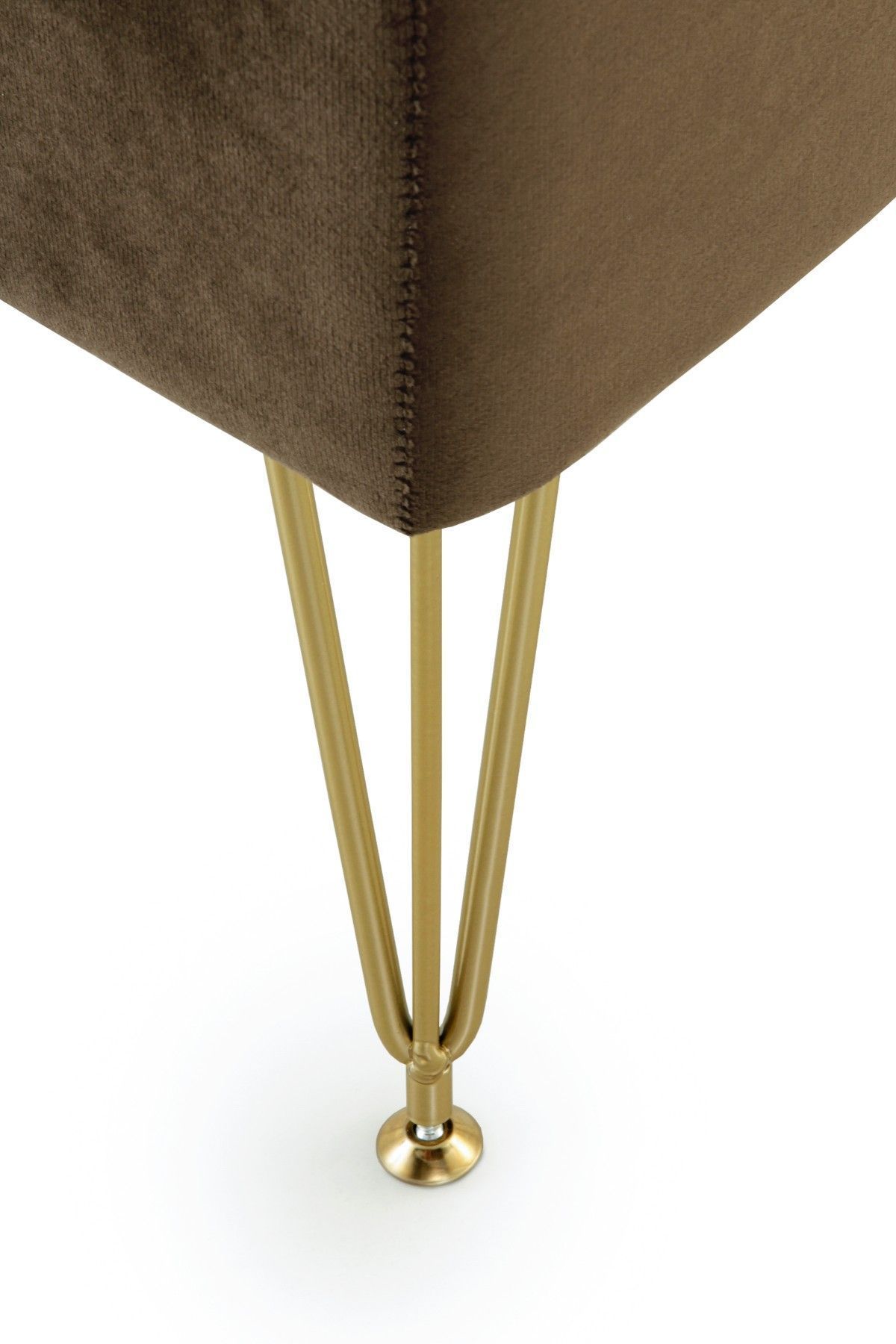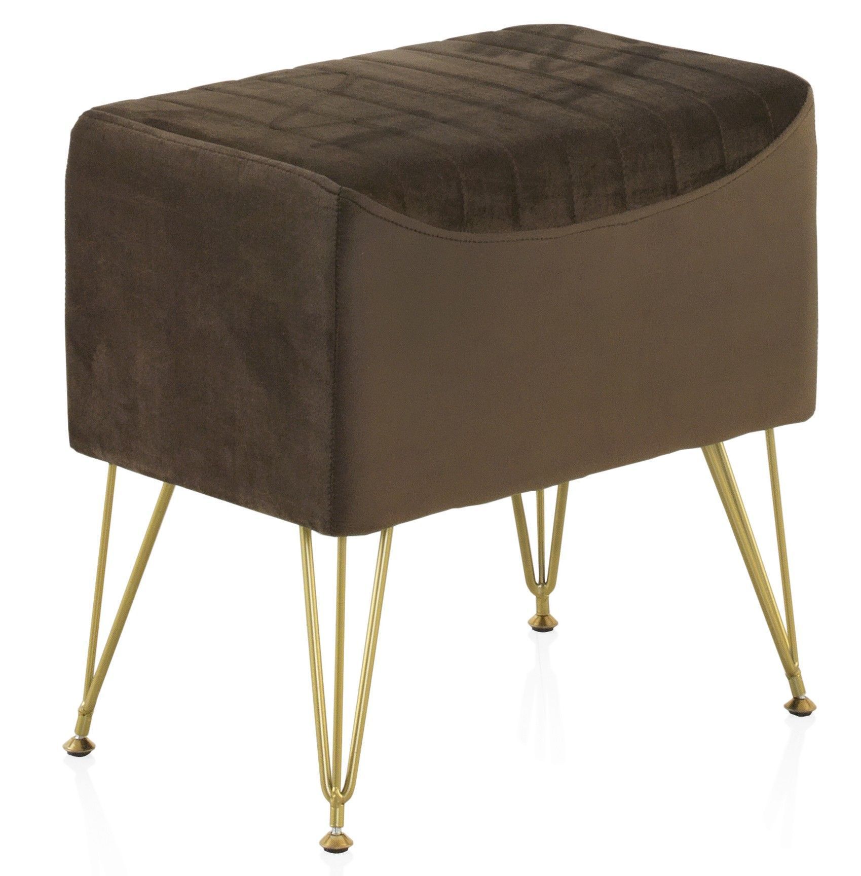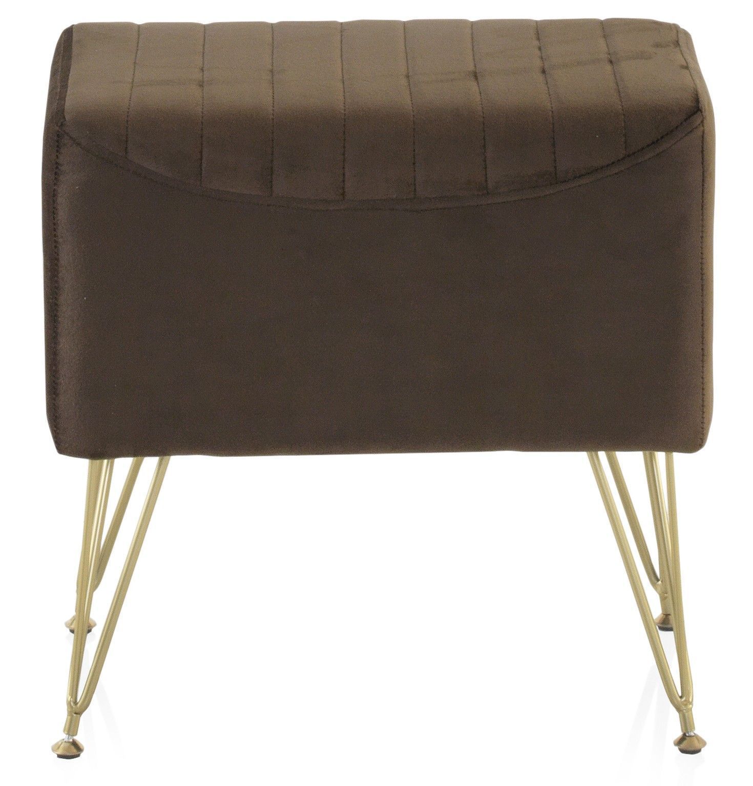 Hocker mit braunem Samtbezug und goldenen Beinen