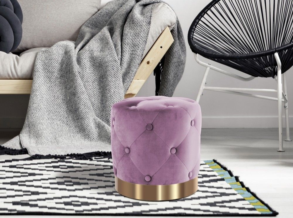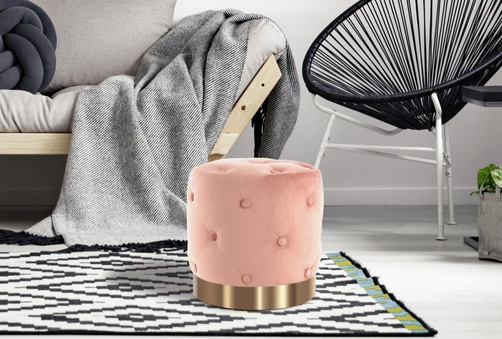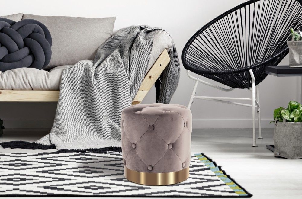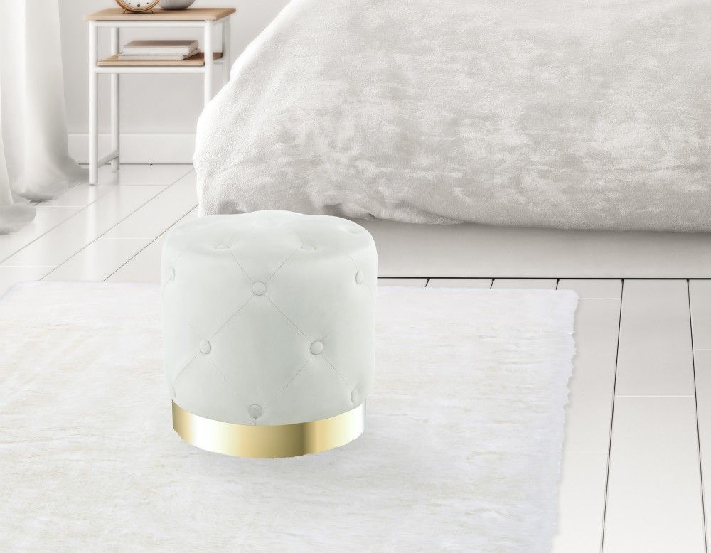 Hocker Pouf gold modern Sitz beige Polster trend design Samt gesteppt glamour