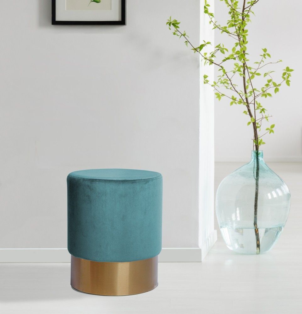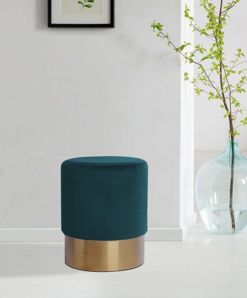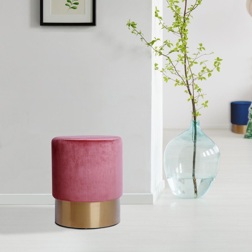 Hocker Pouf Samt design gold modern Sitzhocker Polsterhocker rund Schminkhocker