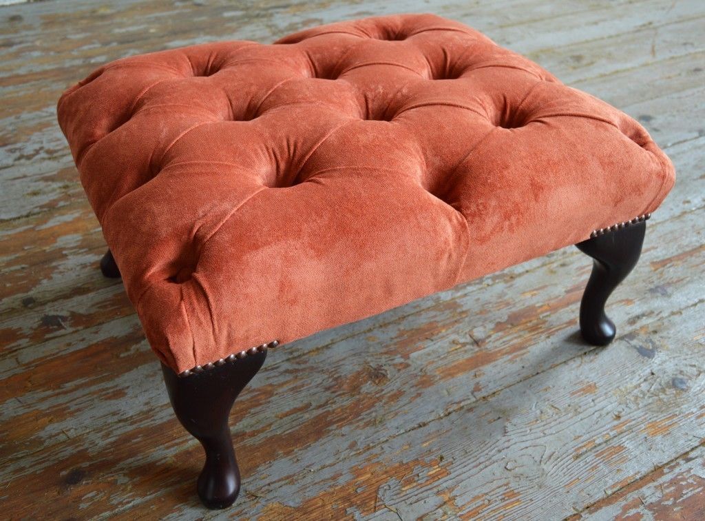 Hocker Sessel Fernseh Design Polster Fußhocker Chesterfield Textil Neu - 368