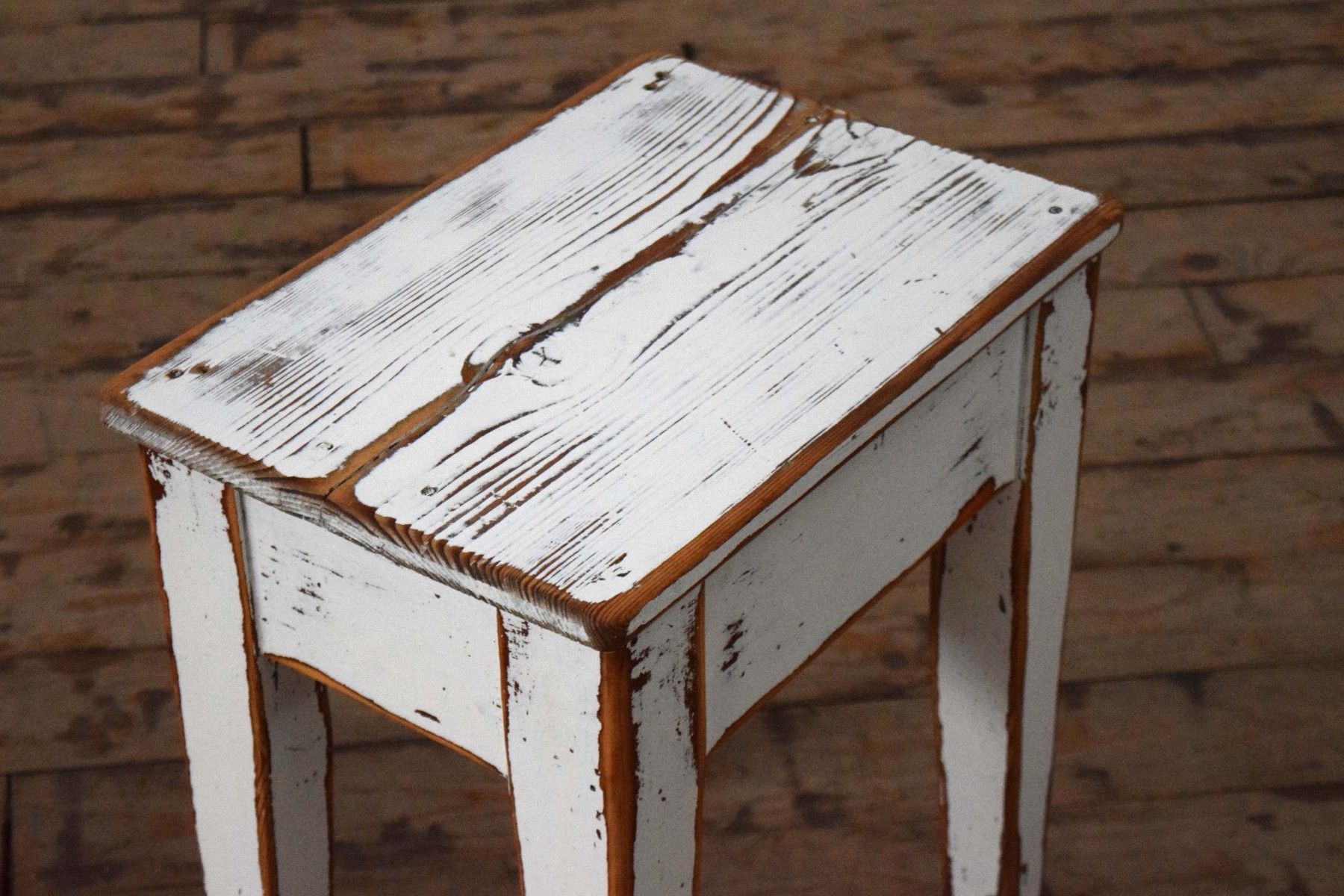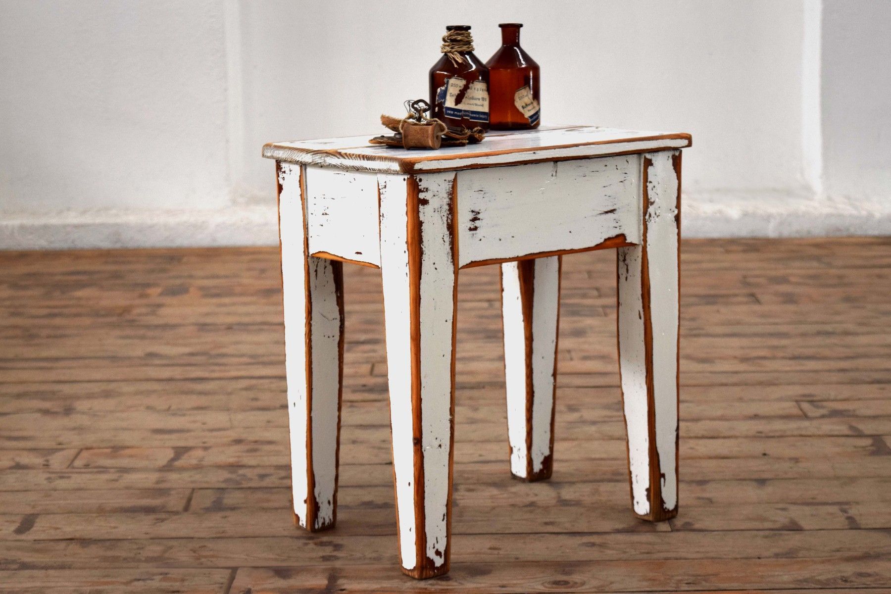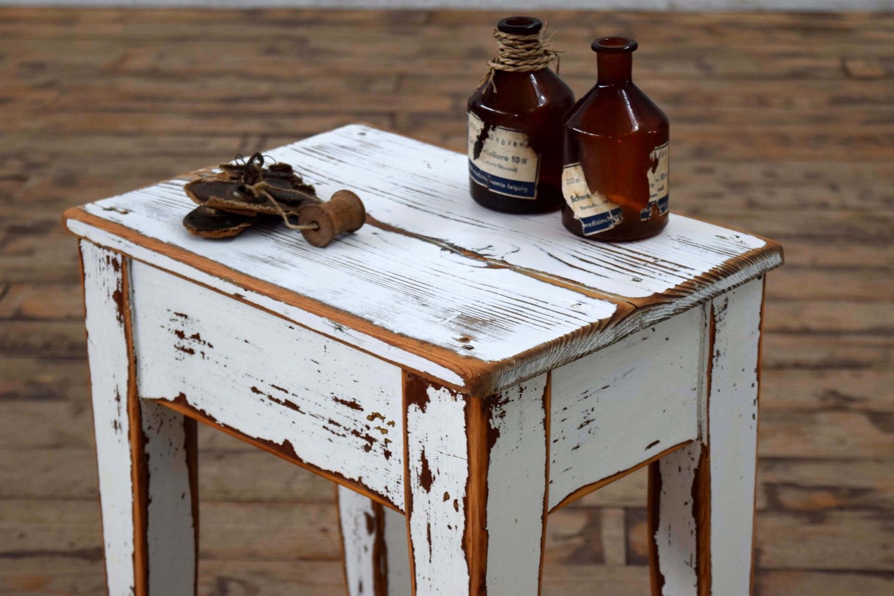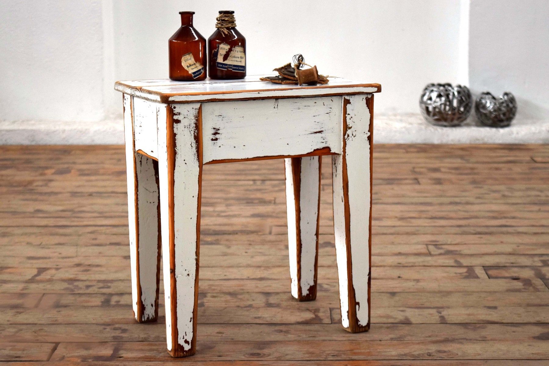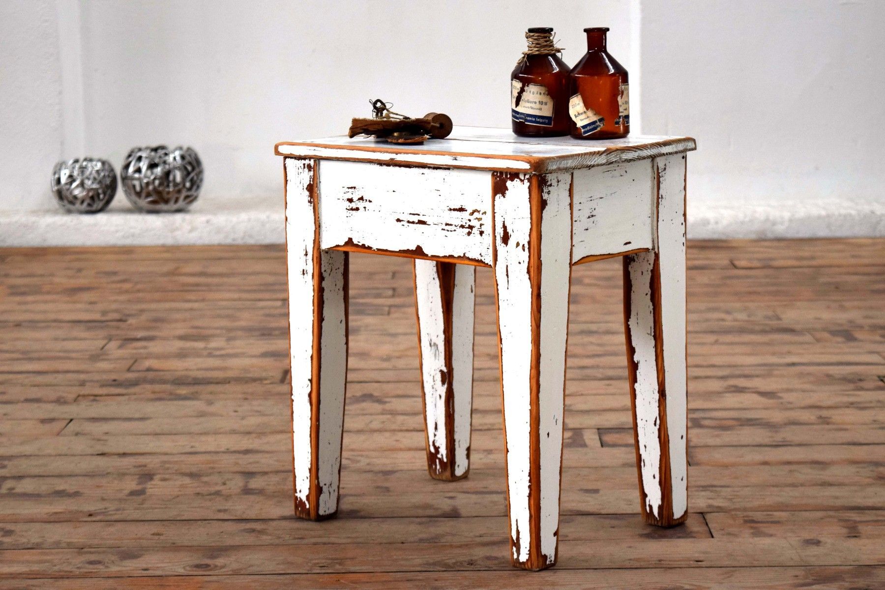 Hocker Shabby Weiß Antik Alt Beistelltisch Vintage Holz Landhaus Mid Century 50er