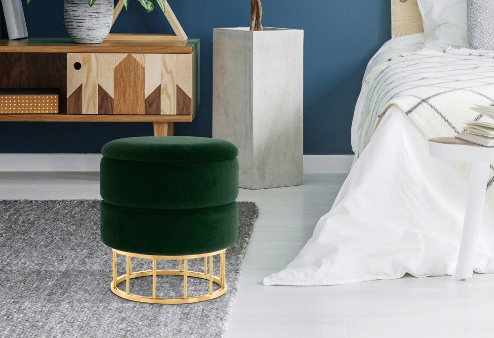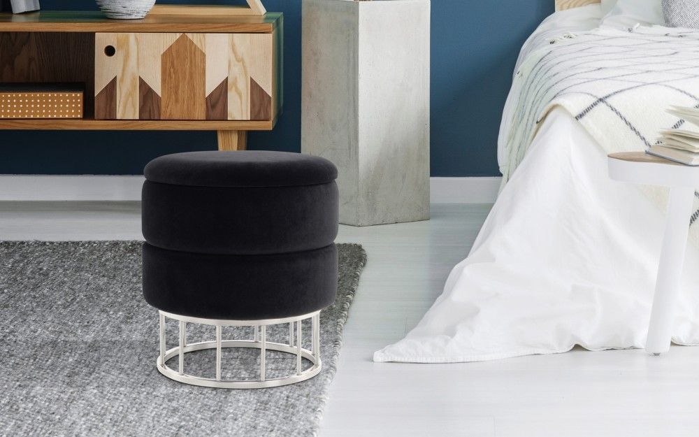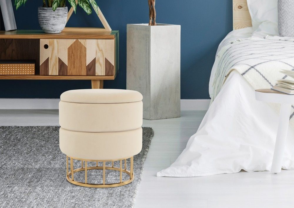 Hocker Stauraum Pouf gold modern Sitz Polster trend design Samt glamour silber