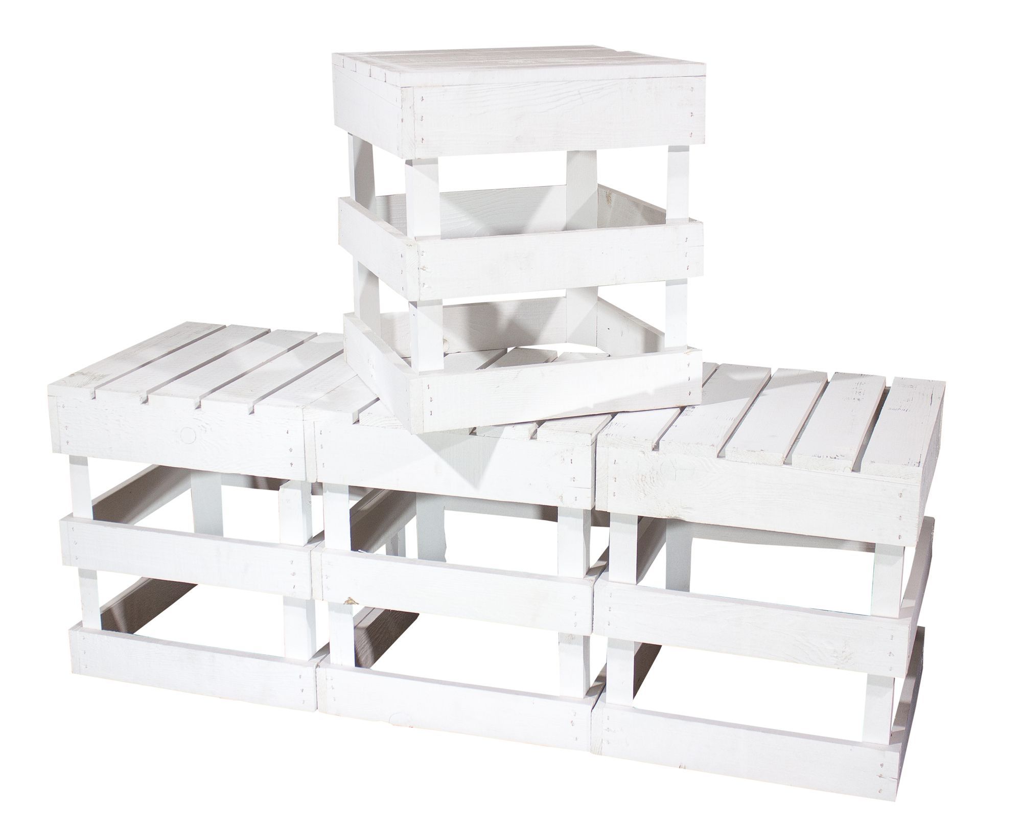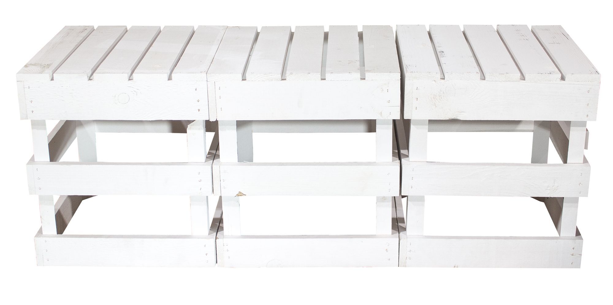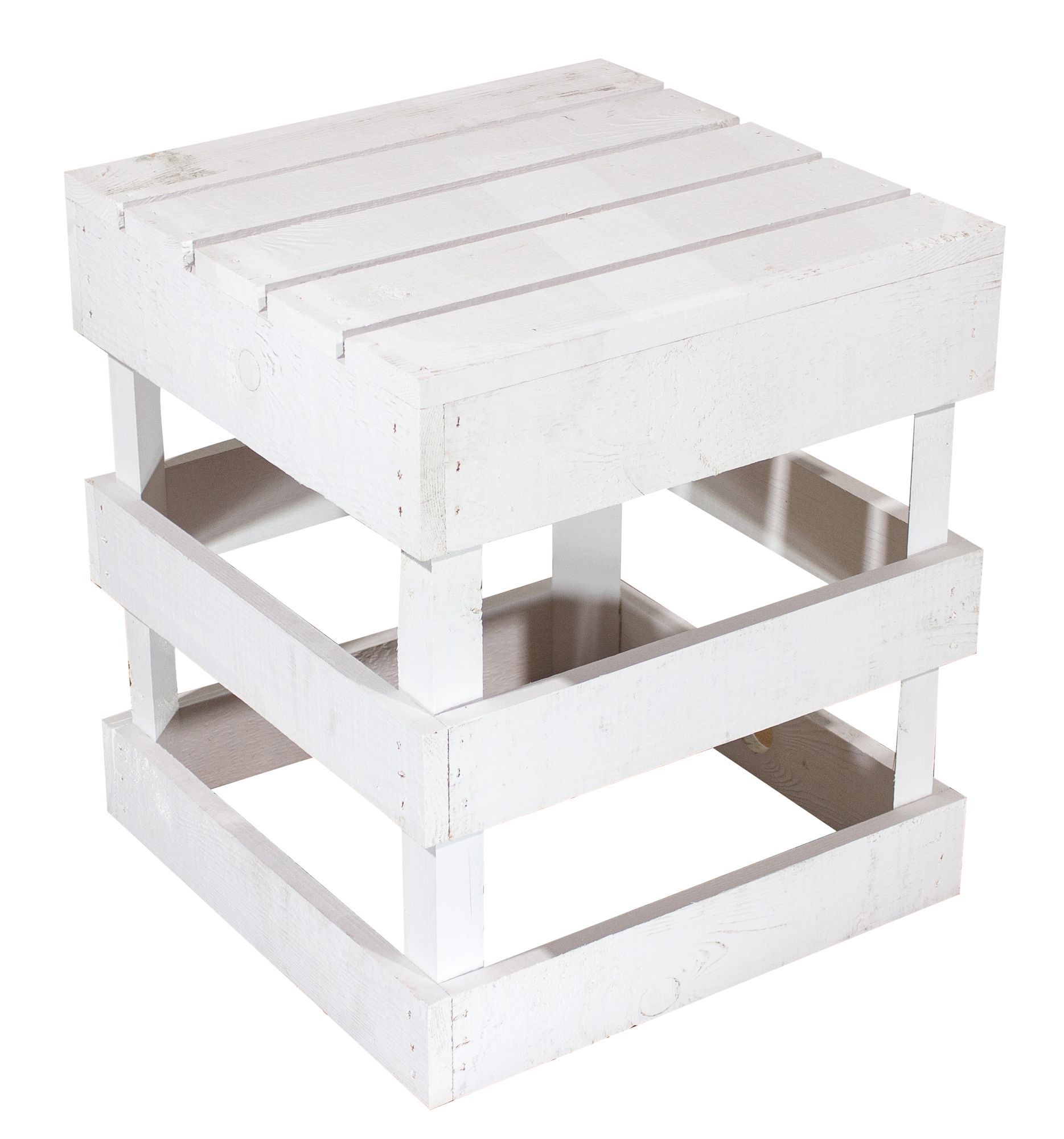 Hocker weiss Sitzhocker Ablagetisch Holzhocker Beistelltisch Stuhl in Holzkistenpotik