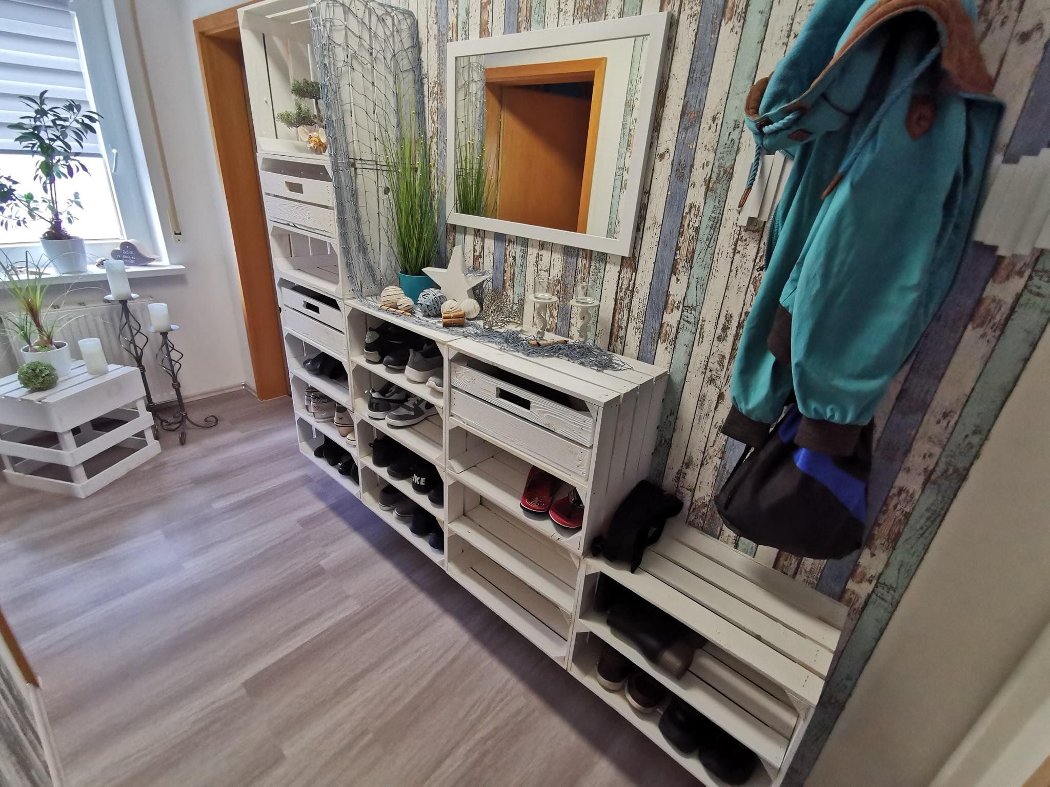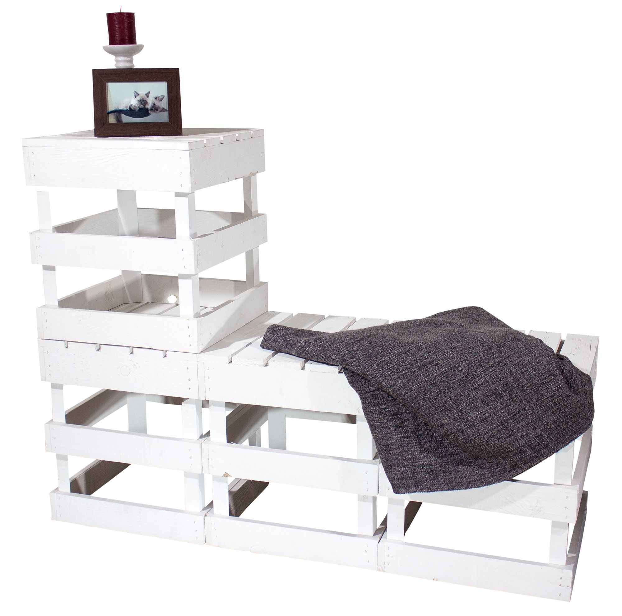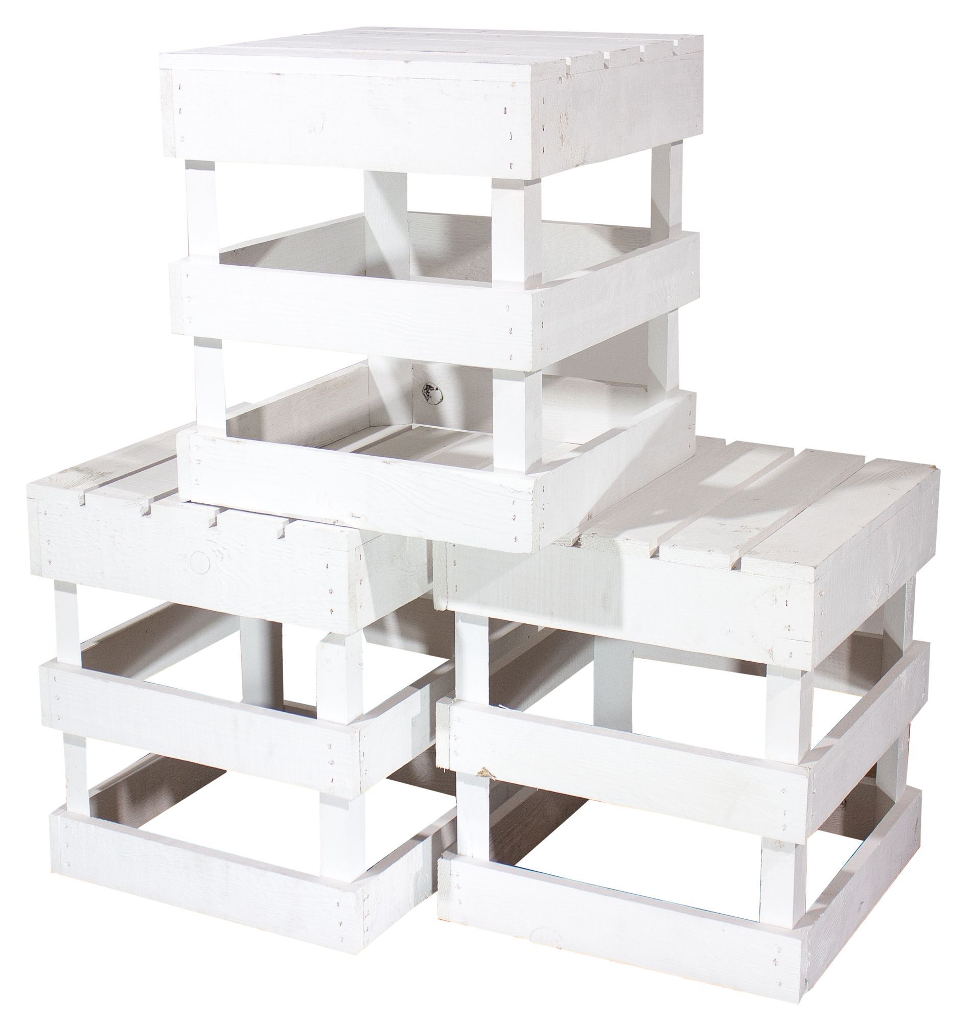 Hocker weiss Sitzhocker Ablagetisch Holzhocker Beistelltisch Stuhl in Holzkistenpotik