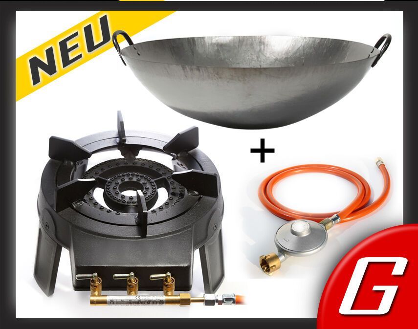 Hockerkocher Gaskocher Gaswok Wokbrenner 9,2 kW Wokpfanne Asia Wok Gasherd