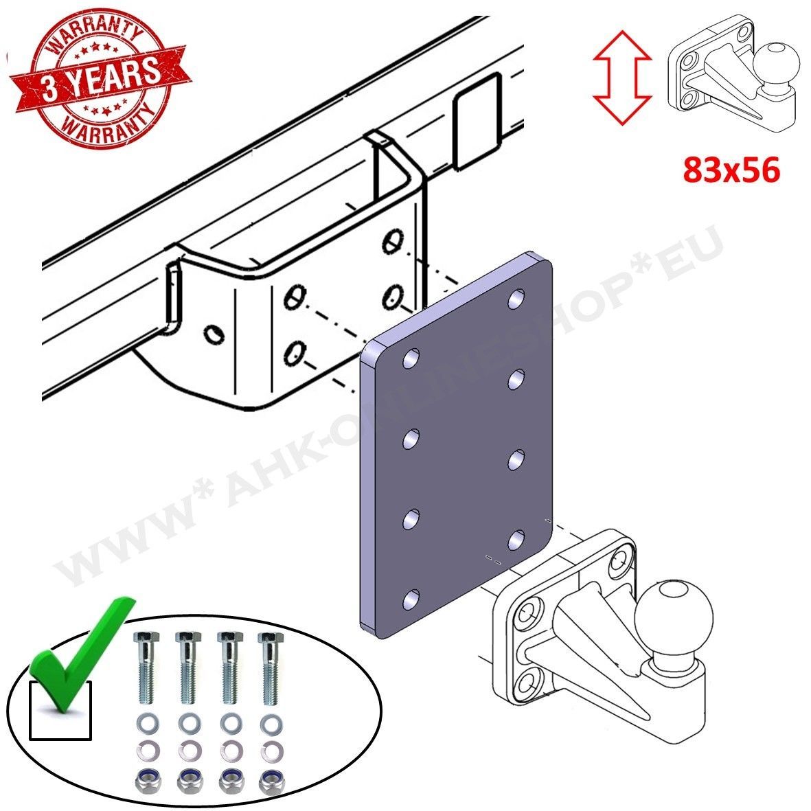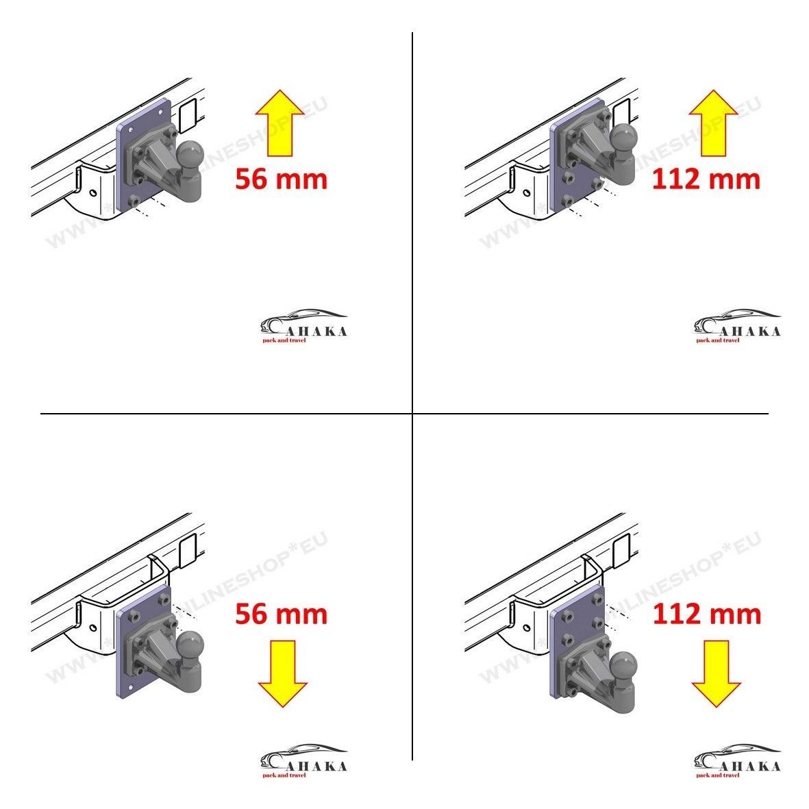 Höhenverstellbare Adapterplatte Anhängerbock 4x56 mm für AHK Flanschkugel 12 mm