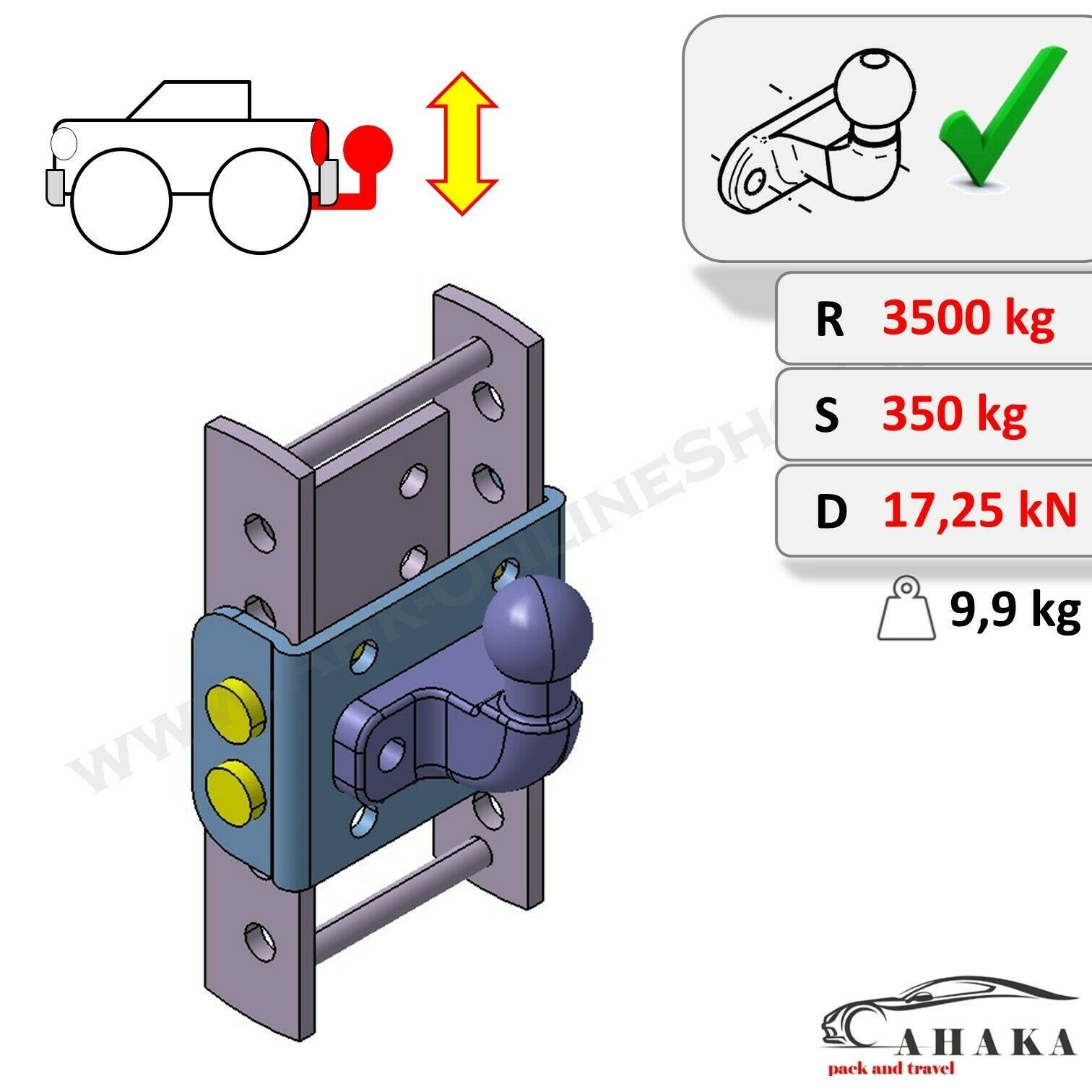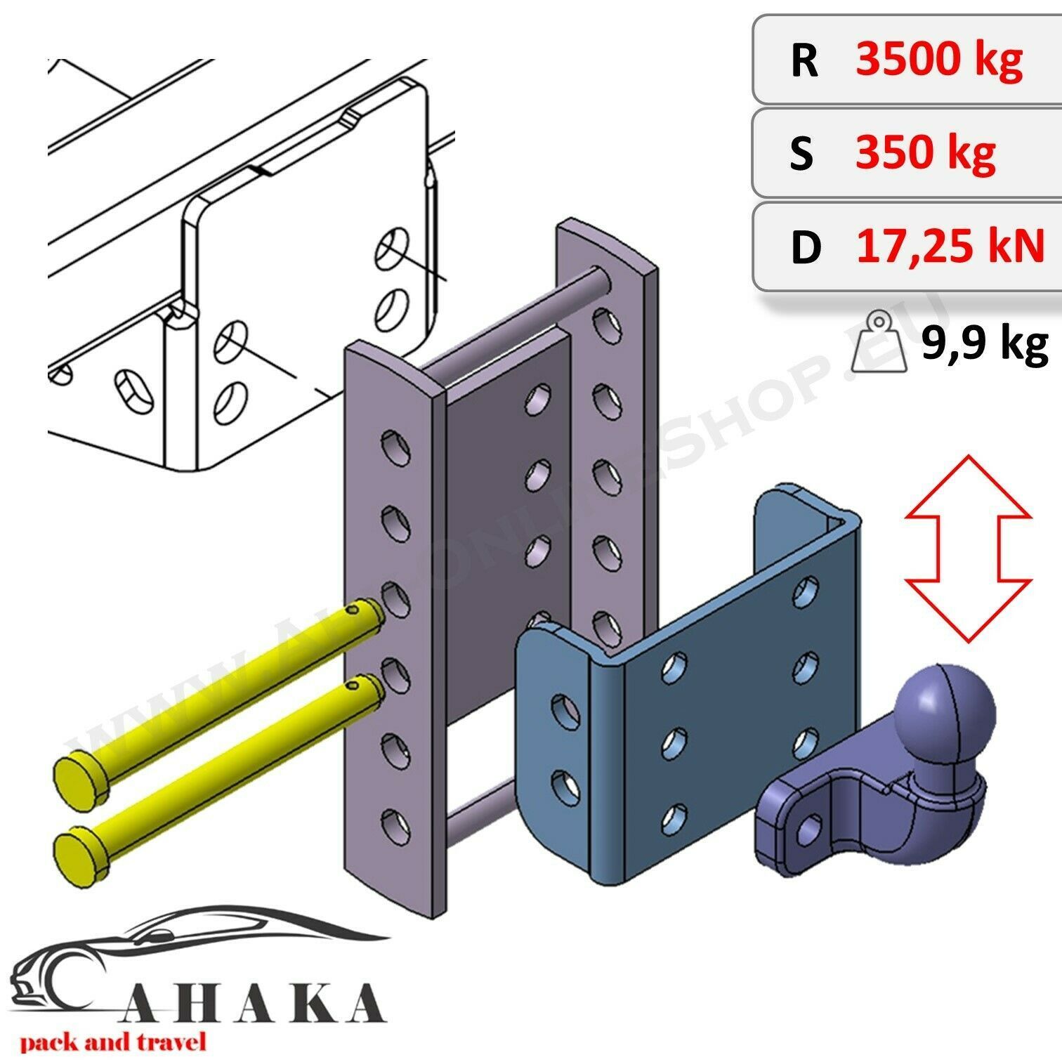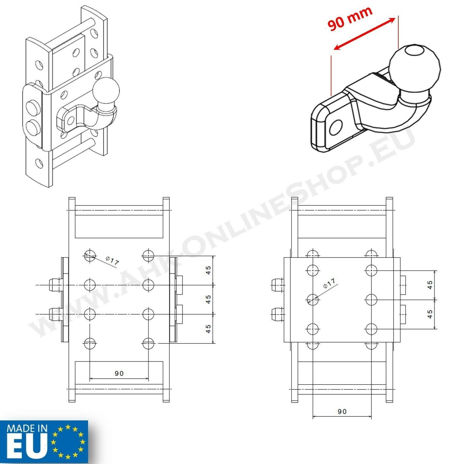 Höhenverstellbare Anhängerkupplung inkl. Befestigungsschrauben - 5 x 45 mm