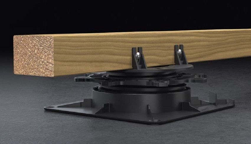 Stelzlager L-Aufnahme Die Stelzlager L-Aufnahme für Holz- und WPC-Unterkonstruktionen werden durch einen Verstellring in der Höhe justiert. Die Unterkonstruktionen werden mit dem dafür vorgesehenen Anschlag seitlich verschraubt. Stelzlager zur Verlegung von Holzkonstruktionen Nicht für Beton Terrass
