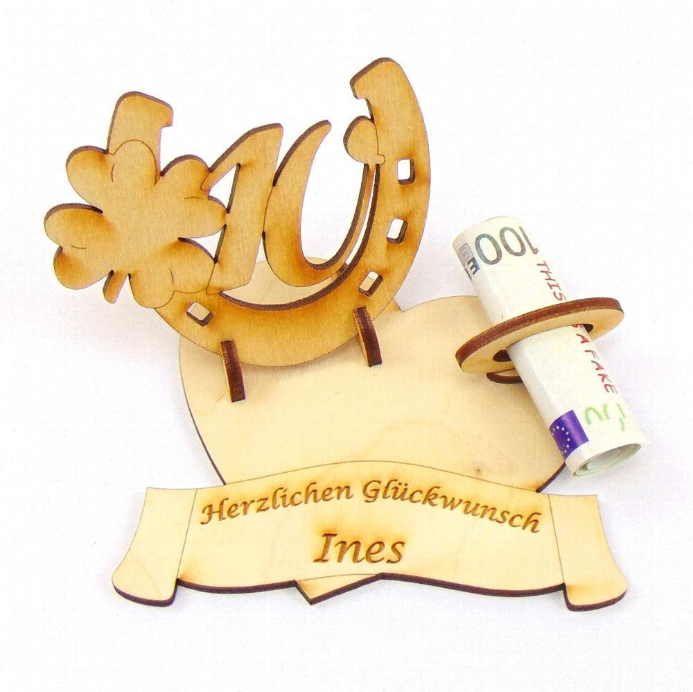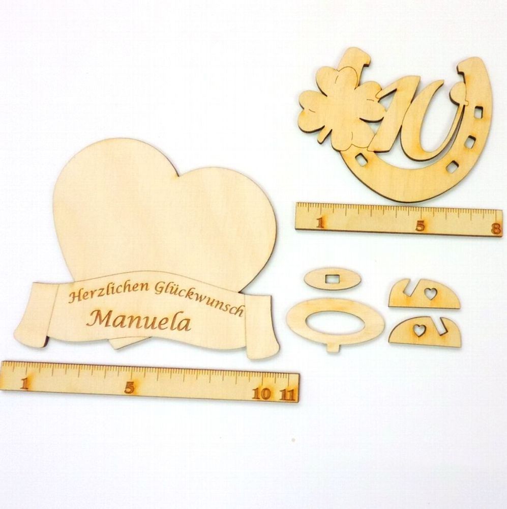 Hölzerne Hochzeit 10 Hufeisen Herz mit Namen des Brautpaares Holz Geldgeschenk