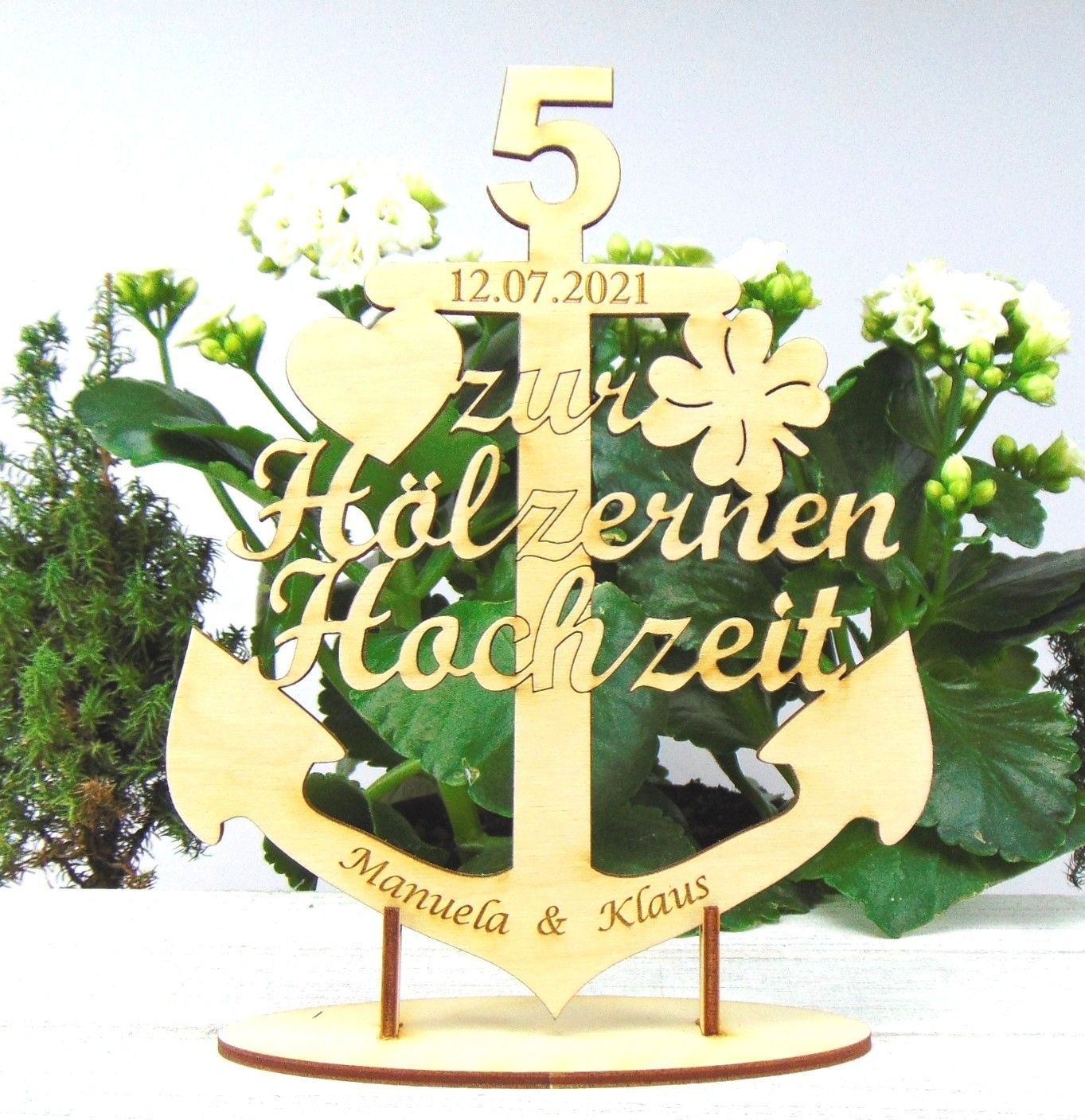 Hölzernen Hochzeit Anker aus Holz, 5 Jahre mit Gravur, Personalisiert, mit Ständer