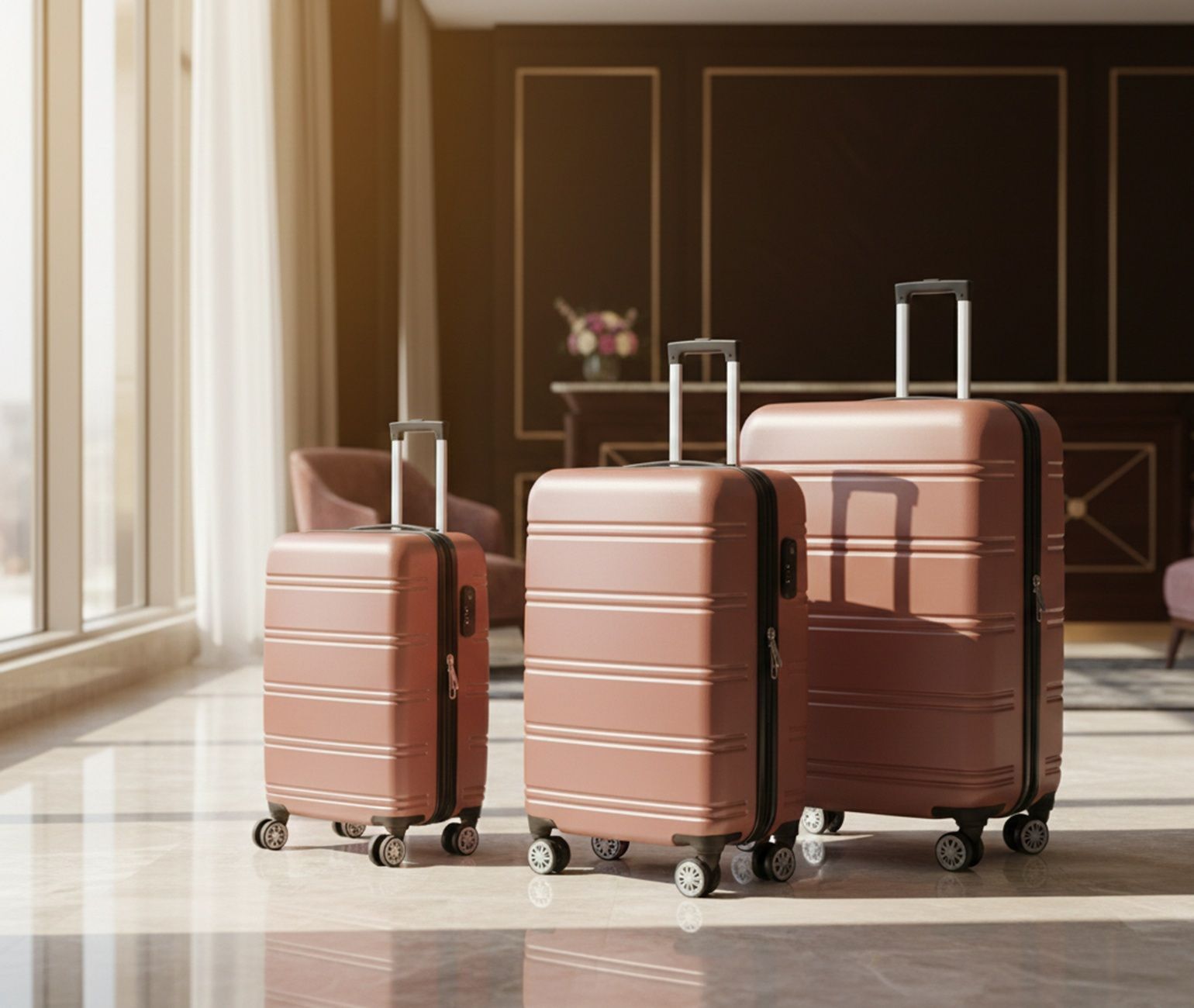 Hoffmanns Line Rose Hartschalenkofferset 3-teilig mit 360°-Rollen & Sicherheitssch