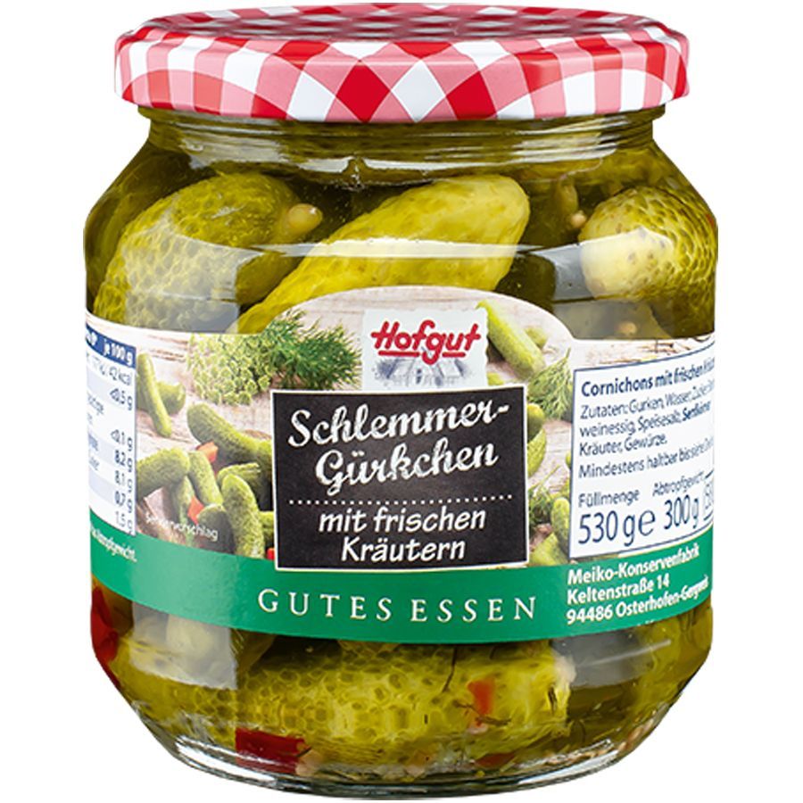Hofgut Schlemmer Gürkchen mit frischen Kräutern im Glas 580ml