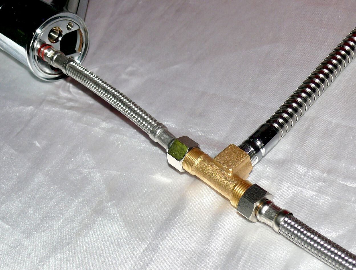 • Hoga Niederdruck T-Stück Brause Adapter Ausziehbare Küchen Bad Spültisch Armatur