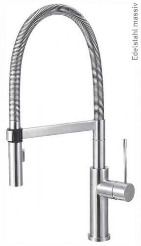 Hohe Edelstahl-Küchenarmatur mit Schlauchbrause