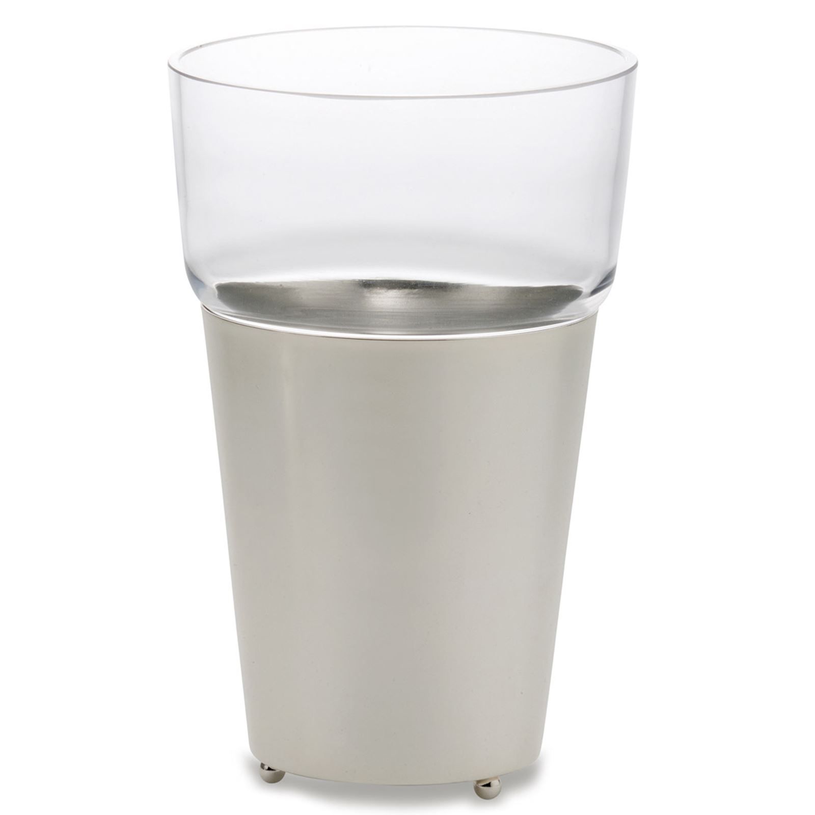 hohe runde versilberte Blumenvase Ø 16 cm 25 cm hoch auf Füßchen