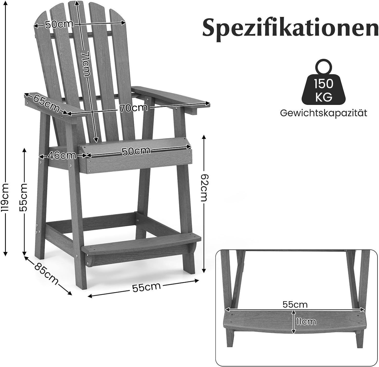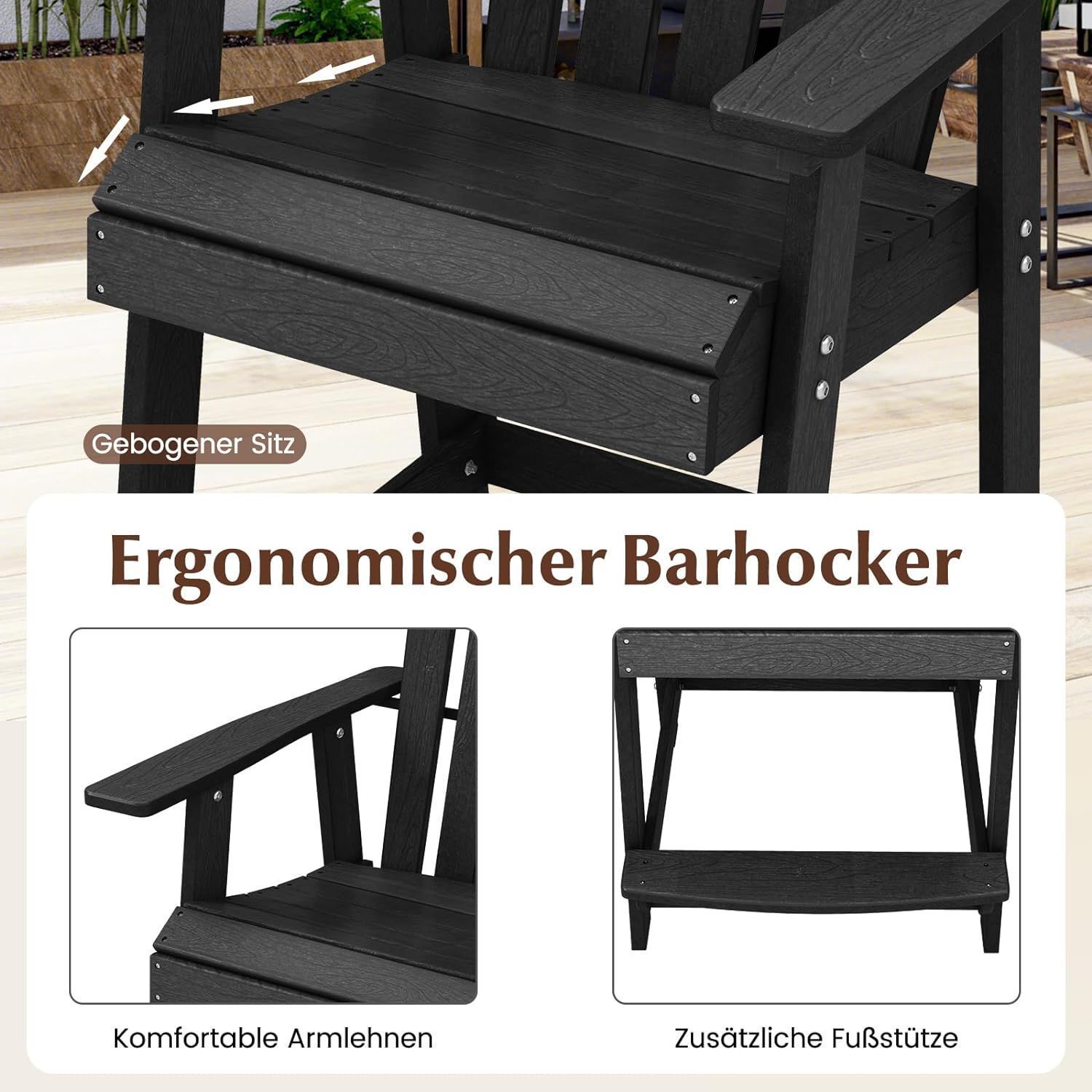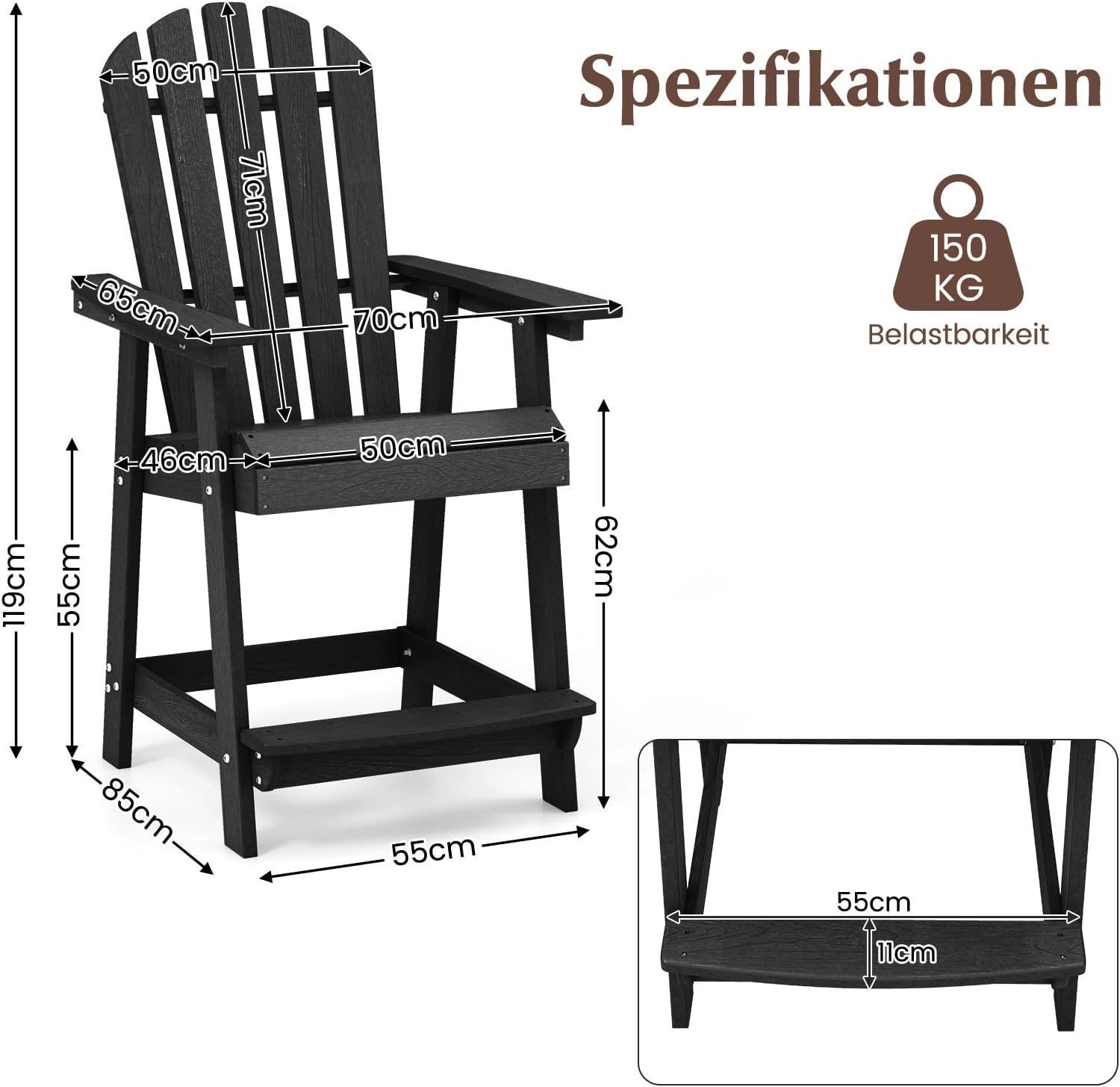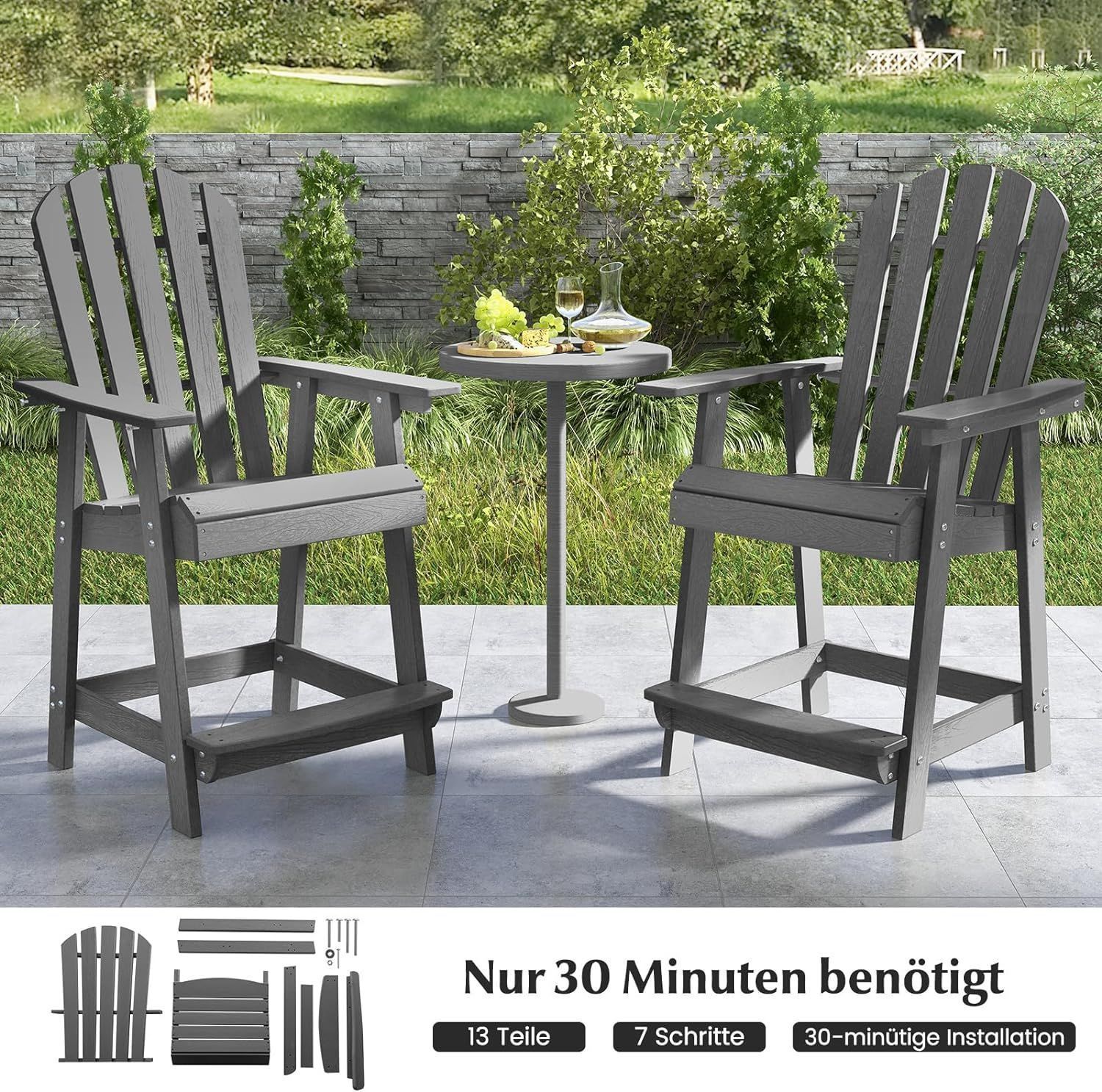 Hoher Adirondack Stuhl mit Fußstütze, wetterfester Barhocker aus HDPE, Balkonstuhl