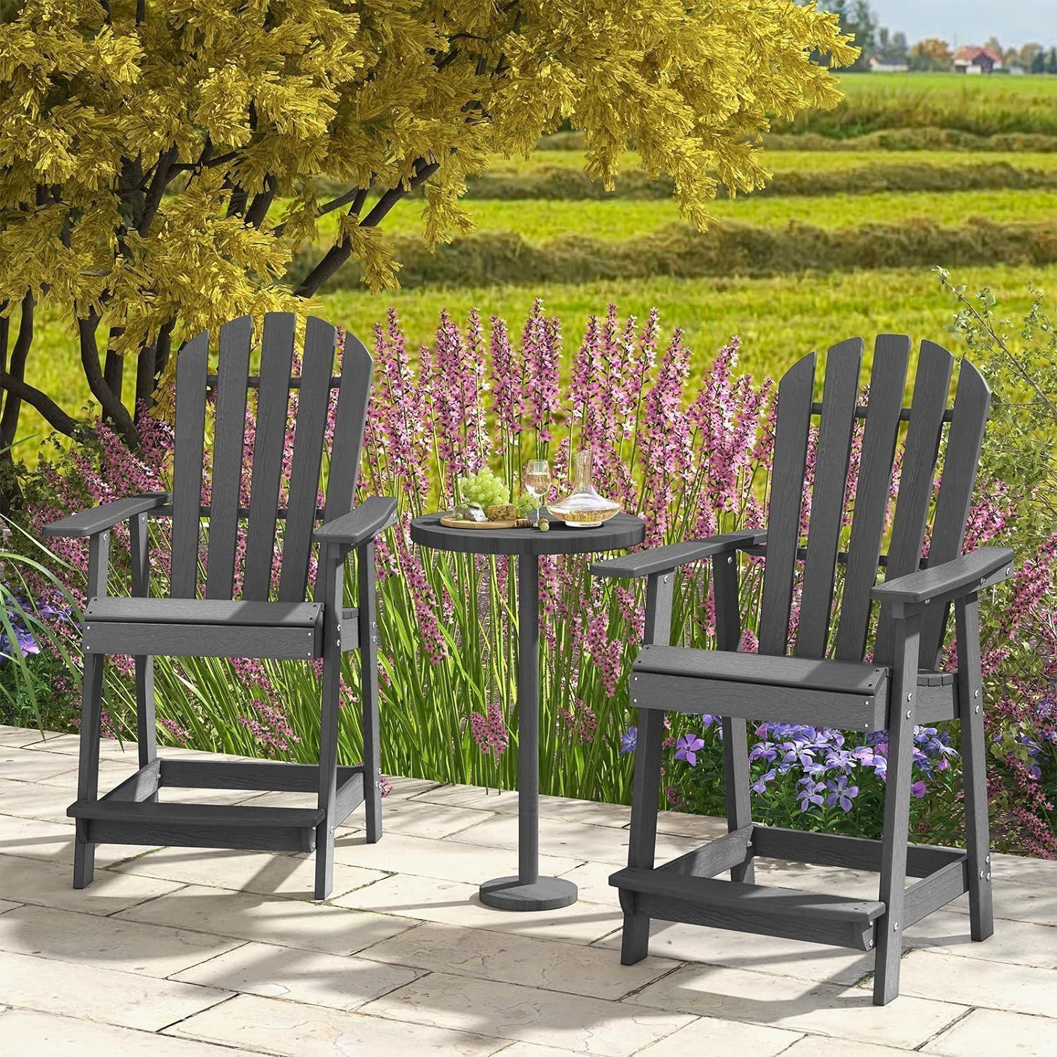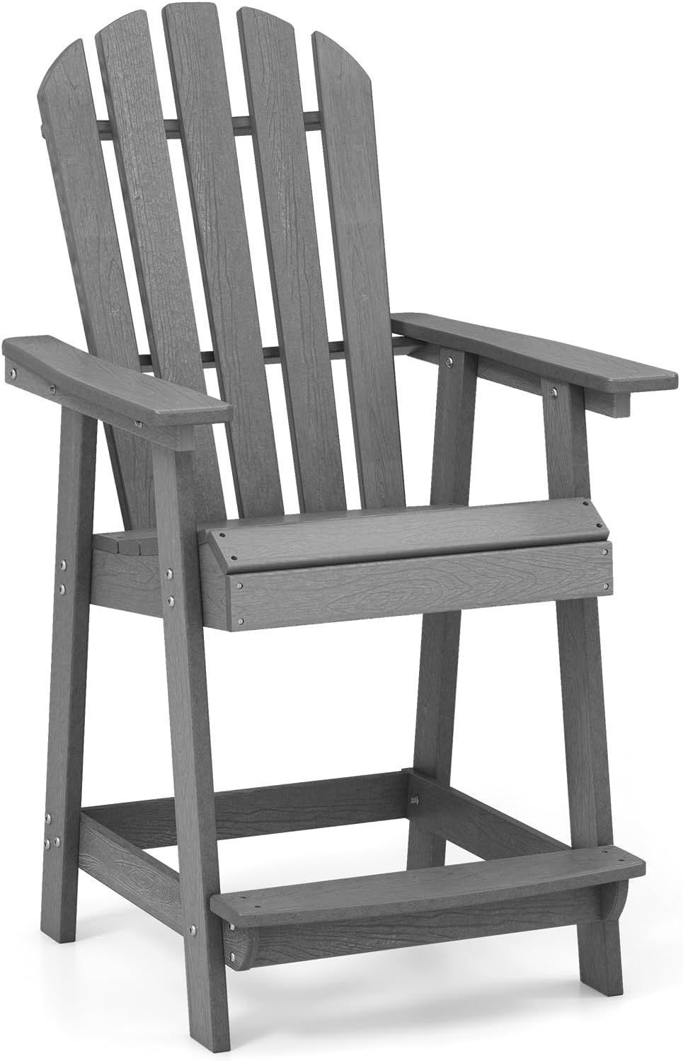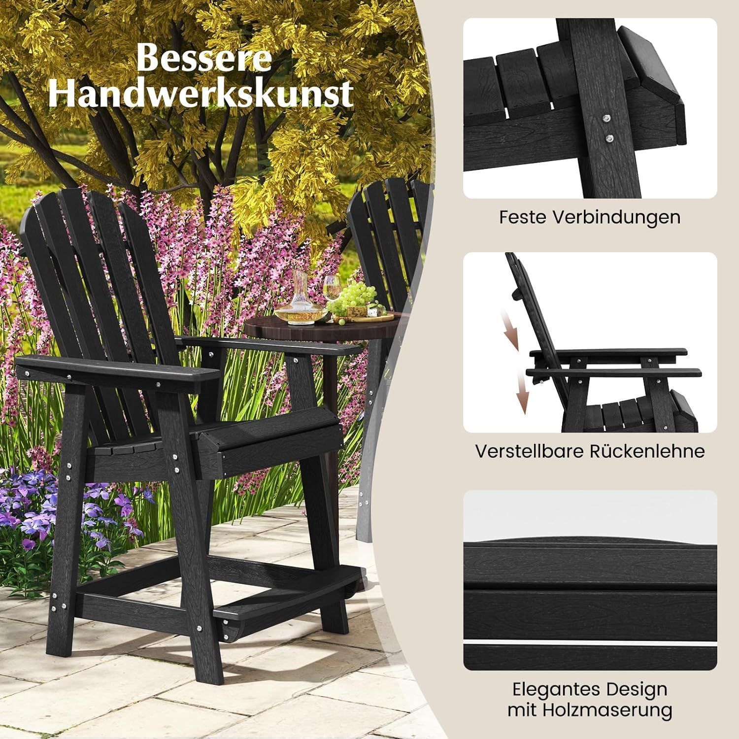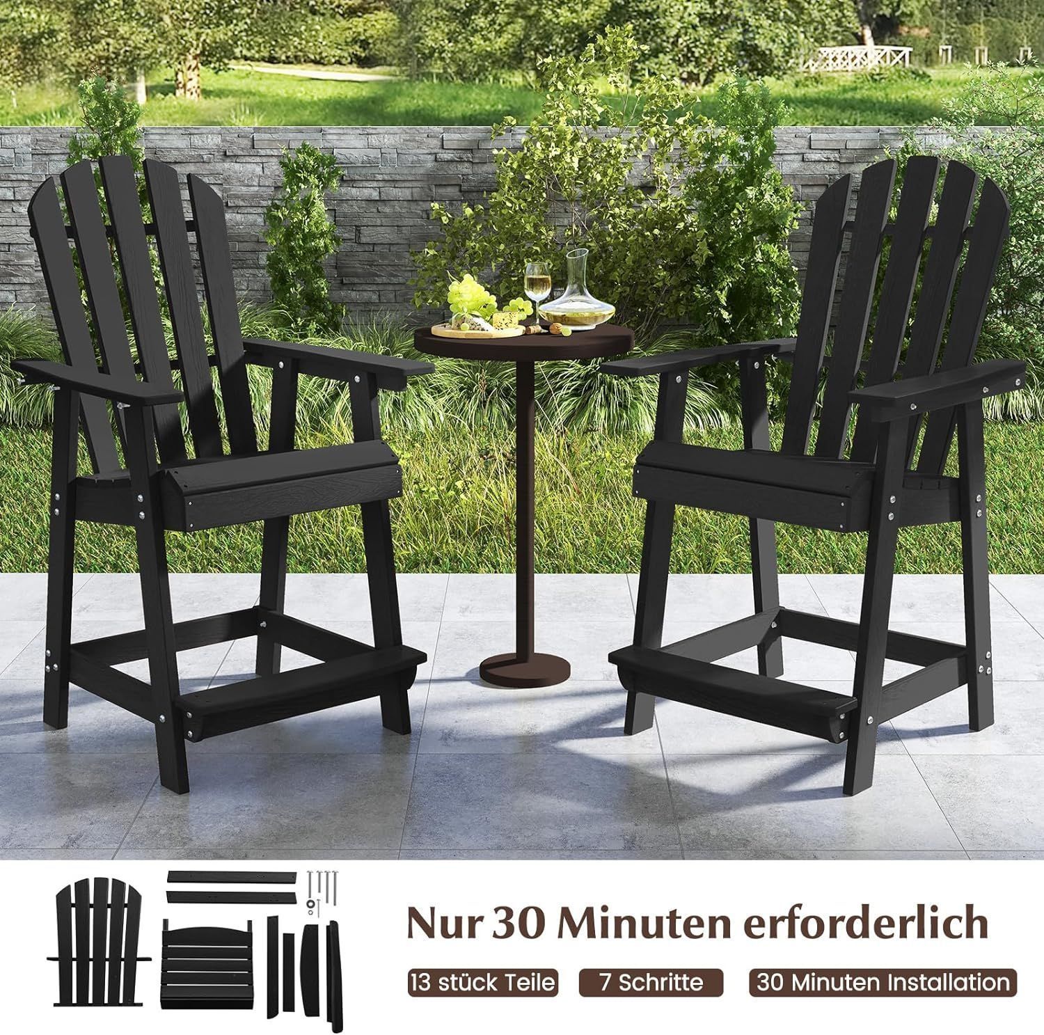 Hoher Adirondack Stuhl mit Fußstütze, wetterfester Barhocker aus HDPE, Balkonstuhl