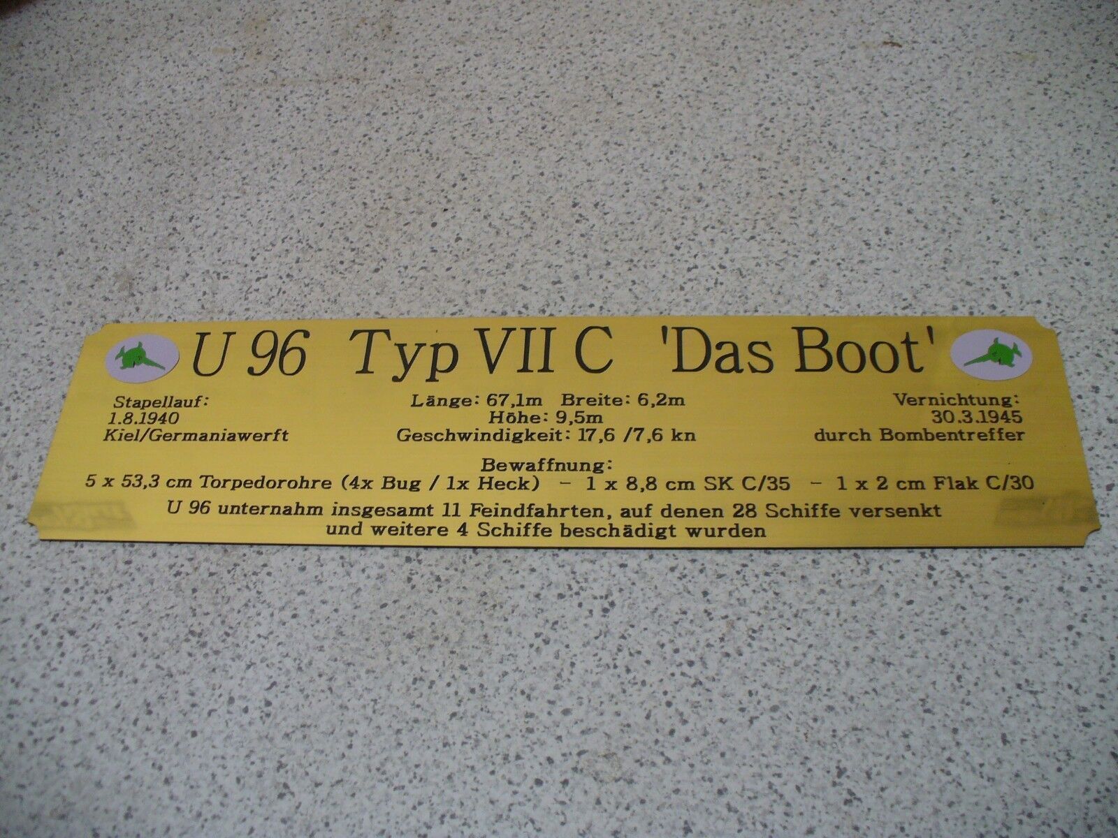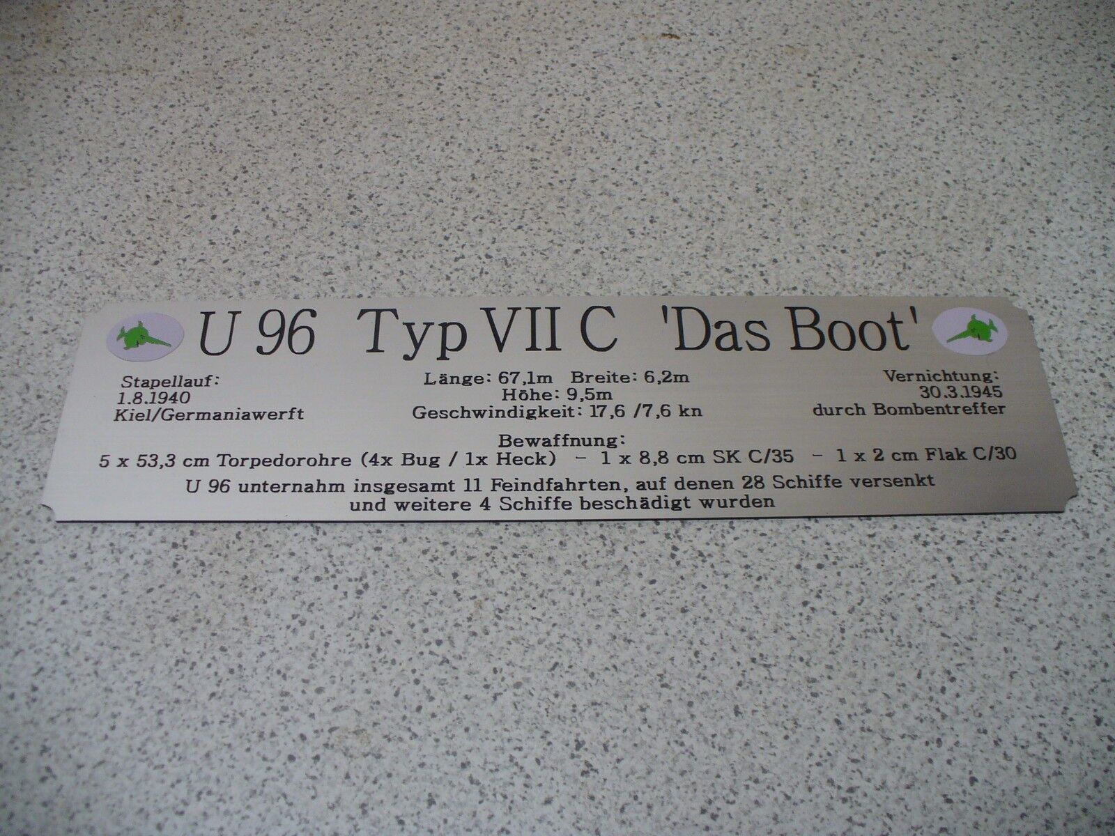 Hohes Namensschild mit zusätzlichen Daten für Modellständer - U 96