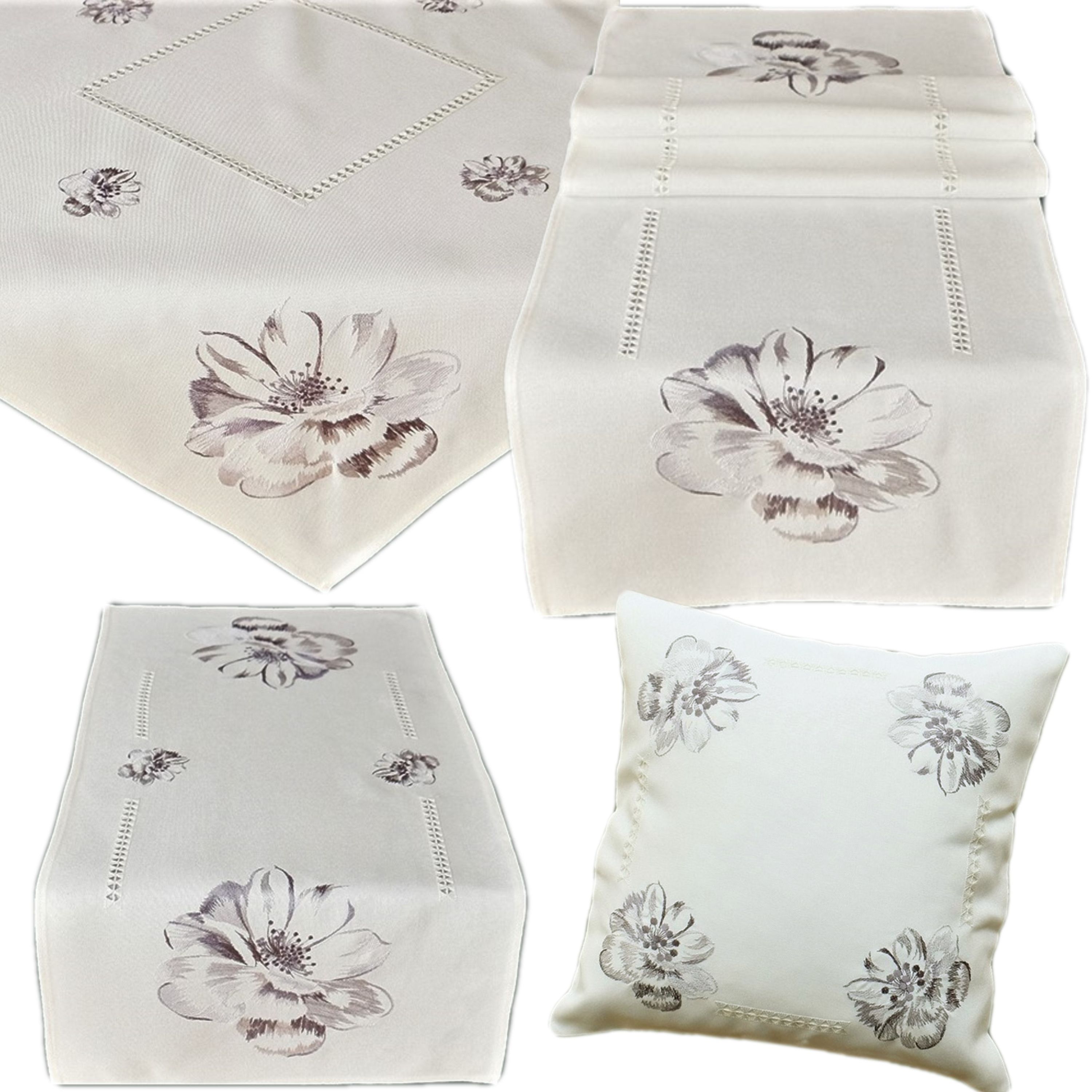 Hohlsaum Weiß Grau Bestickt Dekoration Sommer Raebel