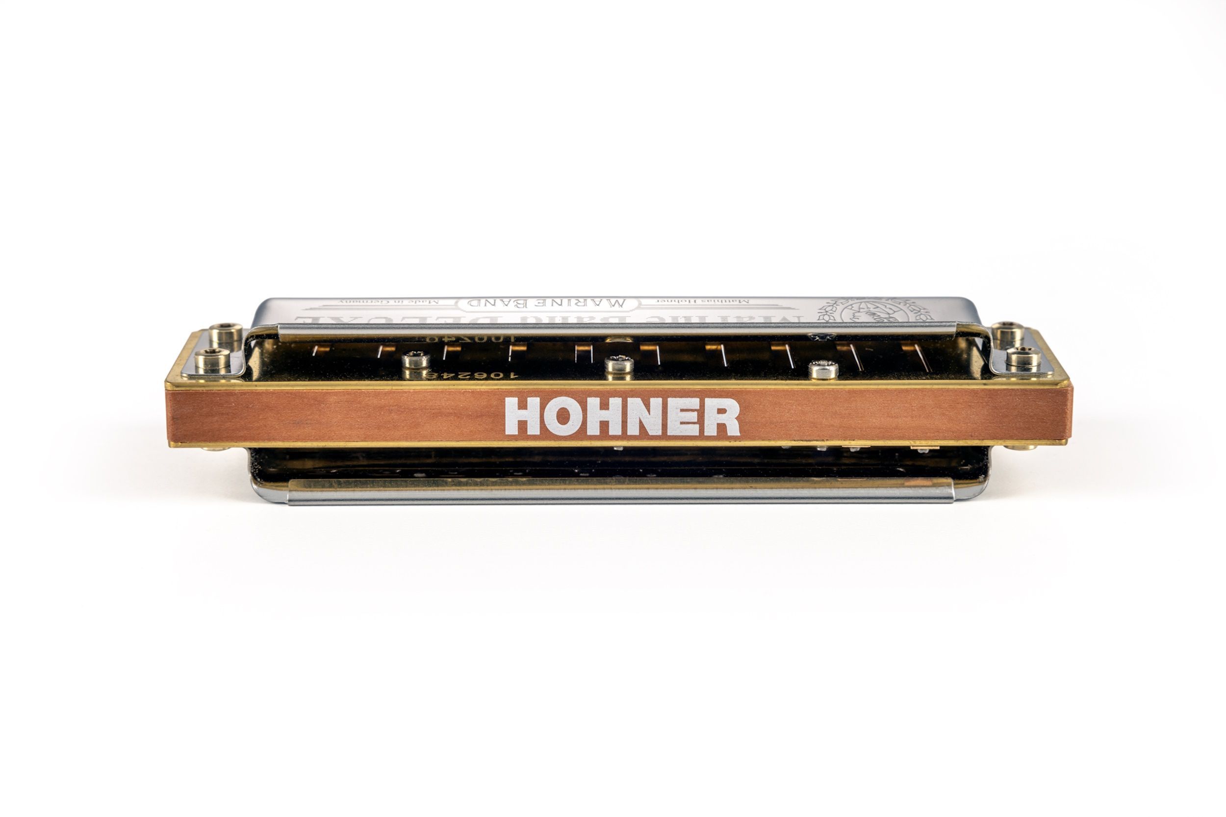 HOHNER Mundharmonika, Marine Band - Deluxe, F Der Name ?Marine Band? steht für eine lange, erfolgreiche Tradition in der Herstellung von hochwertigen Mundharmonikas. Ein Kanzellenkörper aus Birnbaum-Holz und die gewölbten Edelstahldeckel mit seitl. Schallschlitzen verleihen dem Instrument ihren lege
