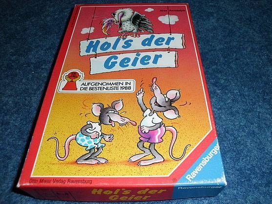 Biete in dieser Auktion an: Hol´s der Geier von Alex Randolph Alter: 10-99 Jahre Spieler 2-5 Mäuse sammeln ist nicht schwer-wenn da nicht der Geier wär! Ziel des Spiels: Wem gelingt es, viele Mäusekarten mit Pluspunkten zu ergattern und die negativen Geierkarten möglichst den Mitspielern zu überlass