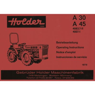 • Holder A30/45 VD2/3 Viertakt Dieselmotor Bedienungsanleitung Betriebsanleitung