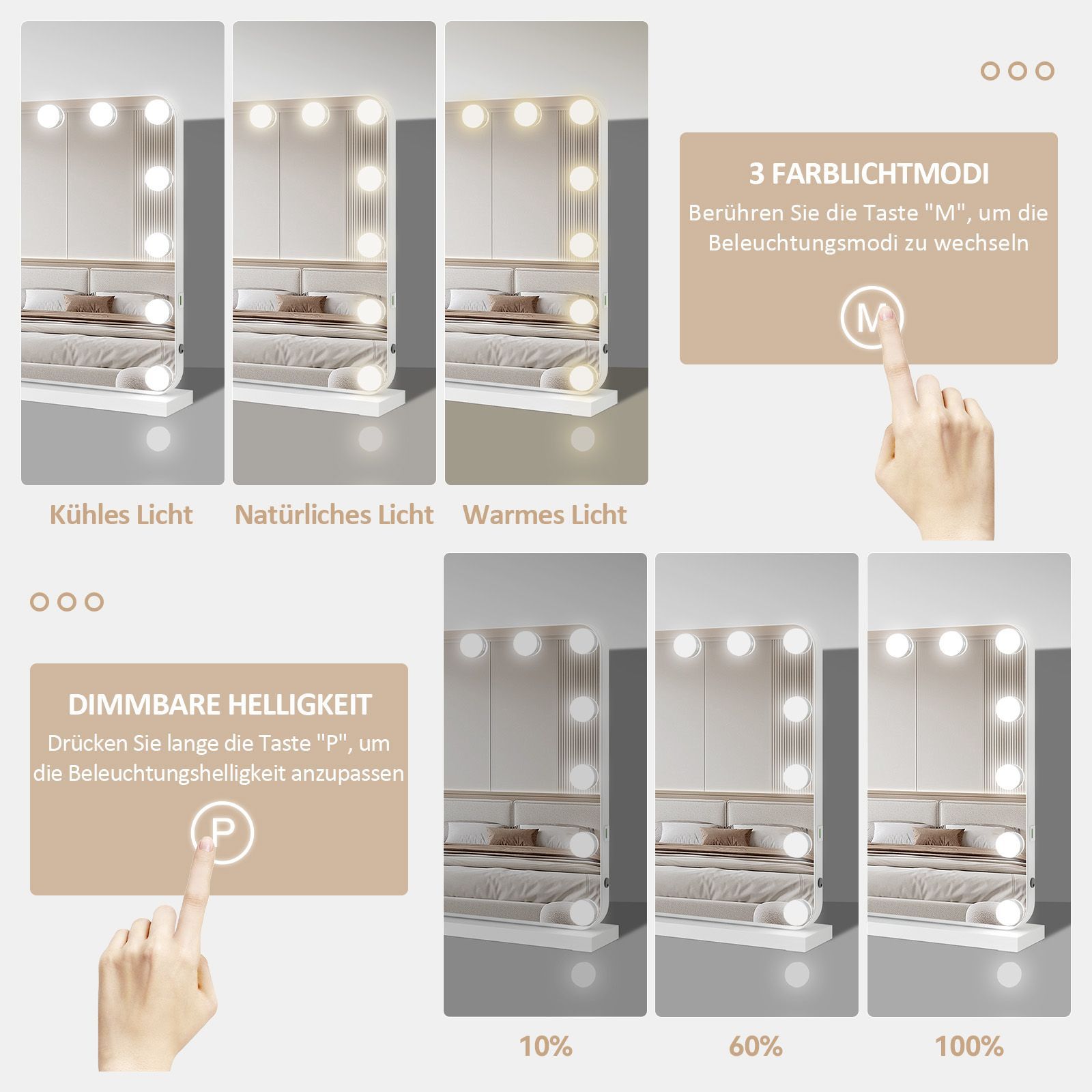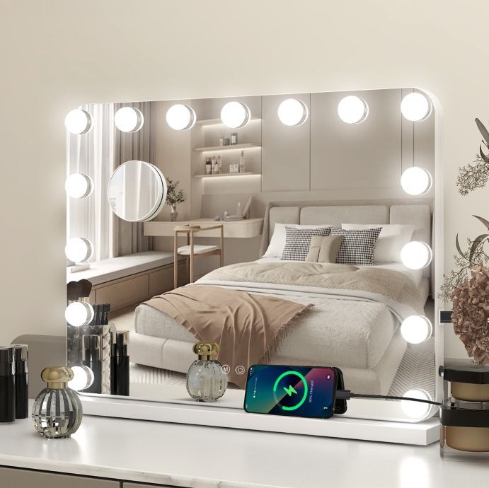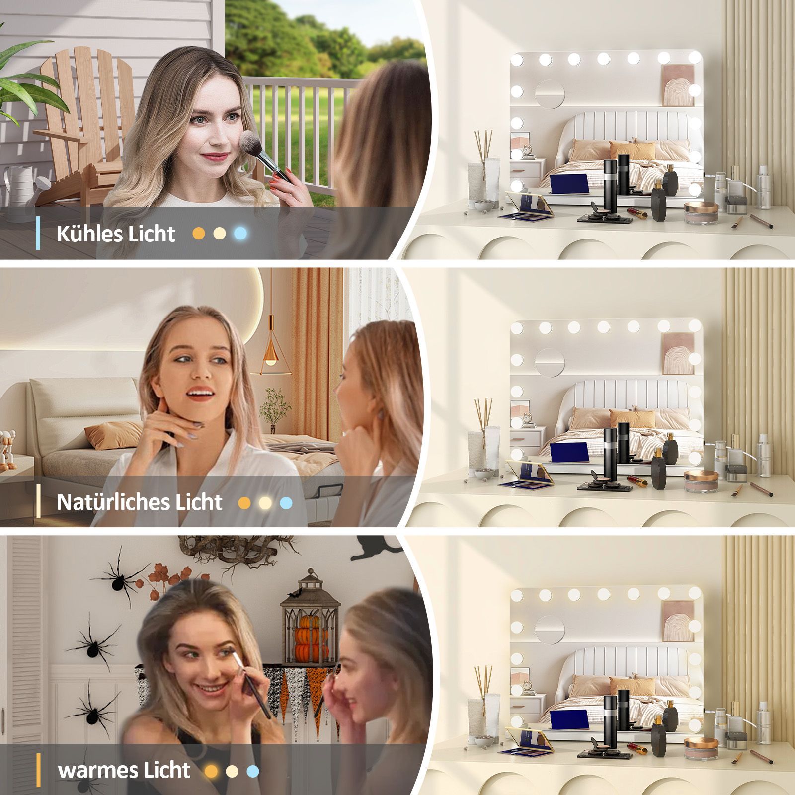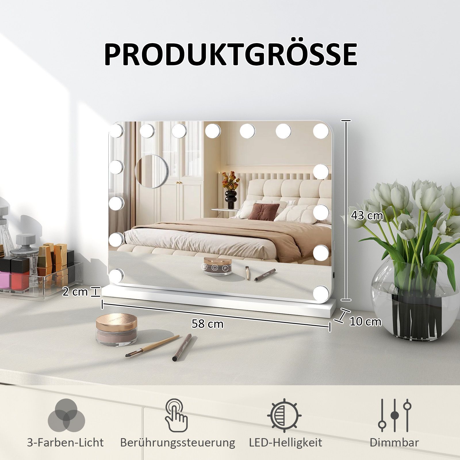 Hollywood Schminkspiegel Tischspiegel mit LED Beleuchtung Dimmbar Bogenwinkel
