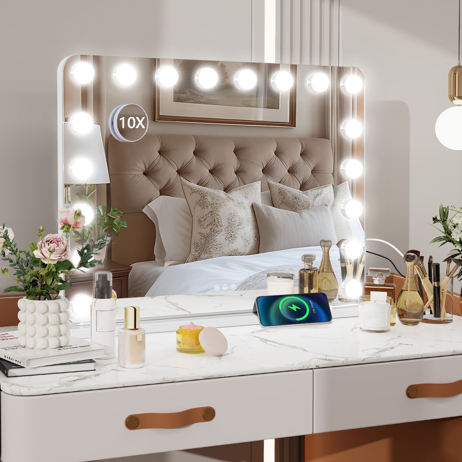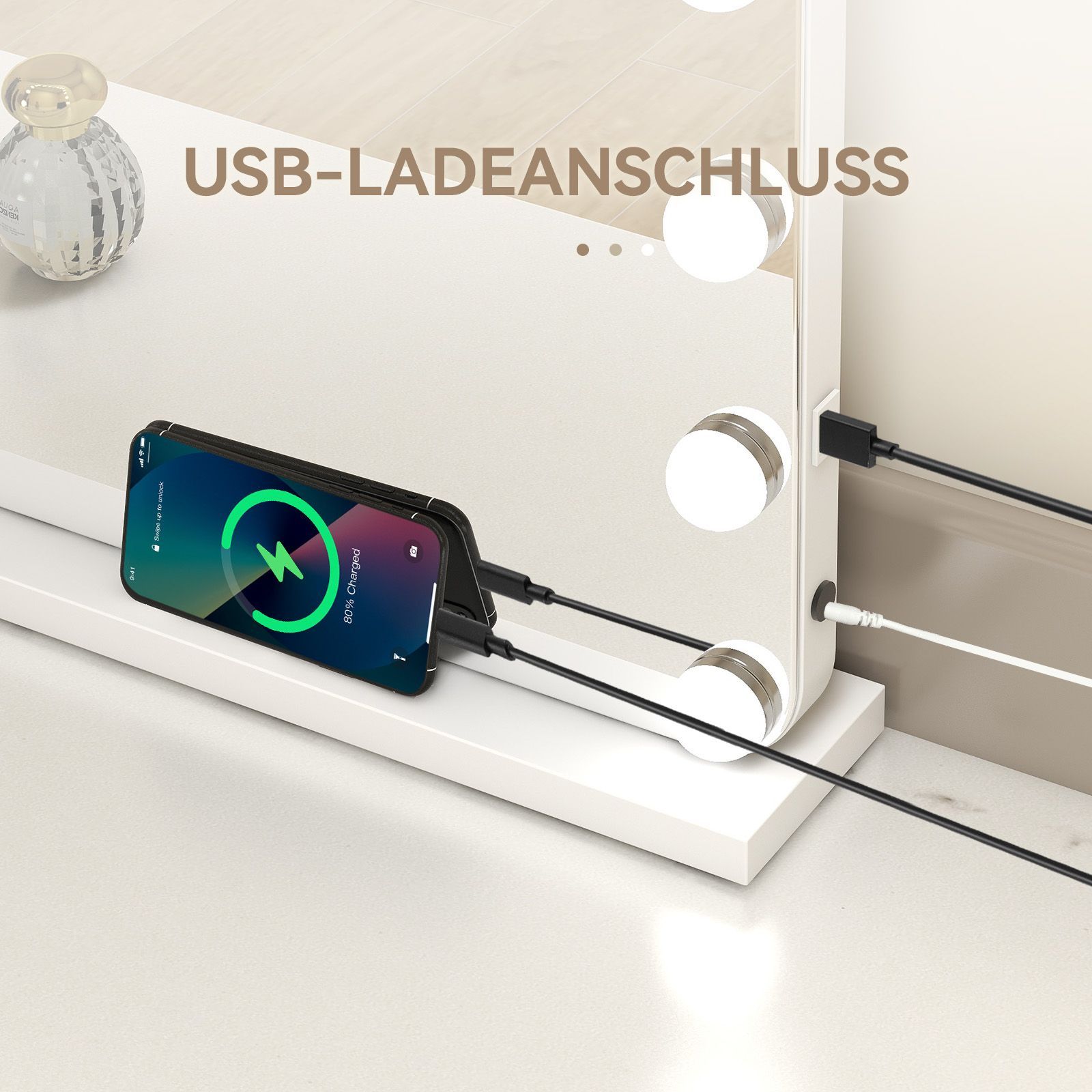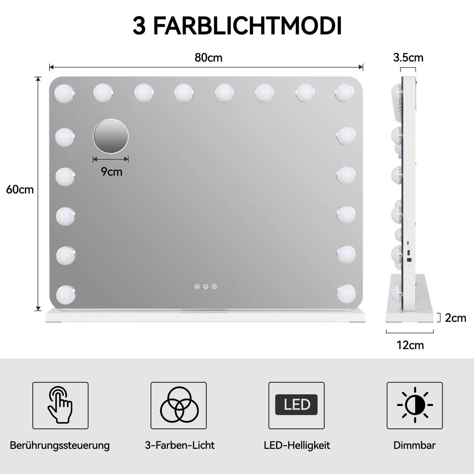 Hollywood Schminkspiegel Tischspiegel mit LED Beleuchtung Dimmbar Bogenwinkel