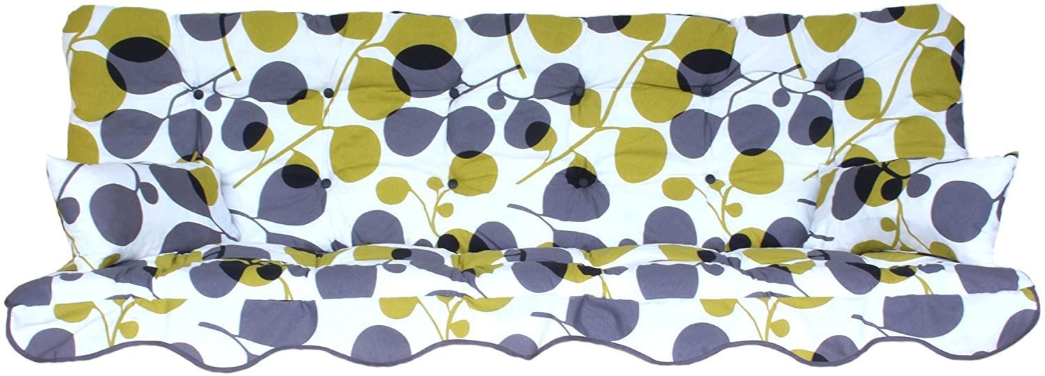 Dieses Angebot beinhaltet eine Hollywoodschaukel Auflage mit 4 Teilen Groesse: 180 x 50 x 10 cm Hoehe der Rückenlehne ca. 50cm Sitzflaeche ca. Tiefe 50cm gesamt somit 180x50 cm ca. 10 cm starke Schaumstoff Flocken Polster Wendeauflag