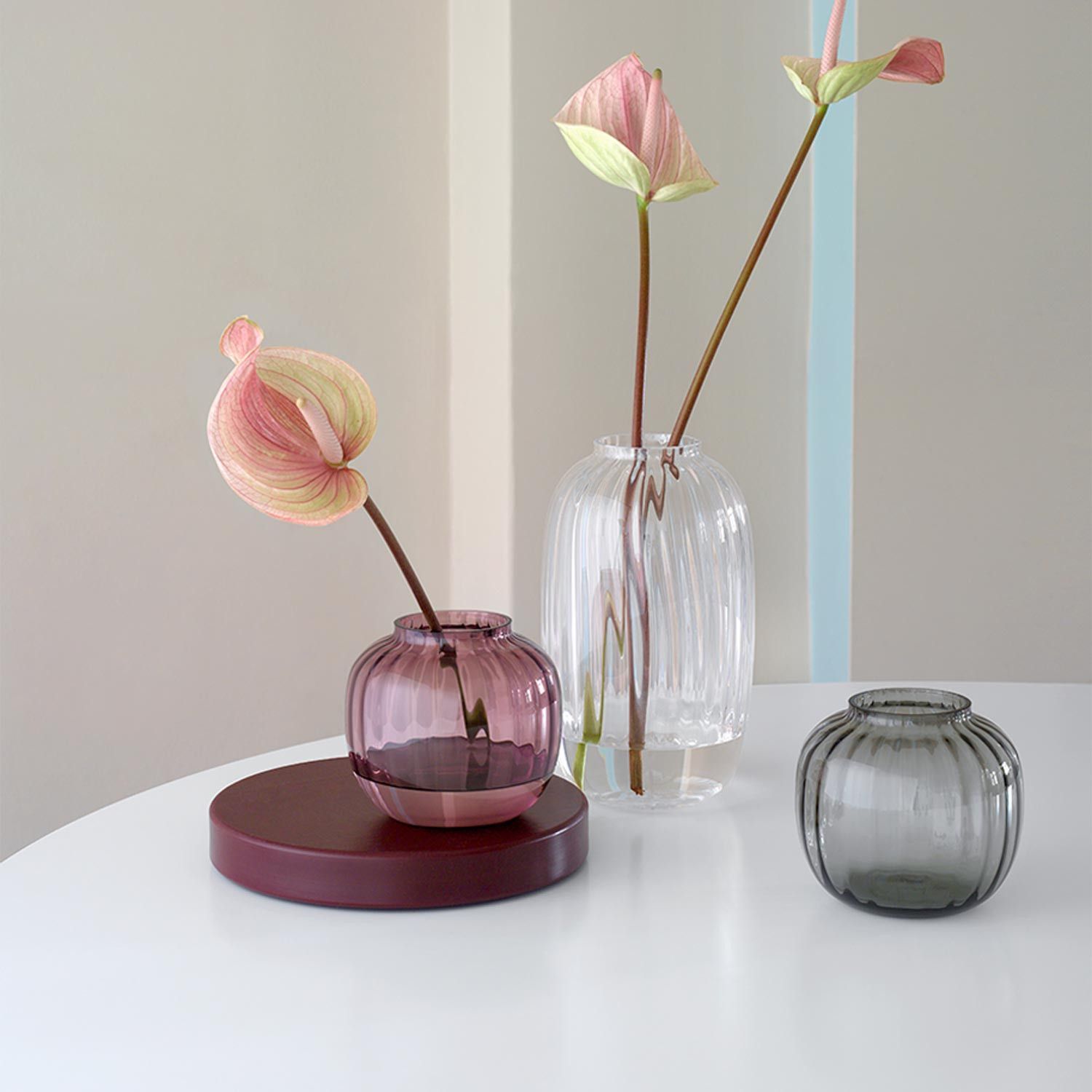 Holmegaard Holmegaard Kugelvase Primula Grau - Tischvase Glasvase Rillenmuster | 4340393