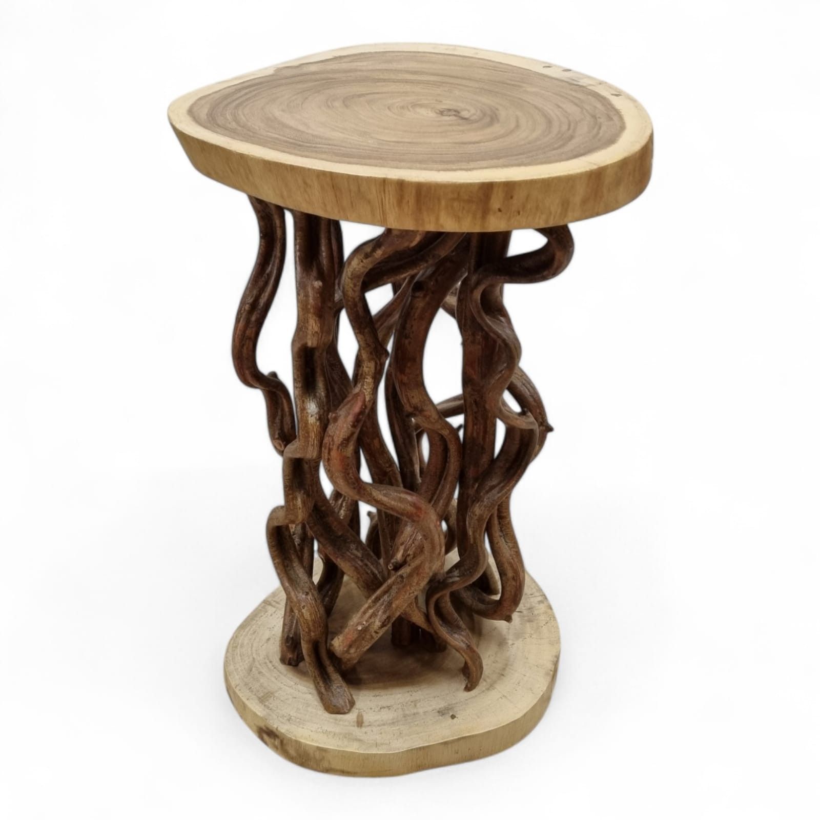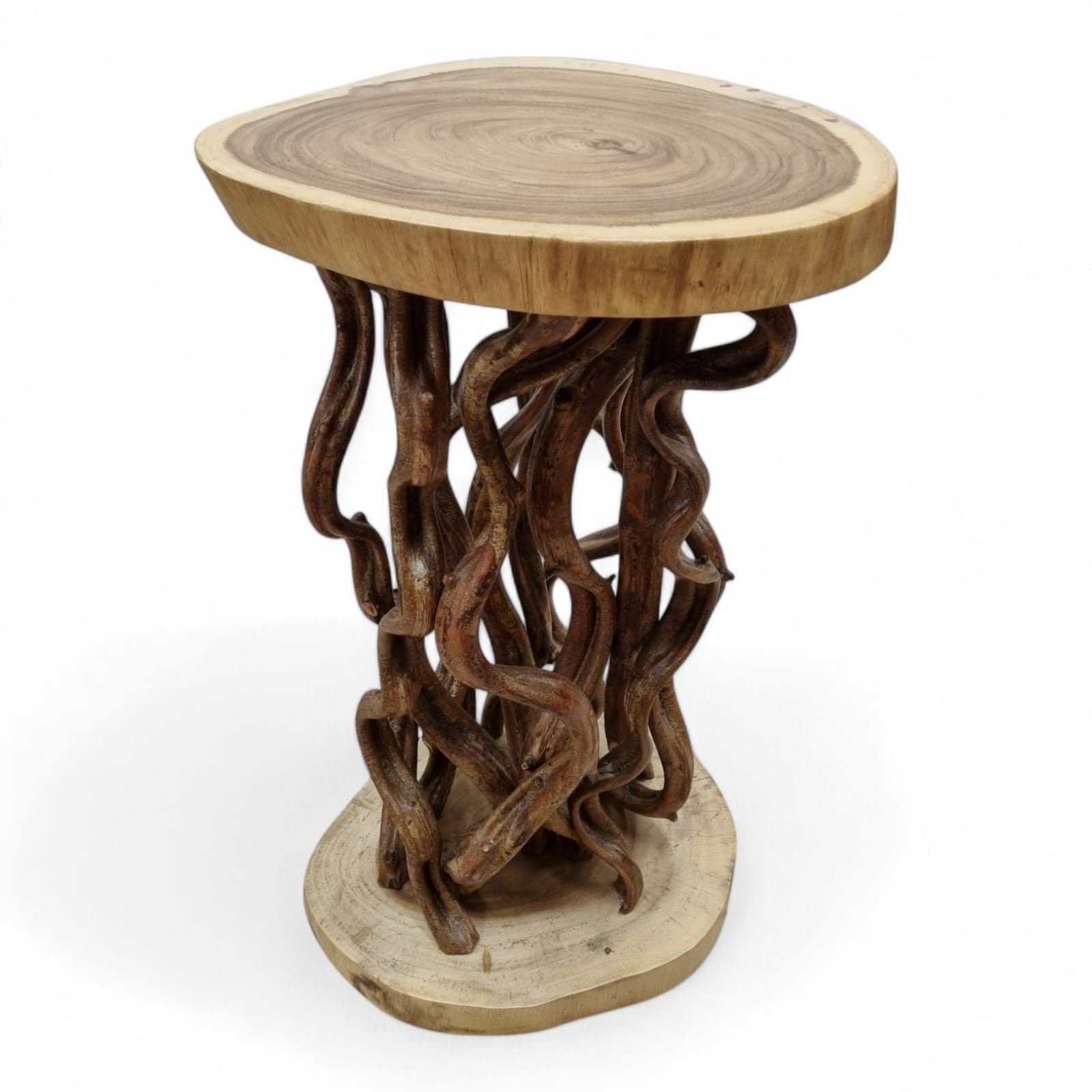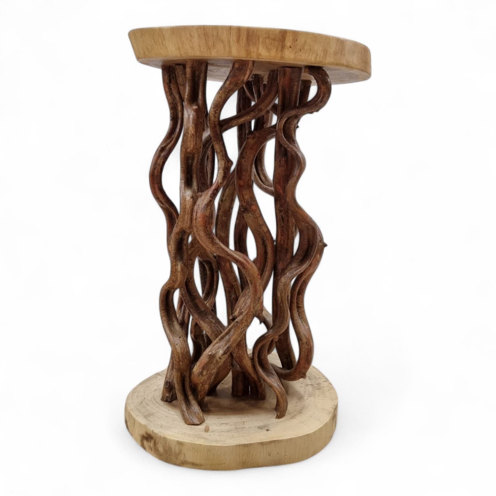 Holz Beistelltisch OKAWA Akazie Baumscheibe Lianenholz Tisch Blumenhocker Massiv