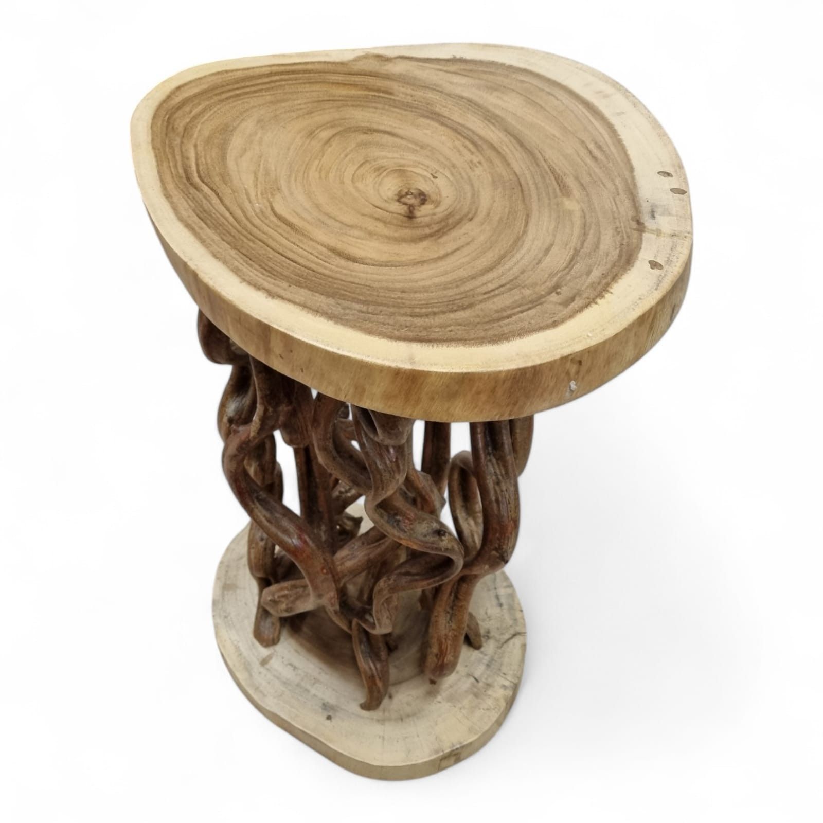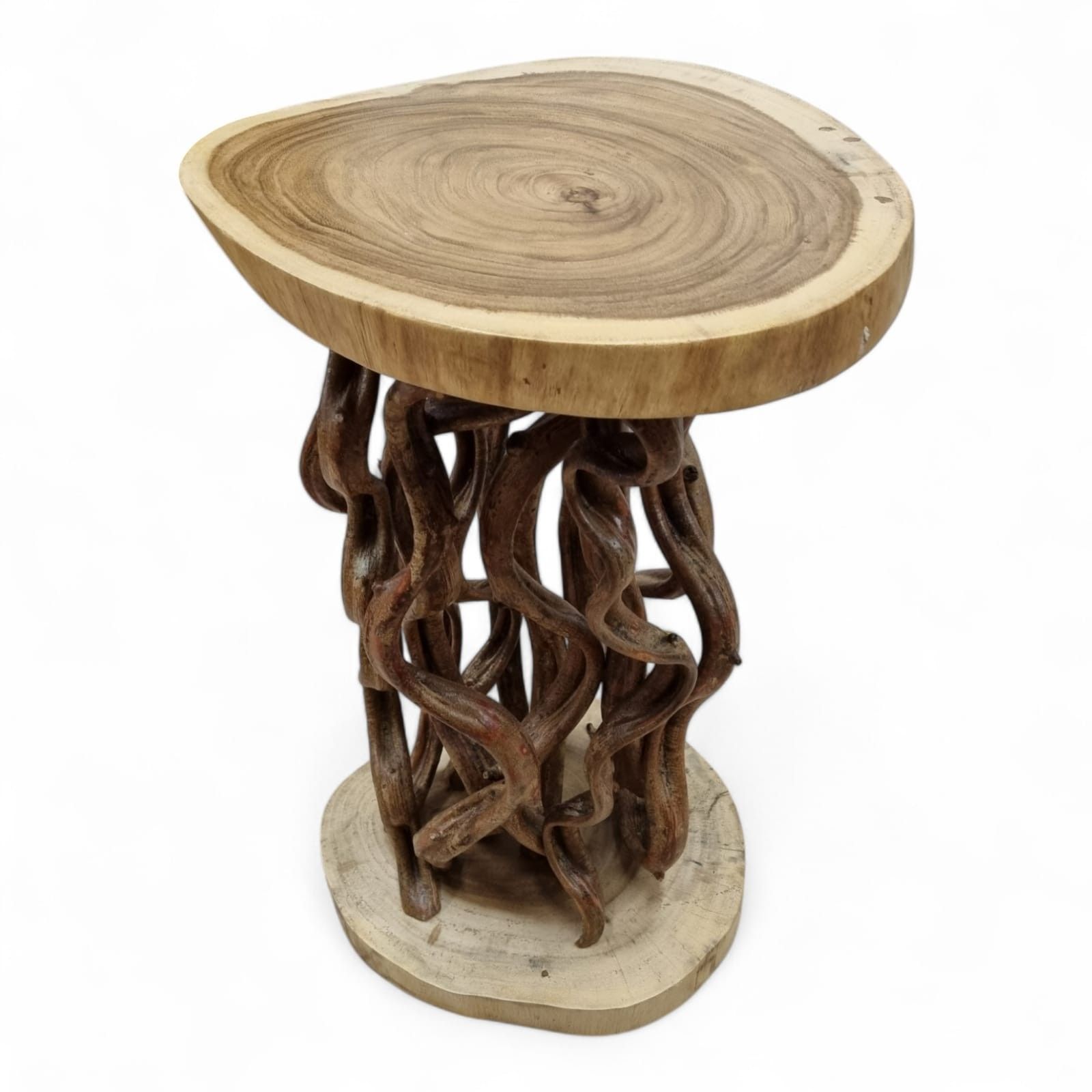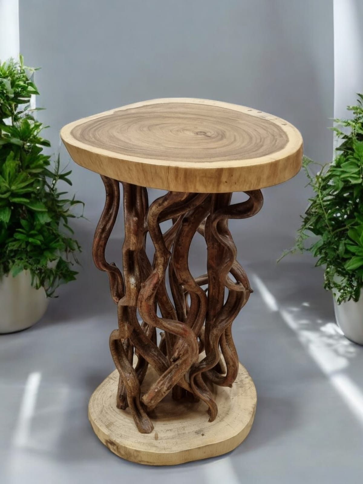Holz Beistelltisch OKAWA Akazie Baumscheibe Lianenholz Tisch Blumenhocker Massiv