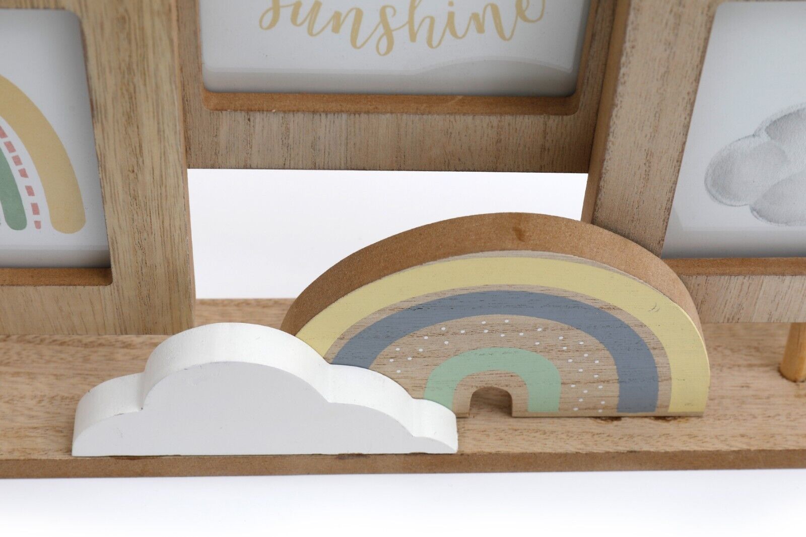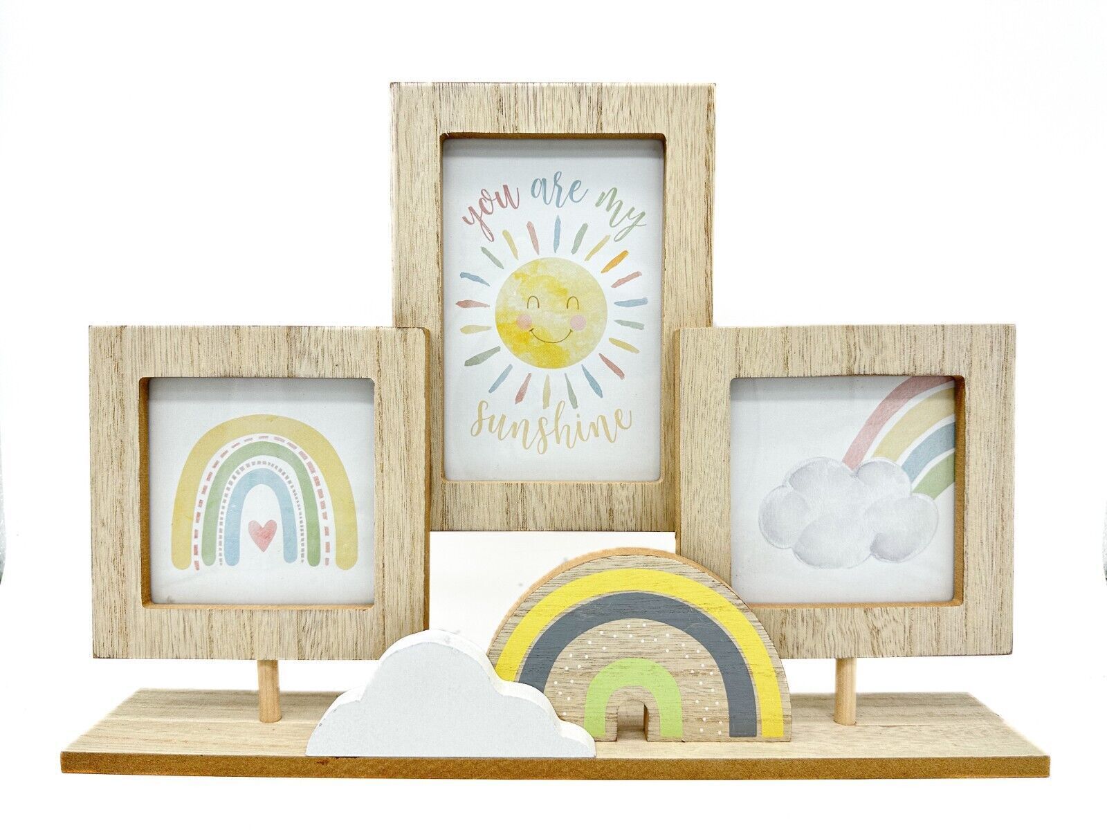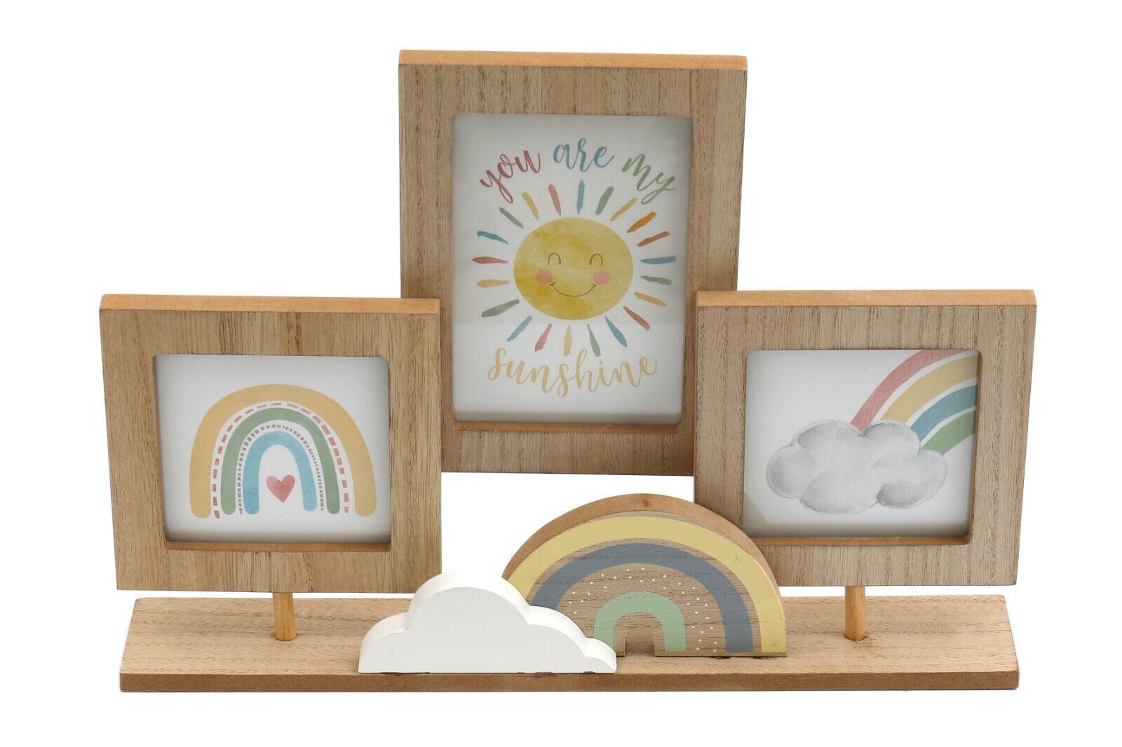 Holz-Bilderrahmen Regenbogen & Wolke auf Ständer - Rahmen für 3 Bilder Holz Baby