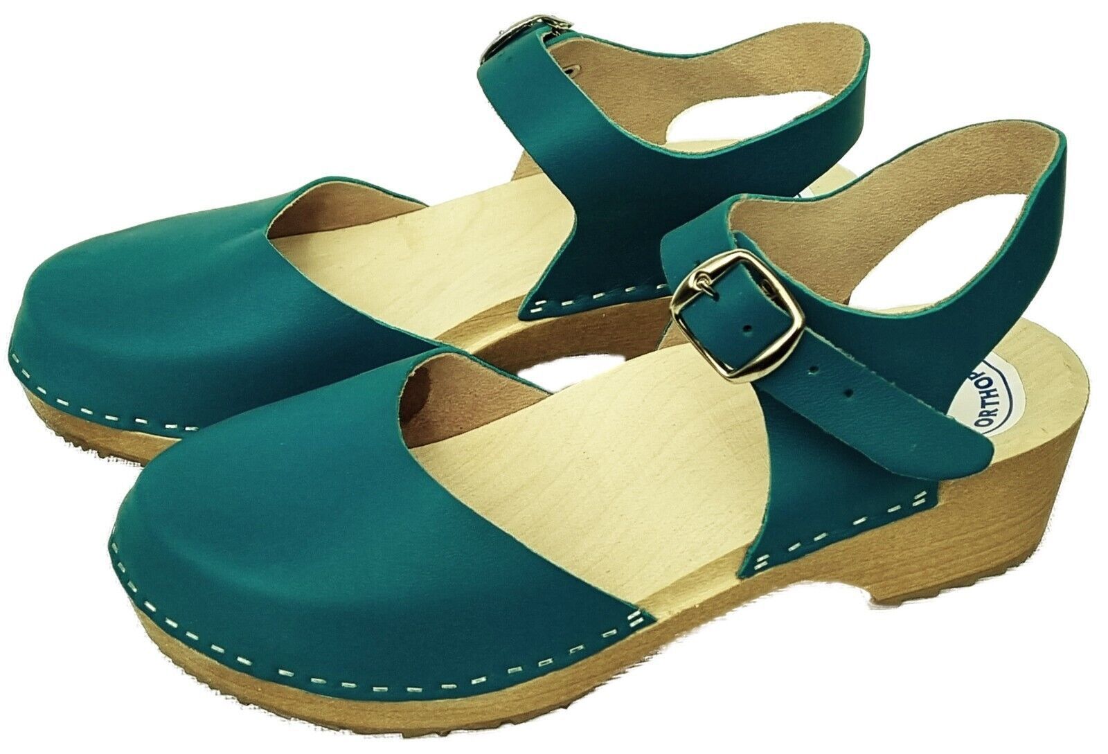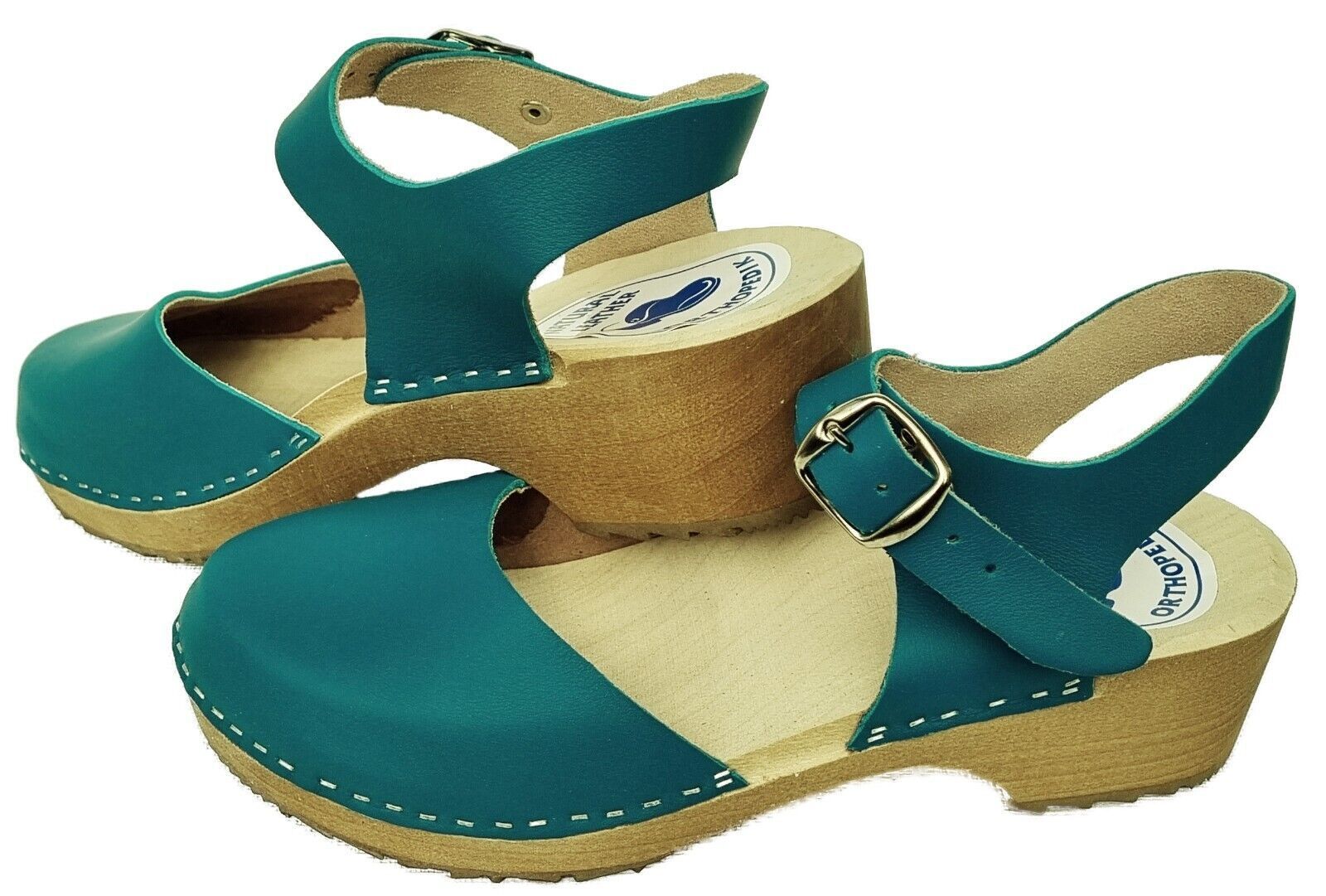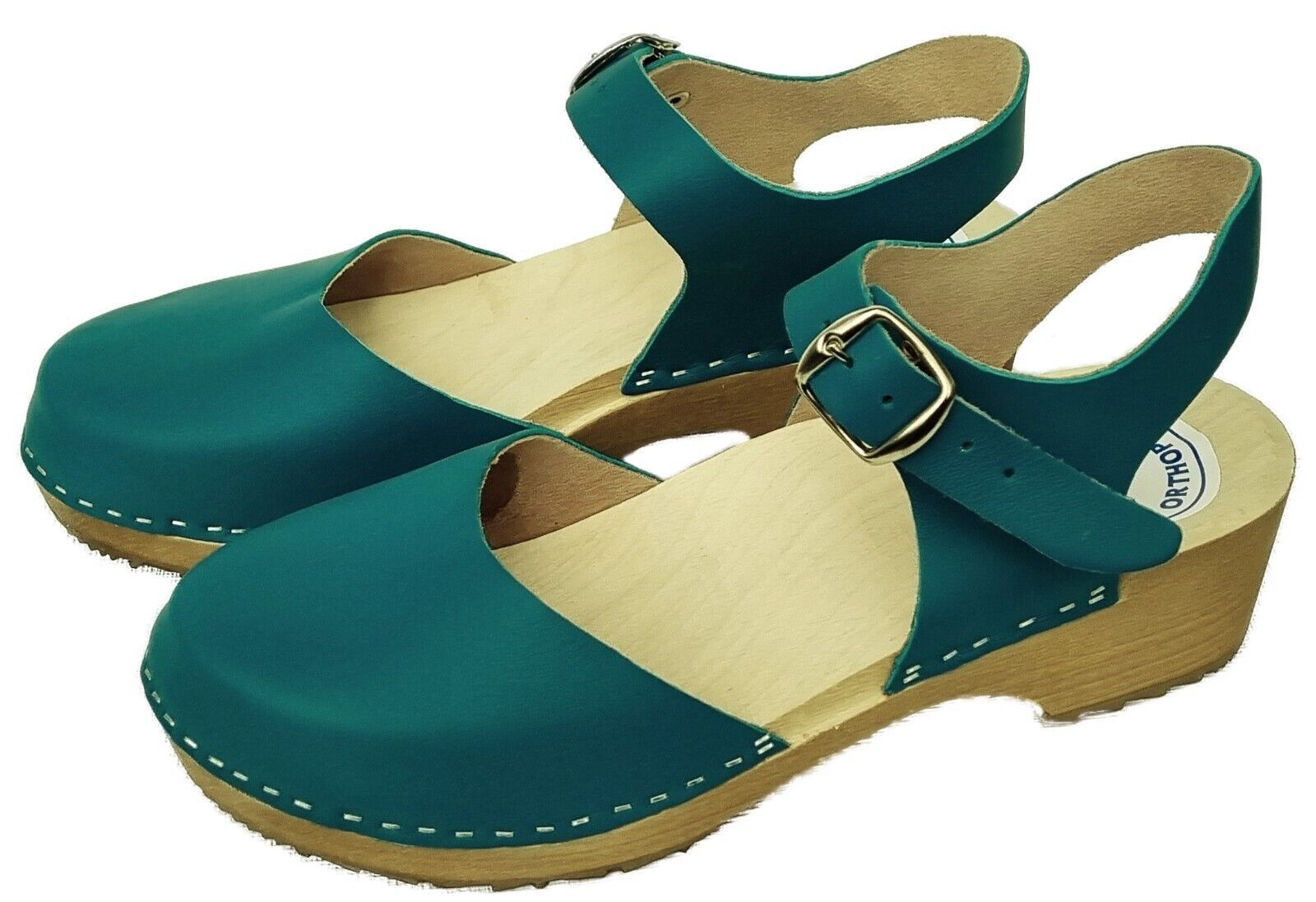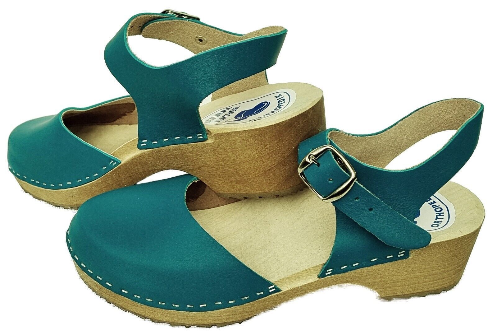 HOLZ CLOGS Pantolette Sandalen Gr.38 * Türkisblau* Echt Rind Leder Handgefertigt