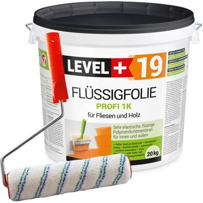 • Flüssigfolie 20kg Abdichtung 1K Innen Außen Fliesen Holz+Farbroller 25cm L+19