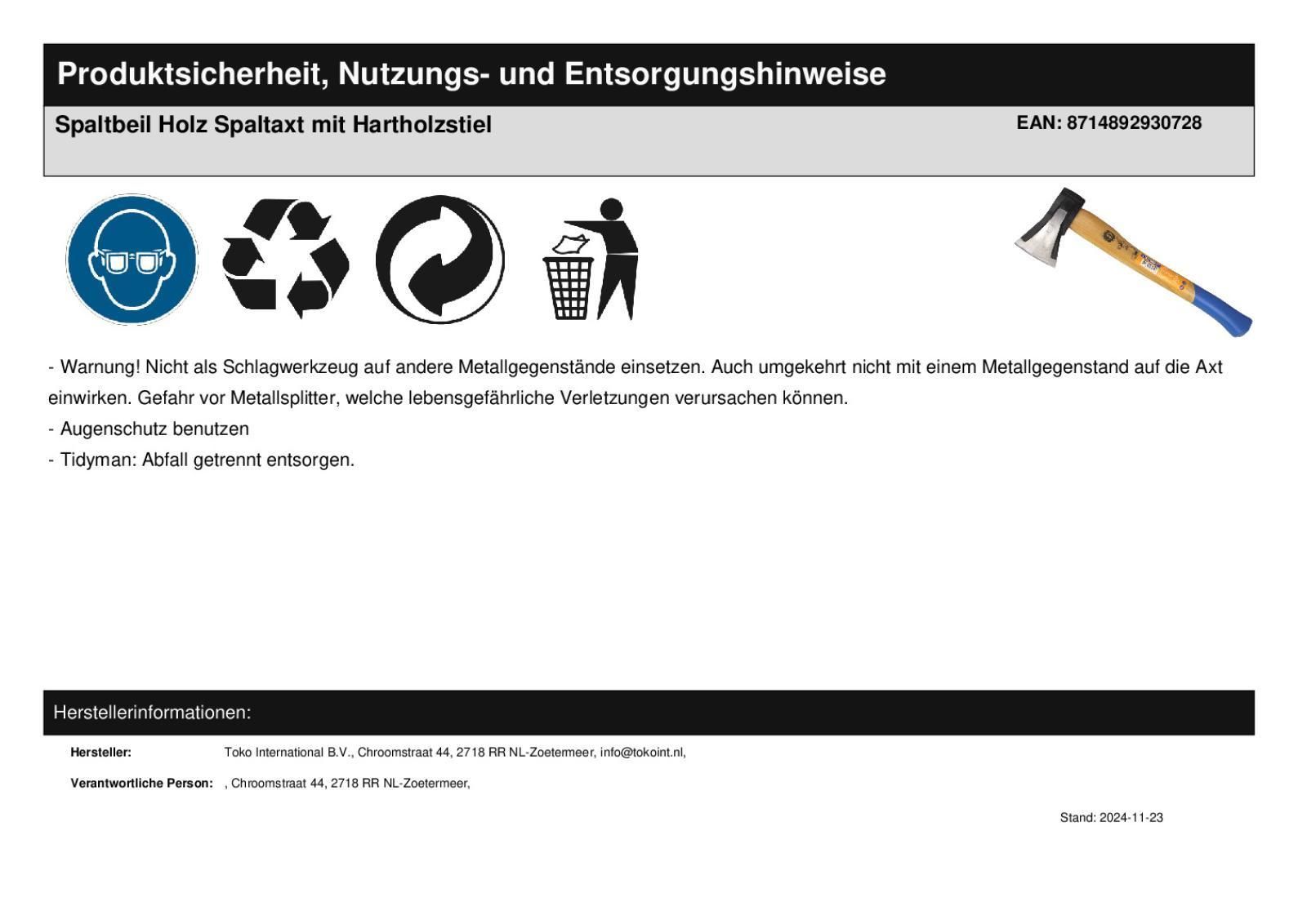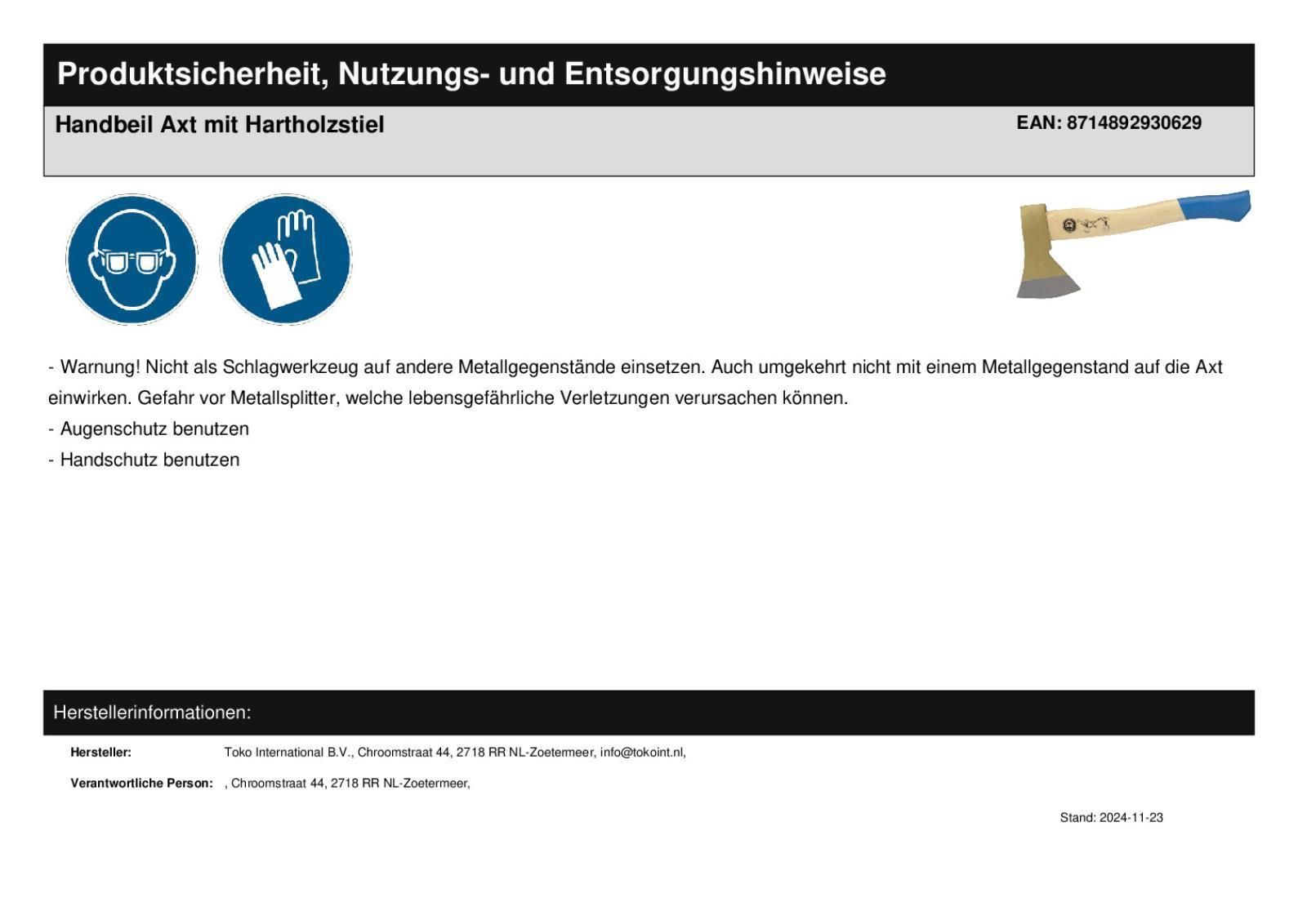 Holz Handbeil 600g Axt mit Spaltbeil 1000g Spaltaxt im Set