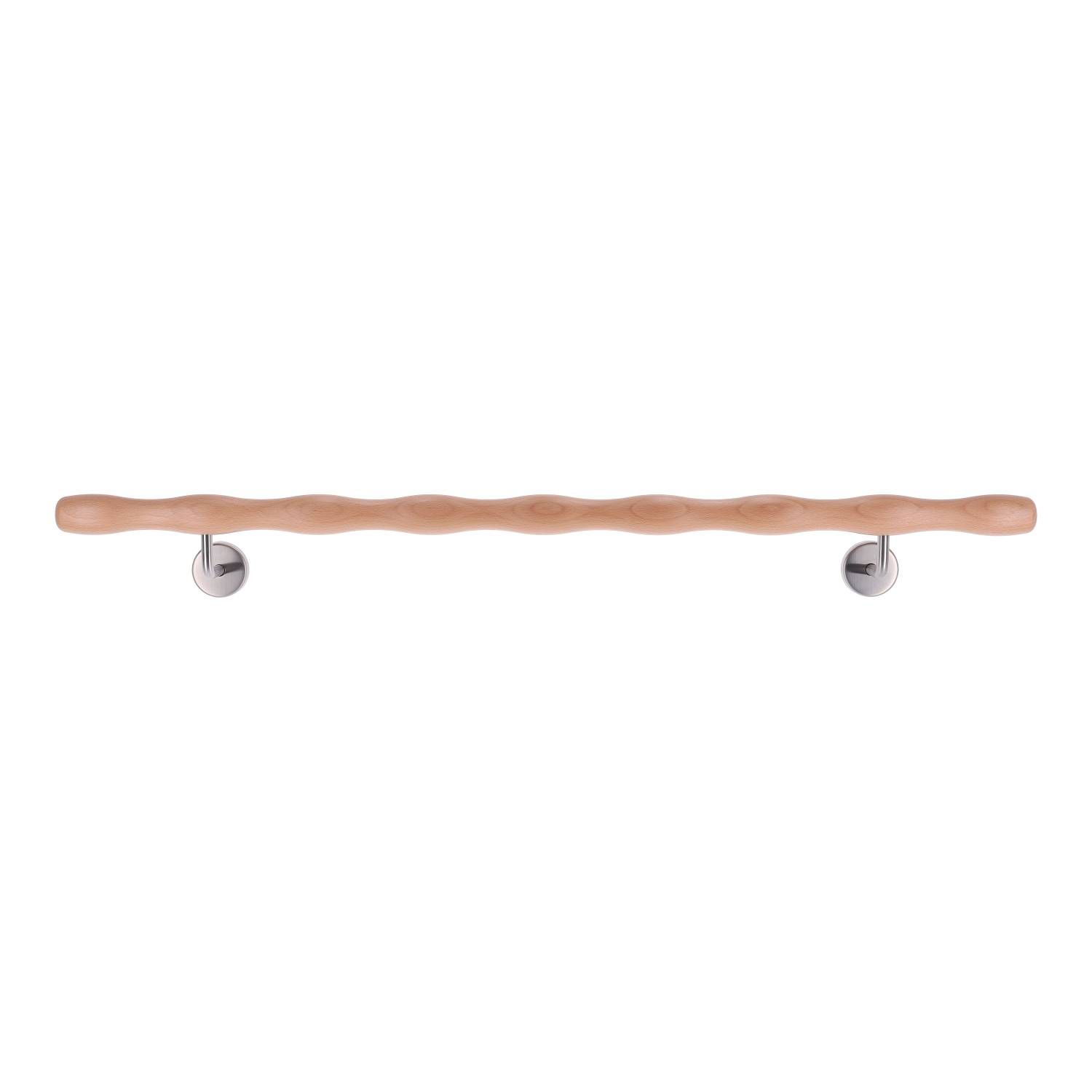 Holz Handlauf Buche wellenförmig Ø 42 mm gewinkelte Edelstahl Handlaufhalter