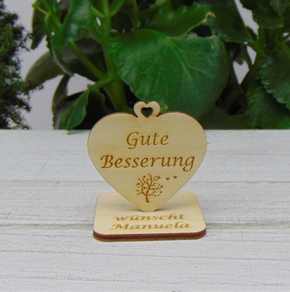 Holz Herzen graviert Personalisiert " Gute Besserung " Freunde Nachbarn Kranke