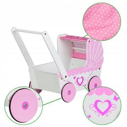 HOLZ Puppenwagen MIT Vordach ROSA Qualität